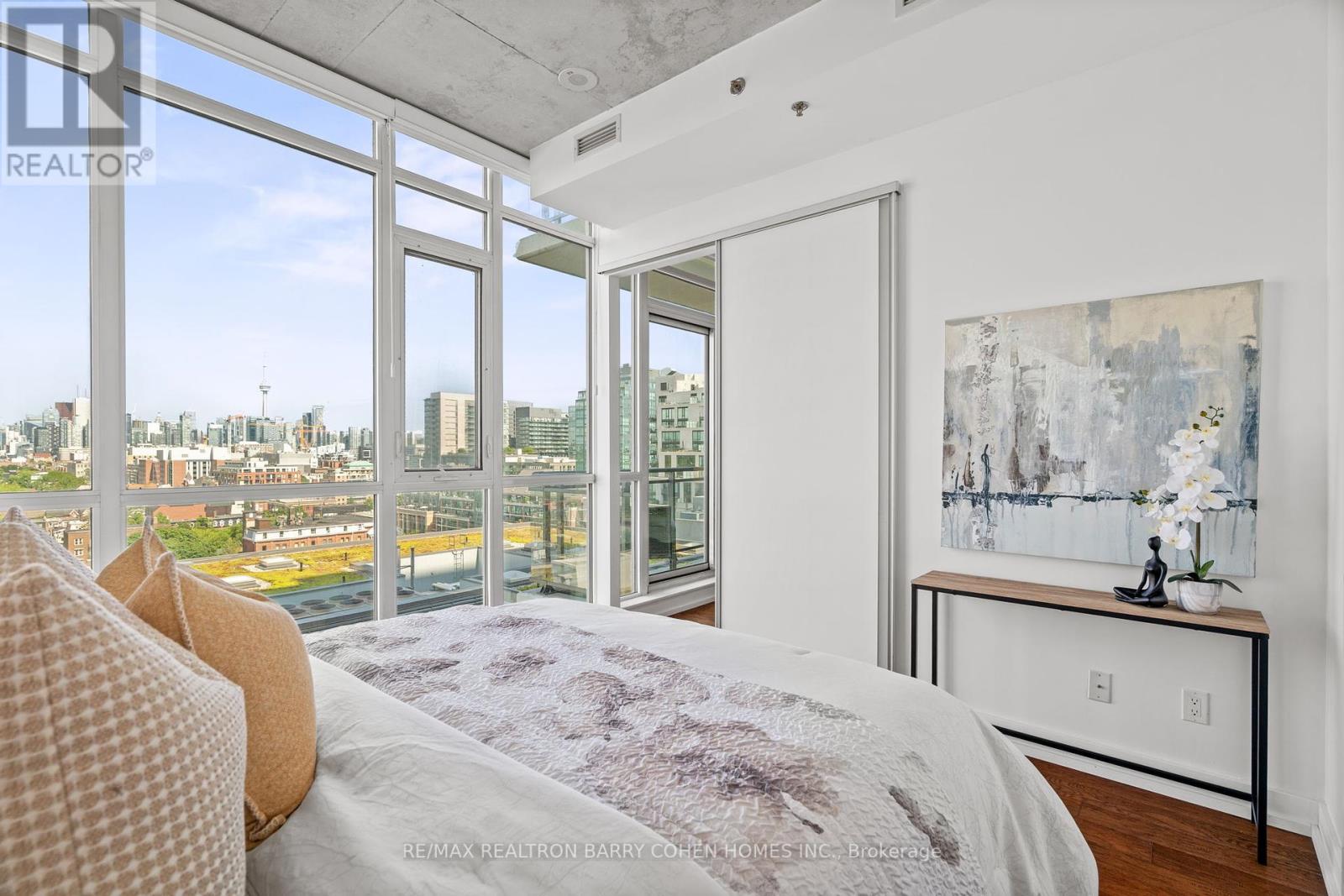 $620.52 MonthlyIf the view is the payoff, this one delivers. Unobstructed, wide-open city skyline views stretch as far as the eye can see, and they rarely come up in this building. Inside, the functional layout offers two generously sized bedrooms, two full bathrooms, and a den that actually works for working from home. The open-concept living space features nearly 10-foot ceilings, floor-to-ceiling windows, motorized blinds, and a walkout to your private balcony. Your oversized locker is located directly across the hall (yes, really,) and your parking spot is just steps from the elevators. The building offers 24/7 concierge, a full gym, a spacious terrace with BBQs, and stylish party and media lounges. Grab your morning coffee or groceries without stepping outside - Metro and Starbucks are right downstairs. One of Torontos most vibrant and walkable neighbourhoods with a Walk Score of 99. Steps from Trinity Bellwoods, the Ossington strip, restaurants, cafes, shops. The view. The layout. The location. This is the one. (id:51158)