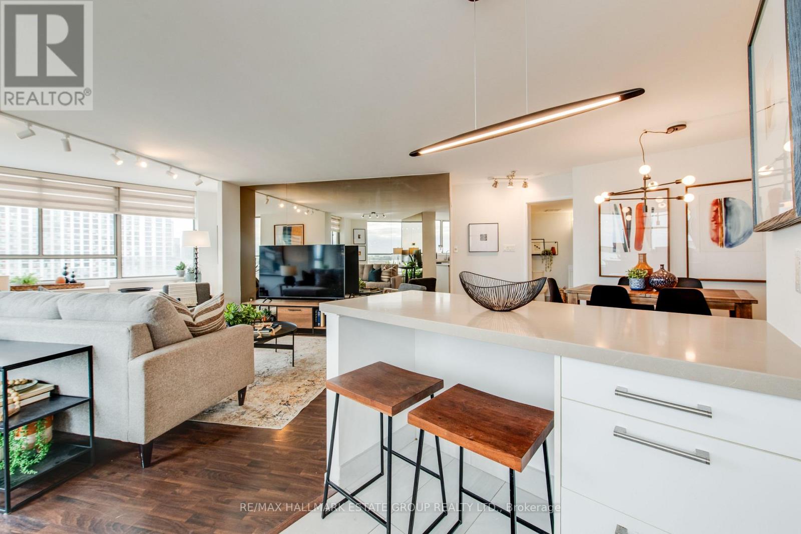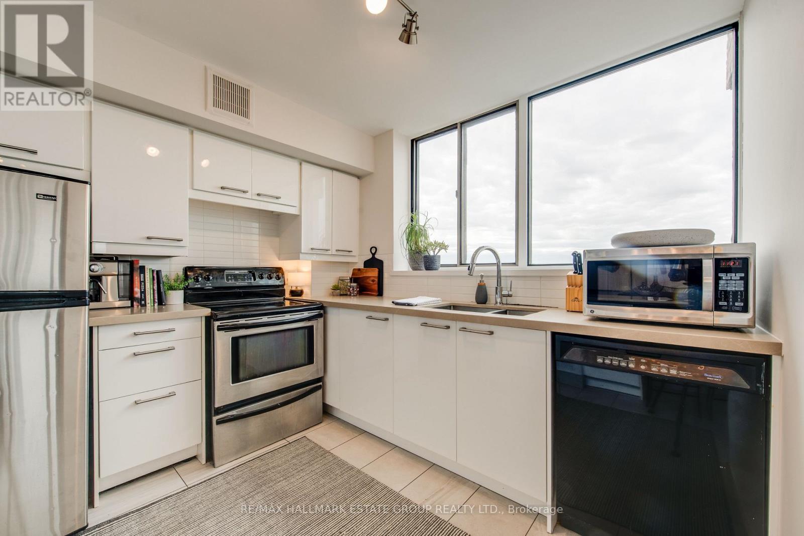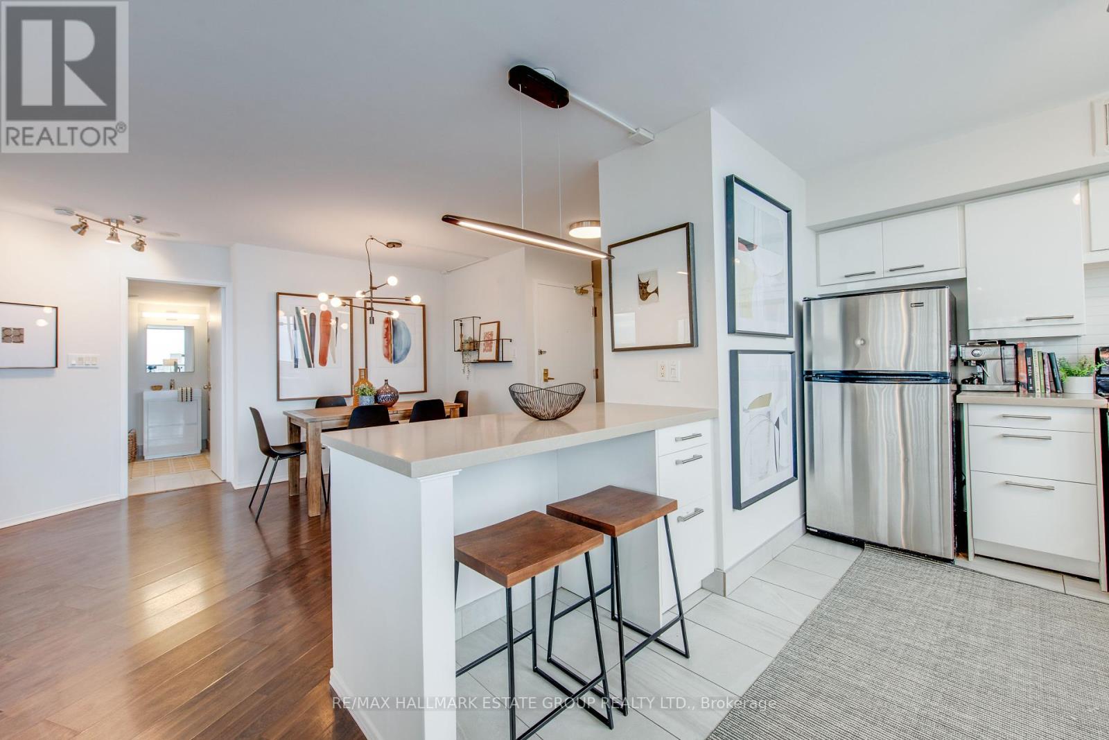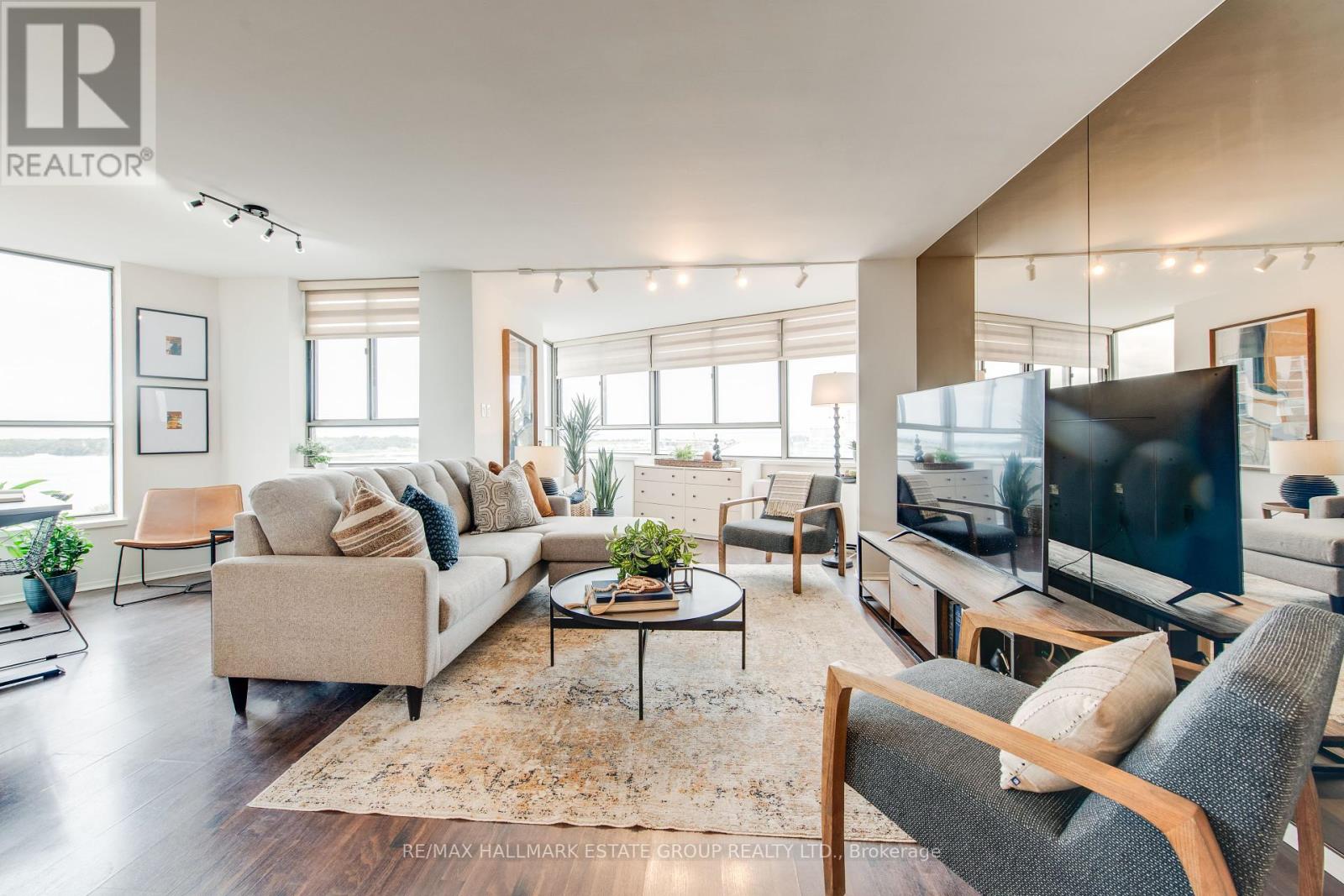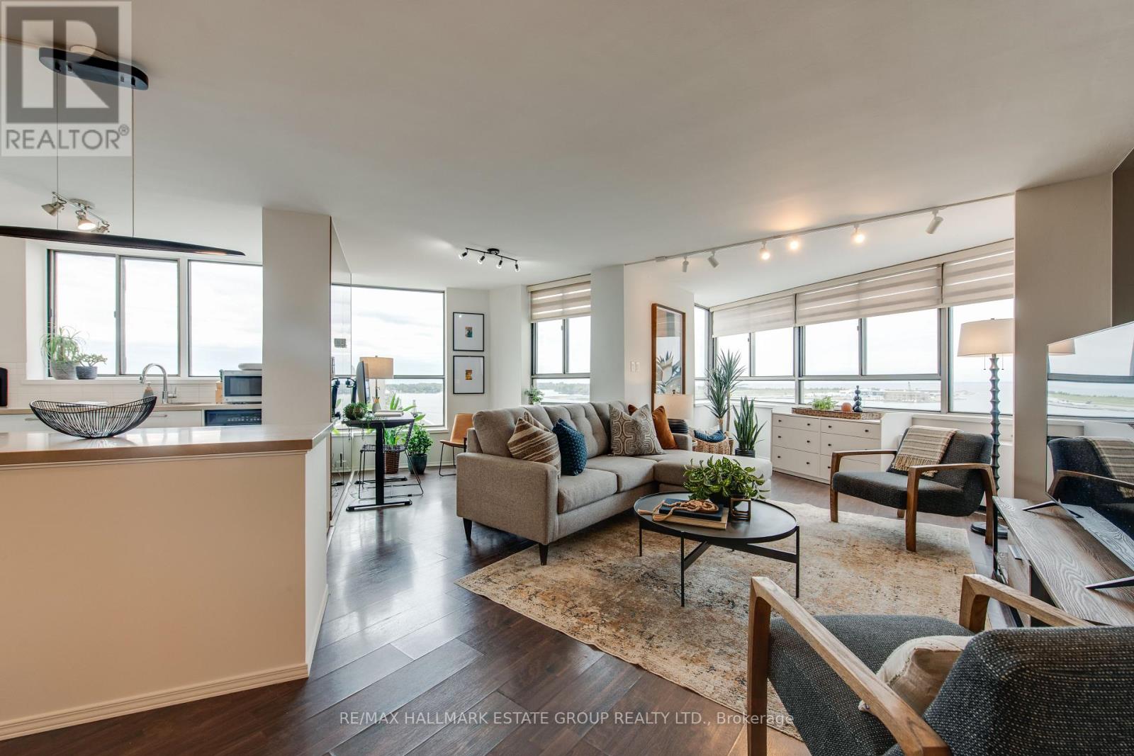 Welcome to waterfront living at its finest! This wonderfully sunny, fully renovated 1 bedroom +1 condo offers breathtaking panoramic views of Lake Ontario from the 11th floor of Harbourpoint III. Say goodbye to cookie-cutter bowling-alley layouts this spacious, open-concept design is airy, inviting, and full of natural light. Enjoy laminate flooring throughout, expansive windows, and a beautifully updated flat-panel kitchen with ample cabinetry and a rare gem: a kitchen window with lake views! The generous living room easily accommodates a large TV, cozy seating, and space to entertain. A thoughtfully placed office nook makes working from home a pleasure especially with the lake as your backdrop. The oversized bedroom features excellent closet space and room to relax, while the modern bathroom adds a touch of luxury to your daily routine. Building Amenities & Location Highlights: Well-managed building with gym, party room, and rooftop terrace with BBQs and sweeping city/lake views. Steps to the waterfront, Toronto Islands, parks, shops, and top-tier dining and entertainment. TTC, groceries, Rogers Centre, and the downtown core right at your doorstep. Whether you're watching the sunset, tracking weather patterns over the lake, or enjoying the ever-changing views of the Islands, this condo offers a lifestyle that's anything but ordinary. (id:51158)