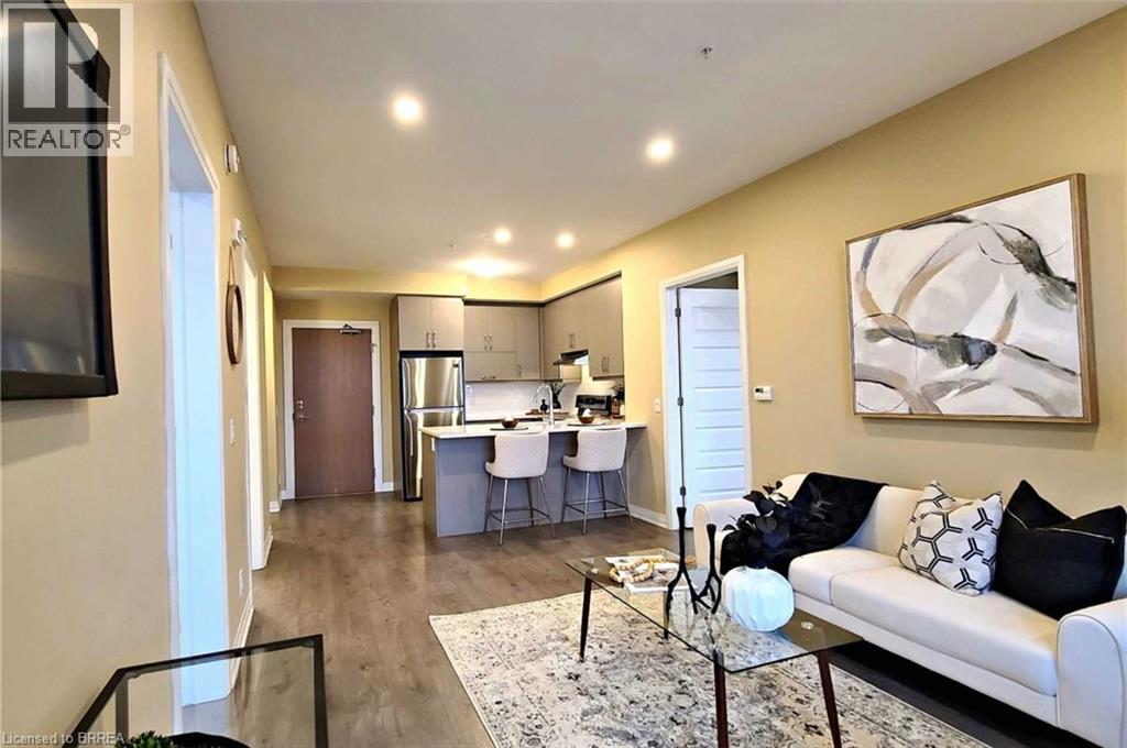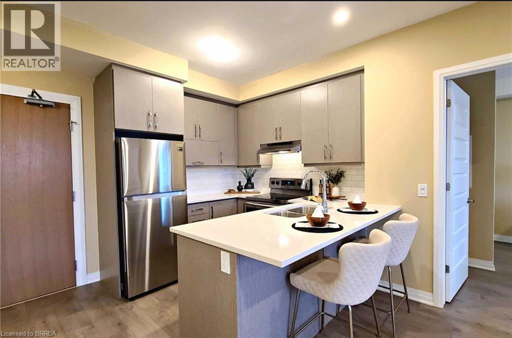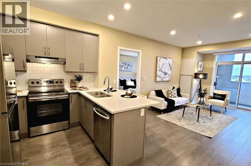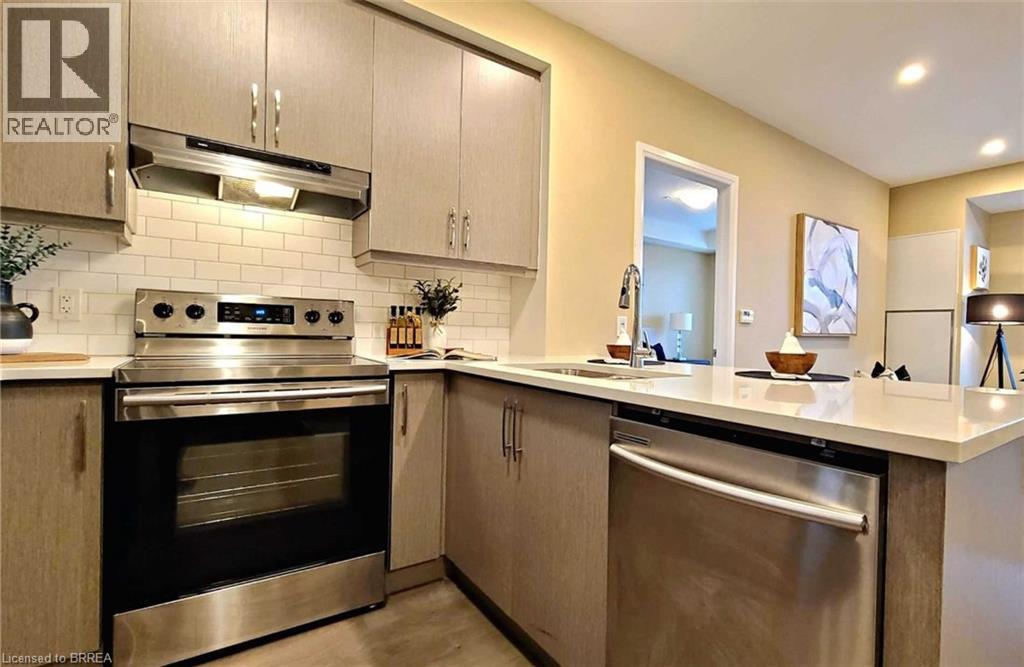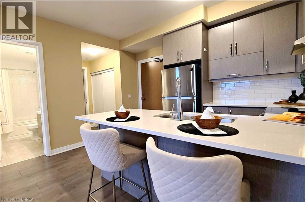 $434.29 MonthlyWelcome to this beautiful 2 bedroom and 2 full bath unit, featuring upgraded wide plank flooring throughout except where ceramic floors, and lots of windows filling up the space with natural light. Kitchen comes with quartz counters, subway style backsplash, extended cabinets, breakfast bar with pot lights, and stainless steel appliances. Spacious living/dining room accented is nicely with upgraded wide plank floors, pot lights and walkout to covered balcony through floor to ceiling high patio doors. Master suite offers a walk-in closet and 4 pc ensuite. Second good size bedroom, 4pc bath and in suite laundry, complete the unit. 1 underground parking and locker space. Close to all amenities, parks, schools, shopping, Milton Velodrome, Sherwood Community Centre, Kelso Conservation, public transit and more. (id:51158)