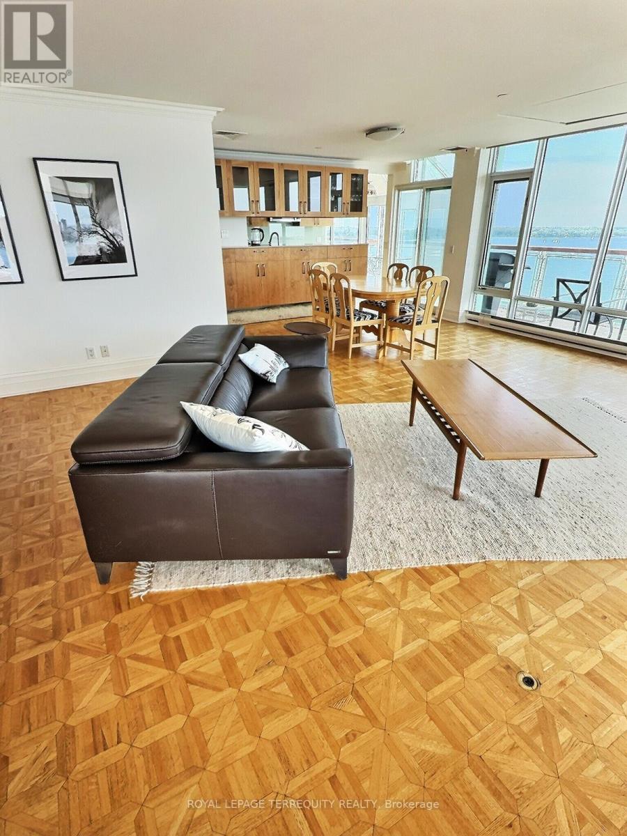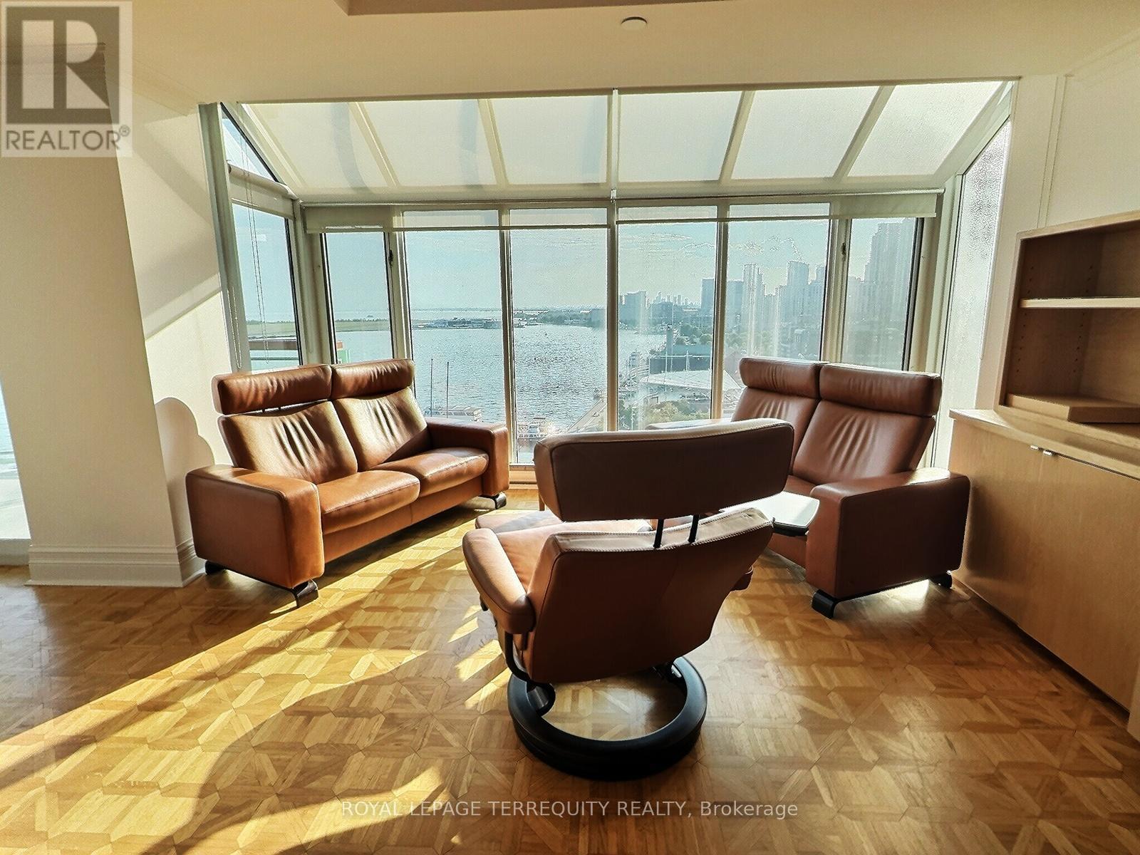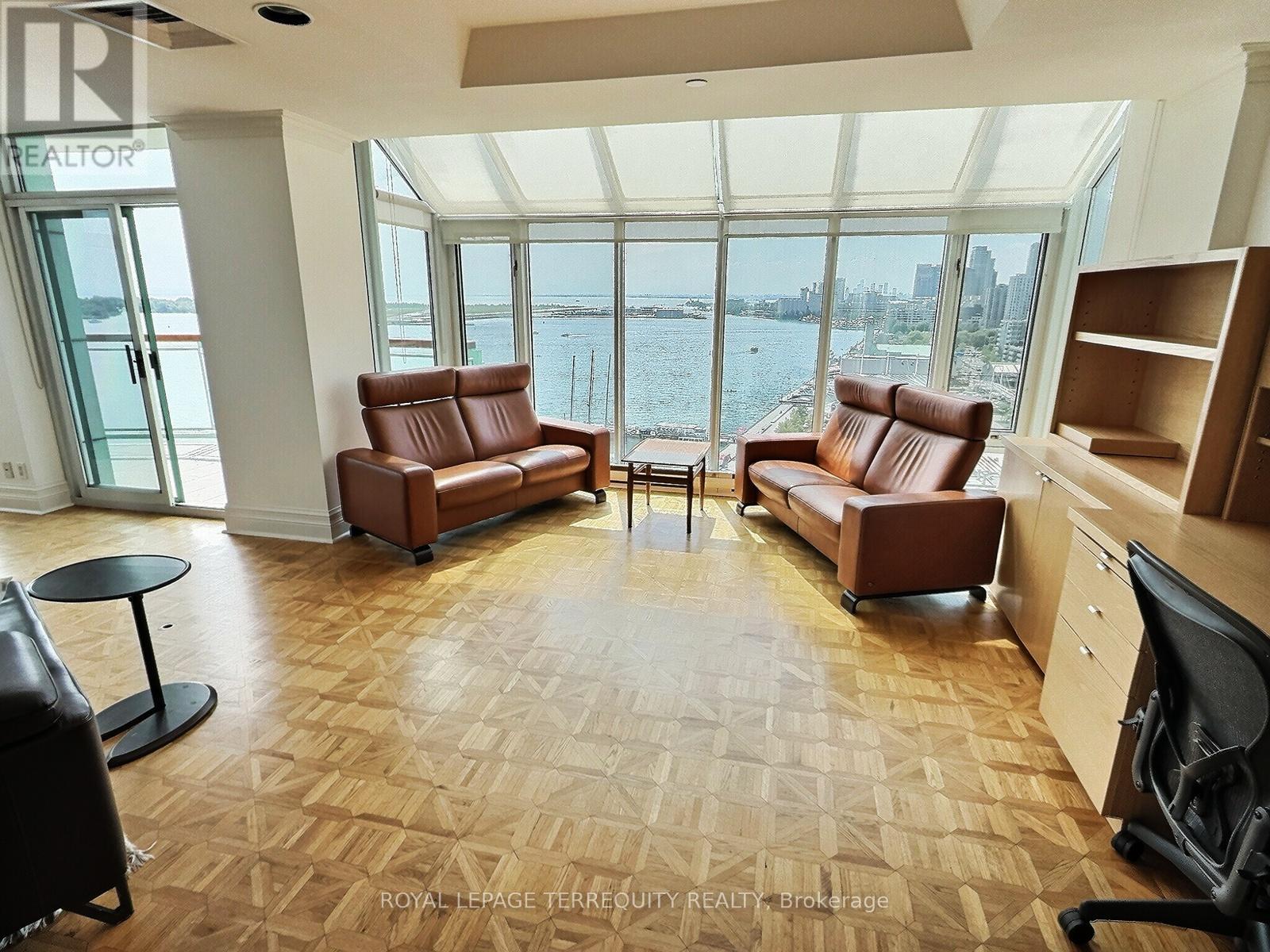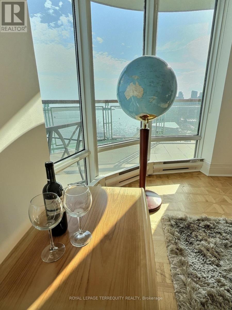 Luxurious Executive living at the centre of Toronto's stunning waterfront. Suite 1108 faces South by SouthWest by West with a wraparound Terrace for stunning waterfront & City views plus spectacular Sunsets year round. The views and the spacious interior makes this 2200 Sq Ft 2 bed 2 bath residence a true gem. A true Gourmet Kitchen with storage above the most demanding gourmand's wishes. Living and Dining Rooms overlook both the Toronto Harbour and the 10 Acre HarbourFront Centre. A Dream Condo that will take your breath away, not to mention making your guests say, "WOW!" as soon as they walk in ... There is always something exciting happening in the neighbourhood! The Terminal Building is a Landmark architecturally unique heritage industrial building which was converted in 1983 to include a 4 story, 72 unit luxury condo. No waiting for elevators! The Atrium below features many shops, boutiques, fine restaurants, grocery store and offices. No need to leave the building for a full day of pleasure. Amenities are first class. A large Salt Water Indoor Pool with Sun Deck and Sauna on the 10th floor. Plus Your parking spot can accommodate an EV Charger. What more can you ask for? (id:51158)