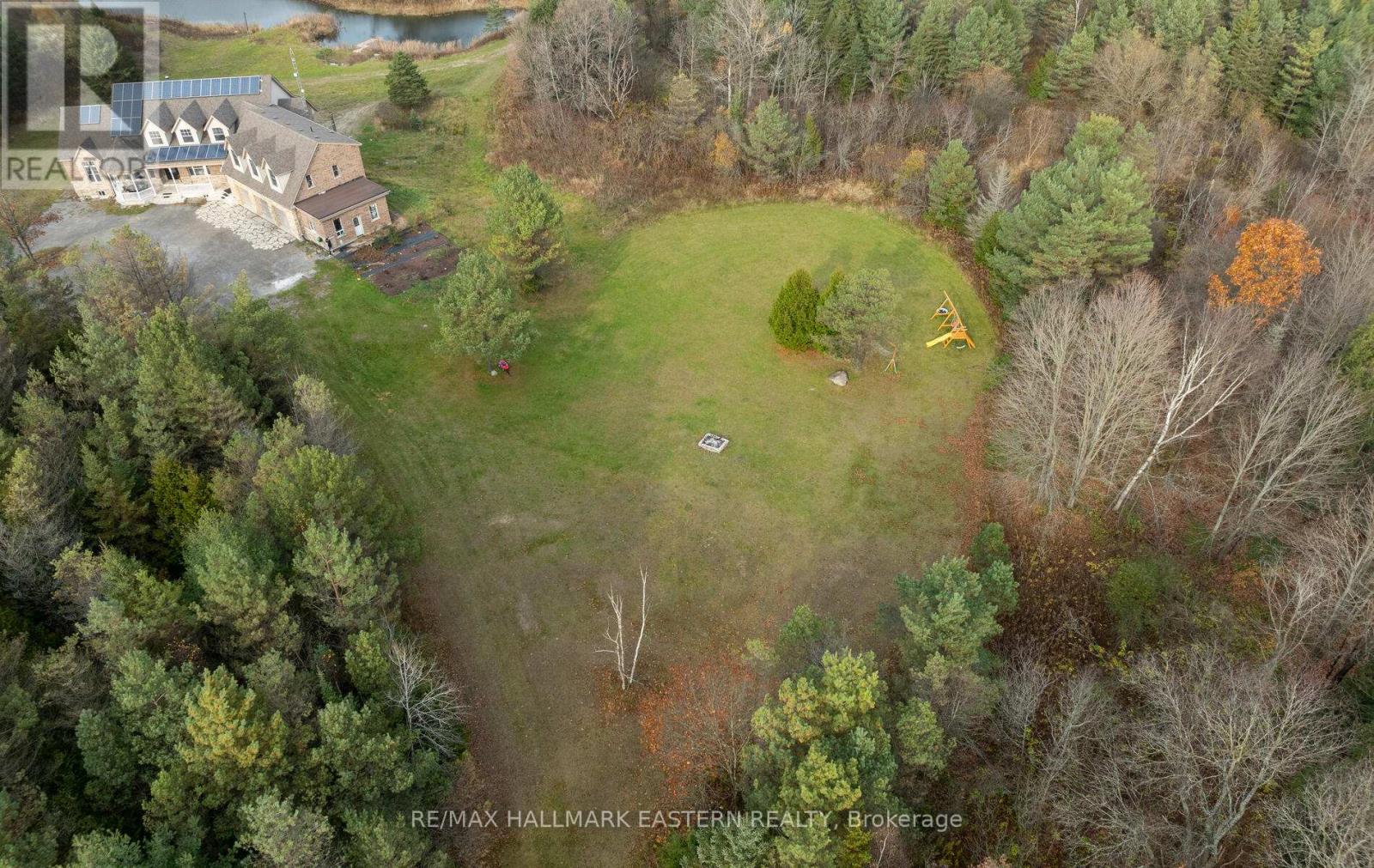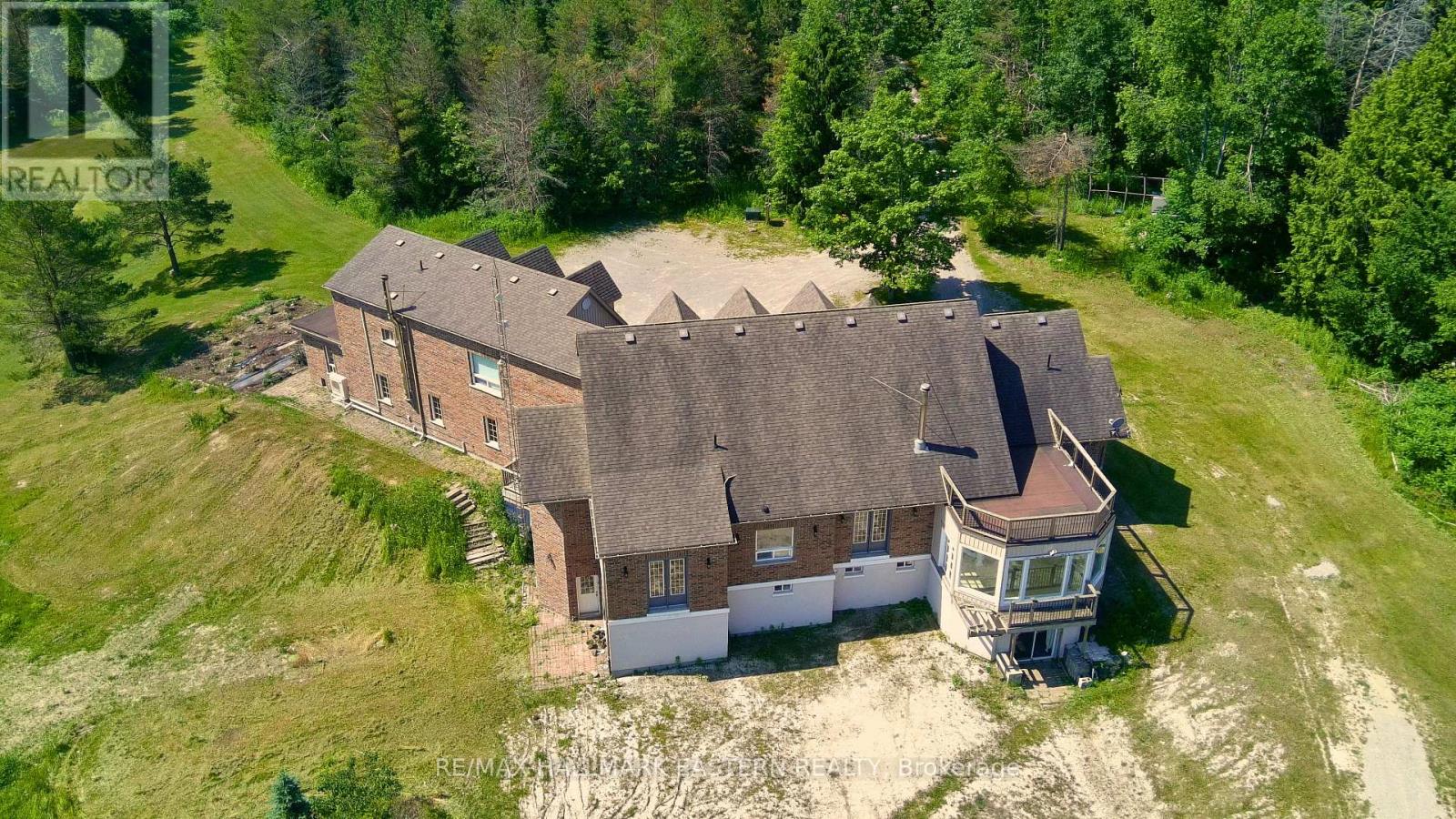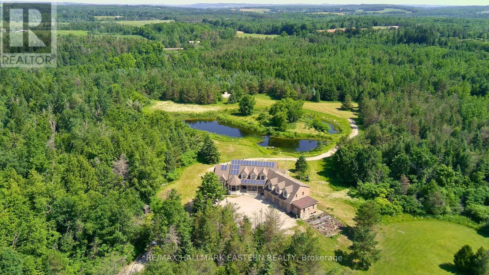 Calling all multi-generational families, visionaries and entrepreneurs! This rare estate is custom-built and offers an incredible blend of space with an extended family home and three additional separate living quarters, compiling into 4 self-contained living areas making it easy for multiple generations to live together while maintaining privacy. Over 8,200 sq ft of finished space, including 7 bedrooms, 6 bathrooms plenty of room for everyone. The main residence features a skylit foyer, soaring waffle ceilings, chefs kitchen, sun room and a luxurious primary suite with a spa-inspired 5-piece ensuite. Private entrances to each living space ensure flexibility and autonomy for each household. In-floor radiant heating in second legal dwelling above garage and two heat pumps on the property ensures year-round comfort. Ample parking with 13 total spaces (3 in garage, 10 in the driveway) makes family visits or multiple vehicles a breeze. Outdoor perks include 3 stocked ponds, a chicken coop, and a goat barn perfect for hobby farming or self-sufficient living. Income potential via B&B setup or rental suites adds financial versatility. Potential For 4-Plex W/ Zoning Changes. Solar panels generate over $3,000 annually, plus property tax savings if you enroll in the Managed Forest Tax Incentive Program. Convenient location just 1 hour from the GTA and minutes to Hwy 115 means you're close to the city while enjoying rural peace and privacy. This property blends luxury, independence, and functionality ideal for families looking to stay connected while living in their own space or explore the options of subsidizing your mortgage through rental income or entrepreneurial endeavors. (id:51158)