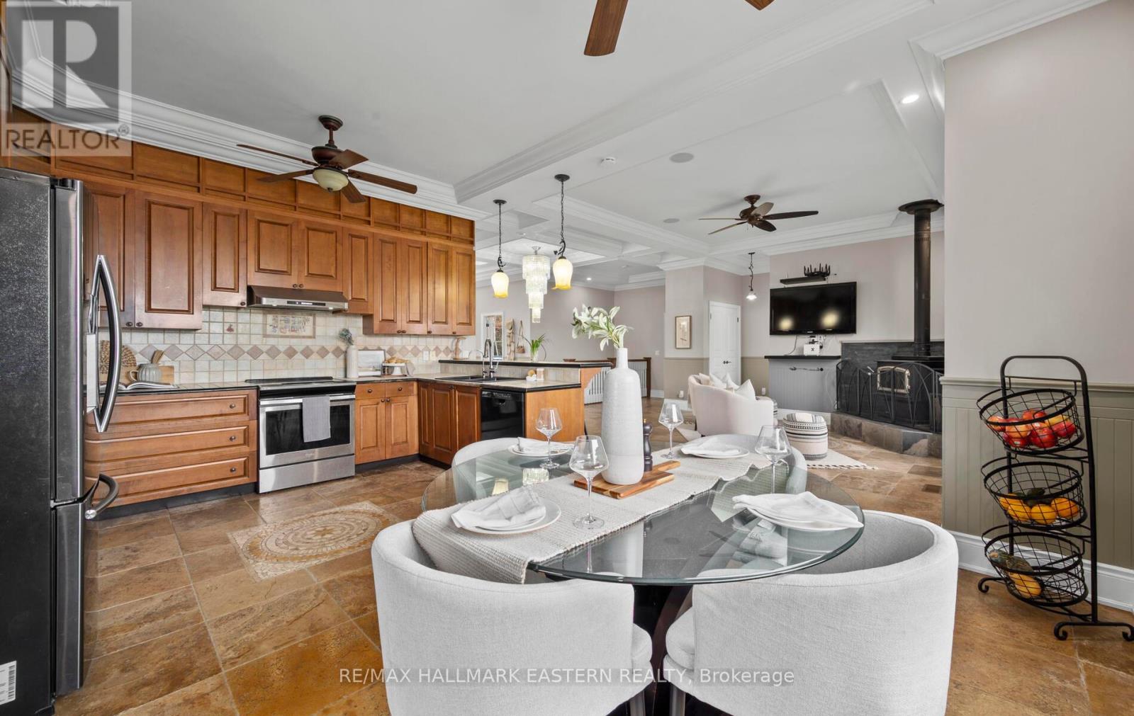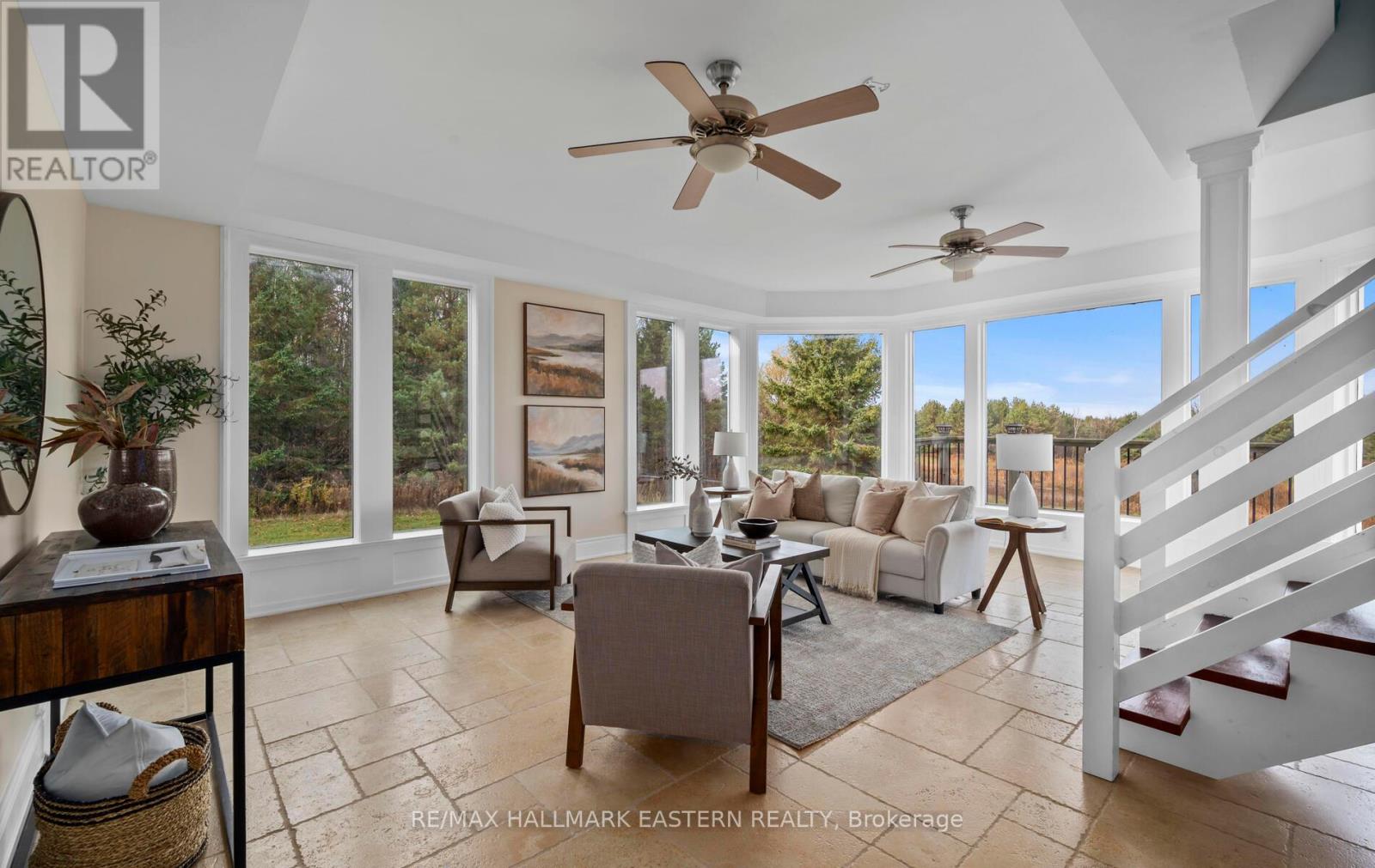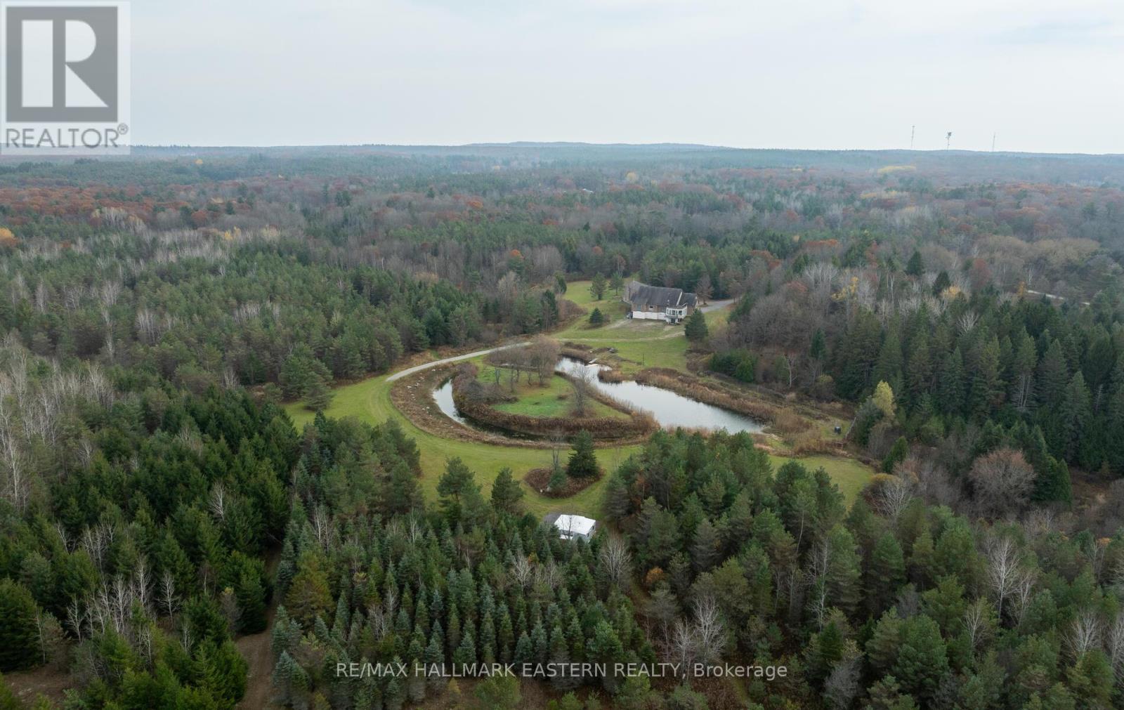 Calling all multi-generational families, visionaries and entrepreneurs! This rare estate is custom-built and offers an incredible blend of space with an extended family home and three additional separate living quarters, compiling into 4 self-contained living areas making it easy for multiple generations to live together while maintaining privacy. Over 8,200 sq ft of finished space, including 7 bedrooms, 6 bathrooms plenty of room for everyone. The main residence features a skylit foyer, soaring waffle ceilings, chefs kitchen, sun room and a luxurious primary suite with a spa-inspired 5-piece ensuite. Private entrances to each living space ensure flexibility and autonomy for each household. In-floor radiant heating in second legal dwelling above garage and two heat pumps on the property ensures year-round comfort. Ample parking with 13 total spaces (3 in garage, 10 in the driveway) makes family visits or multiple vehicles a breeze. Outdoor perks include 3 stocked ponds, a chicken coop, and a goat barn perfect for hobby farming or self-sufficient living. Income potential via B&B setup or rental suites adds financial versatility. Potential For 4-Plex W/ Zoning Changes. Solar panels generate over $3,000 annually, plus property tax savings if you enroll in the Managed Forest Tax Incentive Program. Convenient location just 1 hour from the GTA and minutes to Hwy 115 means you're close to the city while enjoying rural peace and privacy. This property blends luxury, independence, and functionality ideal for families looking to stay connected while living in their own space or explore the options of subsidizing your mortgage through rental income or entrepreneurial endeavors. (id:51158)