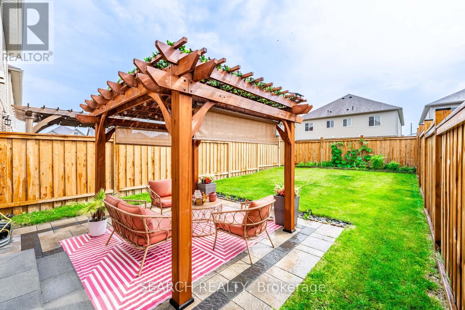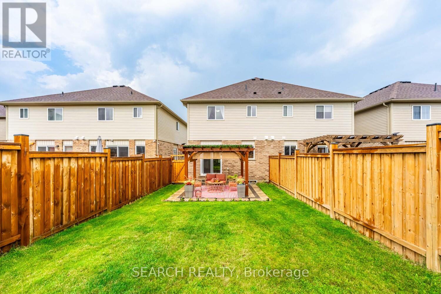 Welcome To This Spectacular Semi-Detached Home In One Of The Most Sought-After Communities In South Guelph The Beautiful Kortright East Neighbourhood. Built By Award-Winning Fusion Homes, This Home Just Celebrated 5 Wonderful Years In June 2025 And Is Still Cared For By The Original Owners Who Have Maintained It With Love And Warmth.Step Inside To A Bright Foyer That Flows Into A Spacious Living Room And An Open-Concept Kitchen With Dining Area. The Upgraded Kitchen Boasts New Brand Quartz Countertops, A Double Sink, S/S Appliances, Backsplash, And Sliding Doors That Lead Out To A Huge Backyard With A Beautifully Finished Patio And A High-End Pergola Perfect For Entertaining. Upstairs, You Will Find Large Bedrooms, Including A Primary With Ensuite, Another Full Bathroom, Walk-In Closets with Each Room, Convenient Second-Floor Laundry, And Quartz Counters In All the Bathrooms. Natural Light Fills The Home Through Large Windows, Highlighting The Excellent Layout That Stands Out Among Other Semis In The Area.Enjoy Great Curb Appeal With Professionally Done Front Landscaping, Stone Edging, And Flowers That Add Charm And Warmth. Minutes to University of Guelph, Hwy 401, French Immersion School, And All Major Amenities.With Parking For 3 Cars, A Long Closing Option, And Nothing To Do But Move In This Home Is Truly A Must-See. Pack Your Bags And Make This Your New Home! (id:51158)