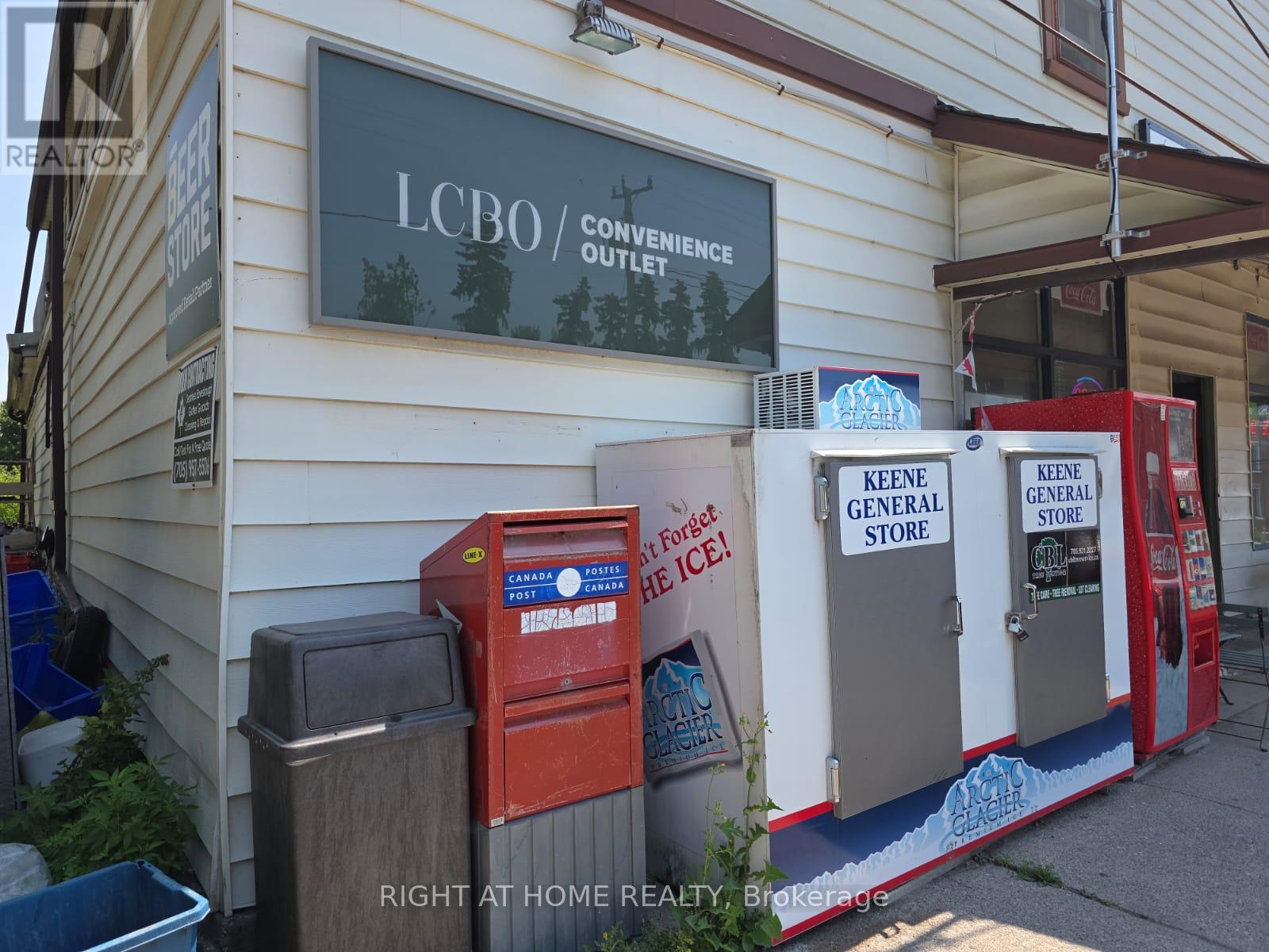 Excellent LIVE & WORK opportunity- business with property! Own the only convenience store in town- well established community hub! Prime downtown location with Retail- Convenience Store/ General Store, Liquor Store (LCBO licence), Post Office, Lottery Machine & Residential Apartments above, all in one. All located in the heart of downtown Keene, an anchor in the community, operating successfully for nearly three decades. The store has been renovated recently, offering a clean and organized space. If you are tired of the hustle and bustle of the city and want to live and work in a quiet area and be your own boss, this is the perfect opportunity! The building offers the general store on the main level (with 1 washroom) and a 3 bedroom apartment (with kitchen & bathroom) above, deck in the back, 20x40' barn, and 14x24' storage shed. The unfinished area above and full basement is perfect for a 2nd/ 3rd apartment to generate extra rental income. With excellent frontage on the street and ample parking on site, you benefit from high visibility. Although it serves the town, several nearby campgrounds, schools, clubs all rely on the convenience of this store. The back area of the building offers a great piece of land for further extension or family enjoyment. The current owners have a big barn and shed to store their summer and winter toys and enjoy bonfires at night while staring at the amazing clear stars. Benefit from built in revenue (grocery, lotto, alcohol, post office) while building on endless additional revenue possibilities- anything you can dream up! This turnkey versatile space opens up opportunities for additional business ventures such as cigarette, vape, cannabis, café, coffee shop, gelato, bakery, hunting and fishing, home hardware supplies, storage in barn. The Downtown's main Pizzeria (business only) across the street is leased separately, not part of this property, but can be negotiated with this sale (ask for details). (id:51158)