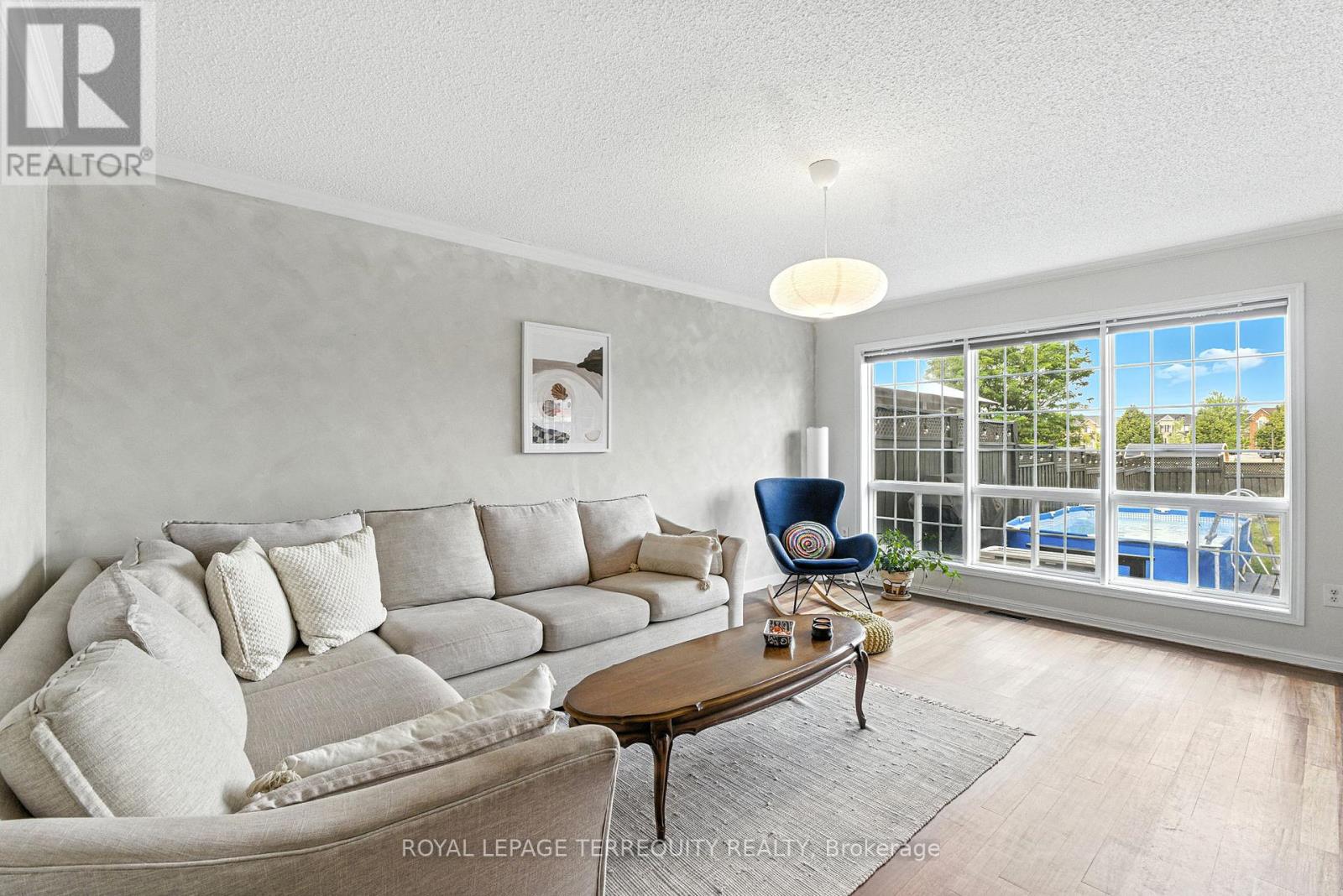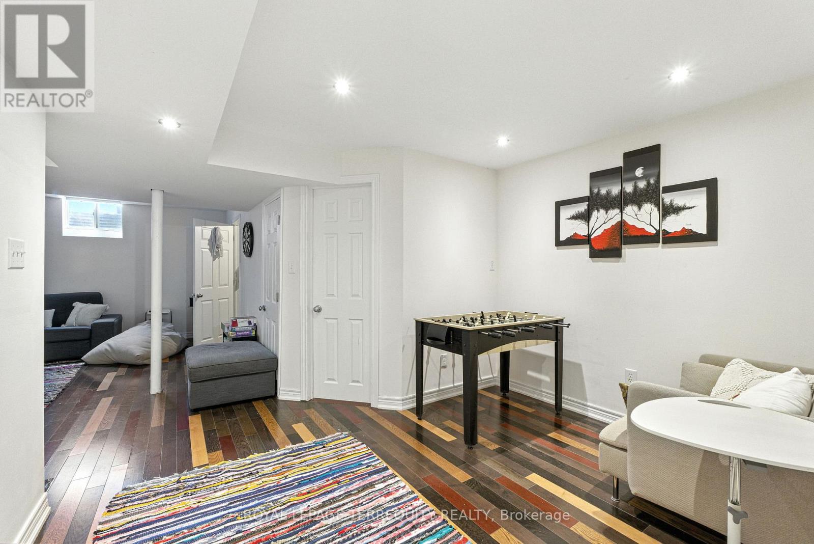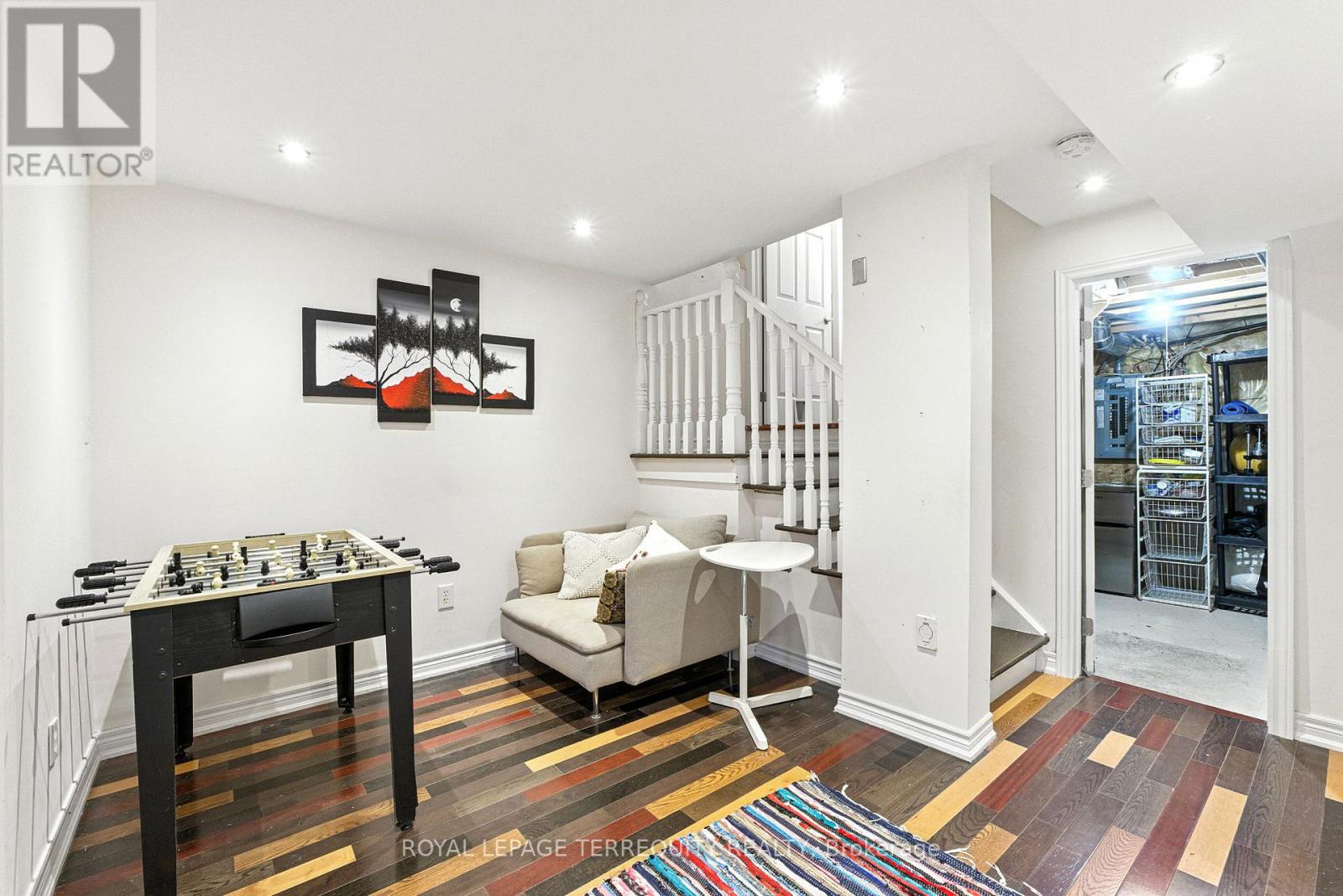 Welcome home to this beautifully updated townhouse, ideally situated in a tranquil neighborhood. This residence offers an inviting east-facing frontage and an exceptionally deep lot spanning almost 120 feet, providing ample outdoor space. Step inside to a home that feels brand new, featuring all new electrical light fixtures (ELF). The main floor showcases elegantly refinished flooring, while the entire second floor boasts brand new, modern flooring, creating a cohesive and fresh aesthetic. Enjoy privacy and comfort with blackout window coverings throughout and enhanced storage thanks to upgraded closets. The spacious finished basement provides versatile living space, perfect for a family room, home office, or gym. The exterior is an entertainer's dream, featuring a freshly finished deck ideal for outdoor dining, and an above-grade pool for summer enjoyment. The property has been meticulously enhanced with new landscaping in both the front and back yards, offering stunning curb appeal and a serene backyard oasis. Added convenience comes with an automatic garage opener. This townhouse is a perfect blend of comfort, style, and practicality, ready for its next owners. (id:51158)