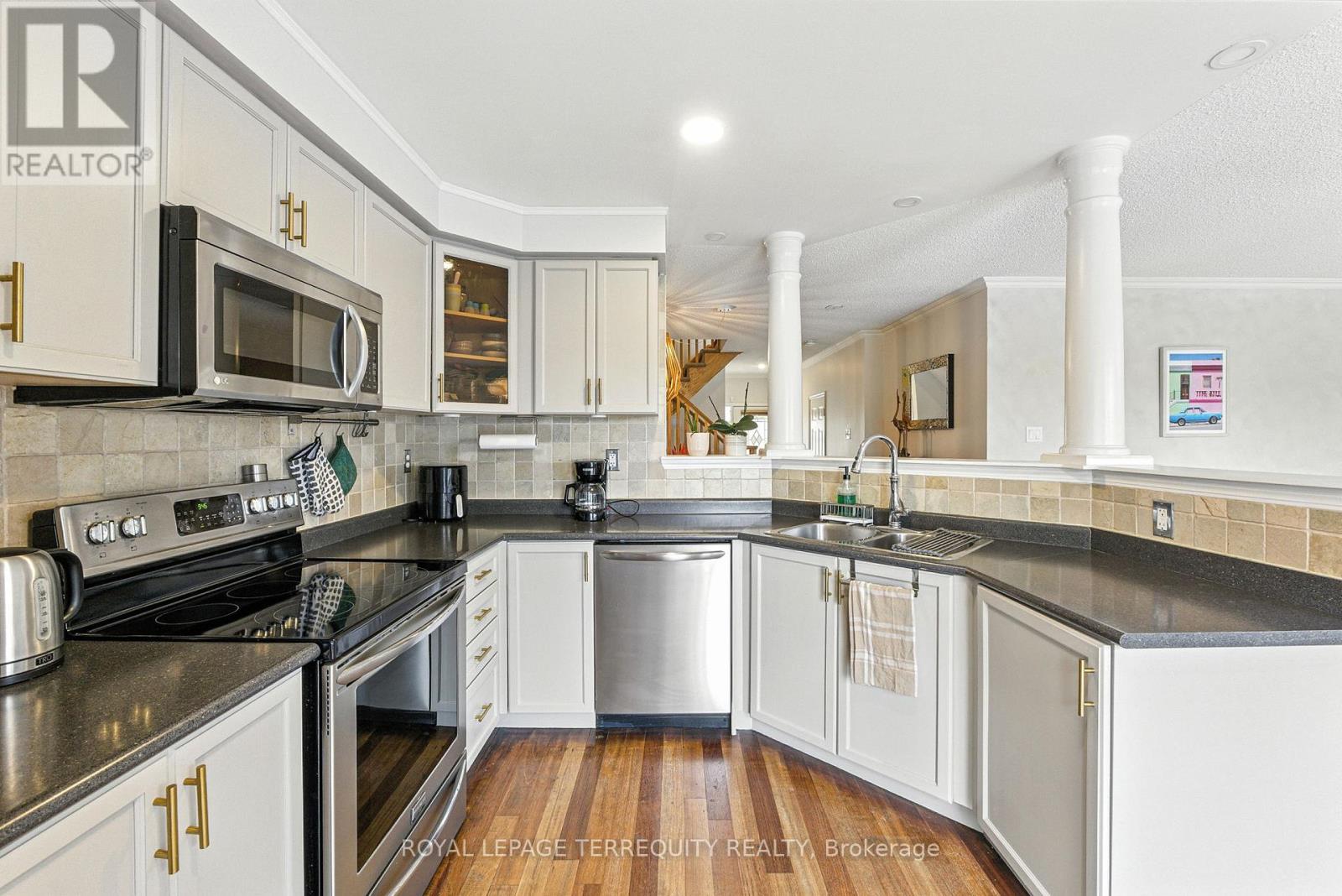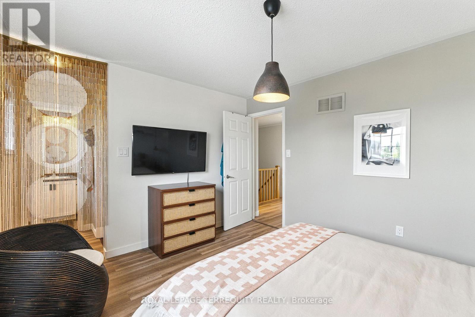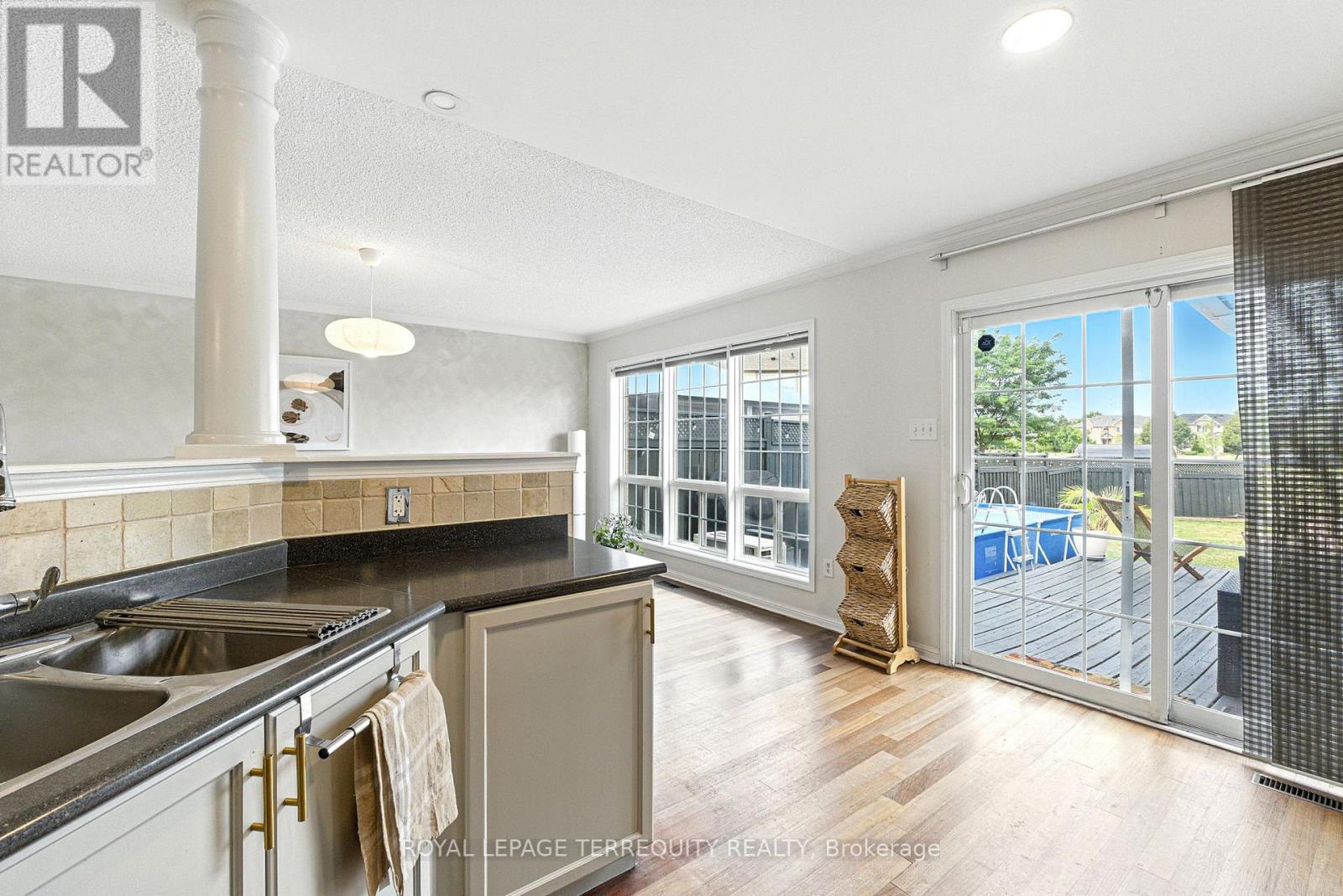 Welcome home to this beautifully updated townhouse, ideally situated in a tranquil neighborhood. This residence offers an inviting east-facing frontage and an exceptionally deep lot spanning almost 120 feet, providing ample outdoor space. Step inside to a home that feels brand new, featuring all new electrical light fixtures (ELF). The main floor showcases elegantly refinished flooring, while the entire second floor boasts brand new, modern flooring, creating a cohesive and fresh aesthetic. Enjoy privacy and comfort with blackout window coverings throughout and enhanced storage thanks to upgraded closets. The spacious finished basement provides versatile living space, perfect for a family room, home office, or gym. The exterior is an entertainer's dream, featuring a freshly finished deck ideal for outdoor dining, and an above-grade pool for summer enjoyment. The property has been meticulously enhanced with new landscaping in both the front and back yards, offering stunning curb appeal and a serene backyard oasis. Added convenience comes with an automatic garage opener. This townhouse is a perfect blend of comfort, style, and practicality, ready for its next owners. (id:51158)