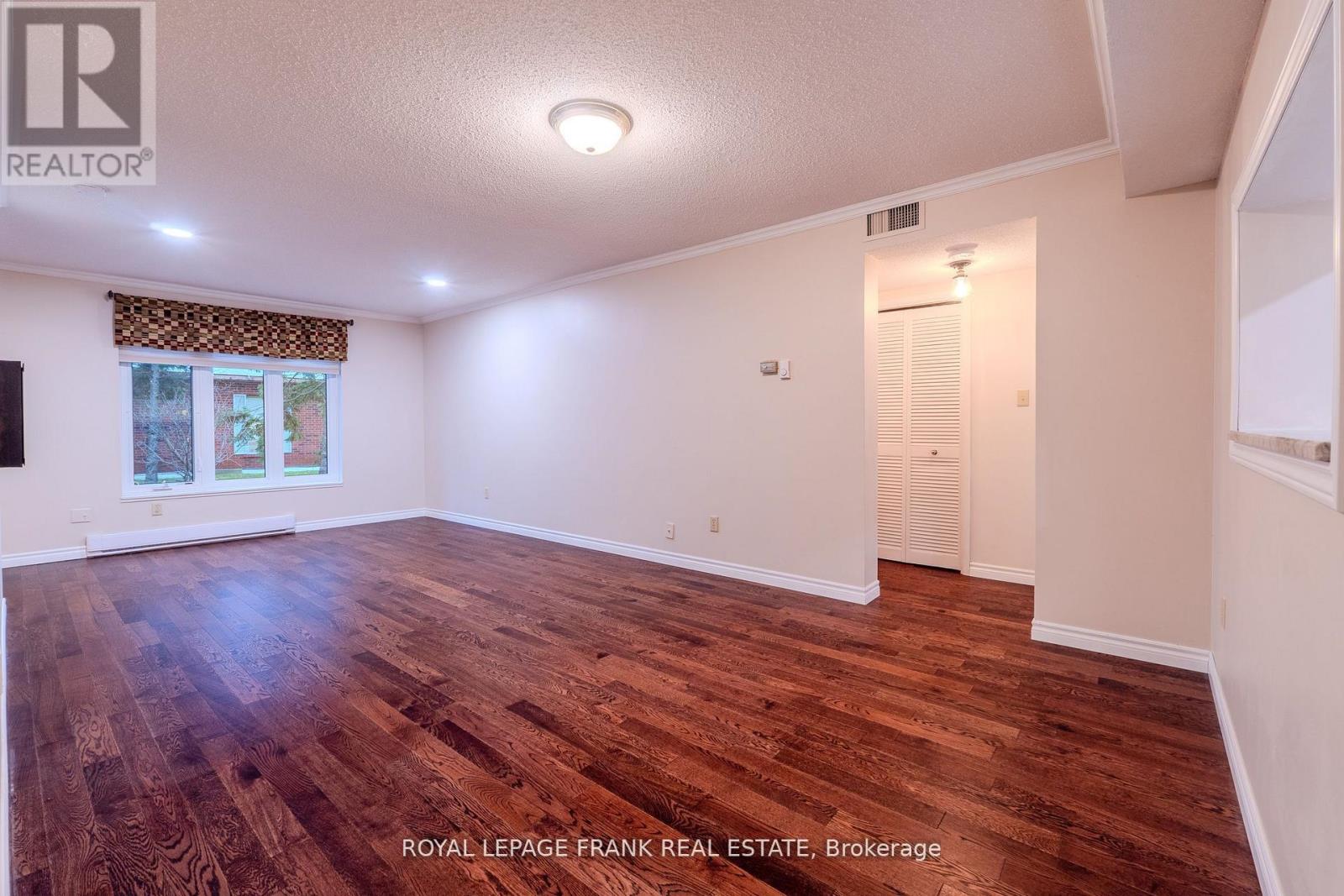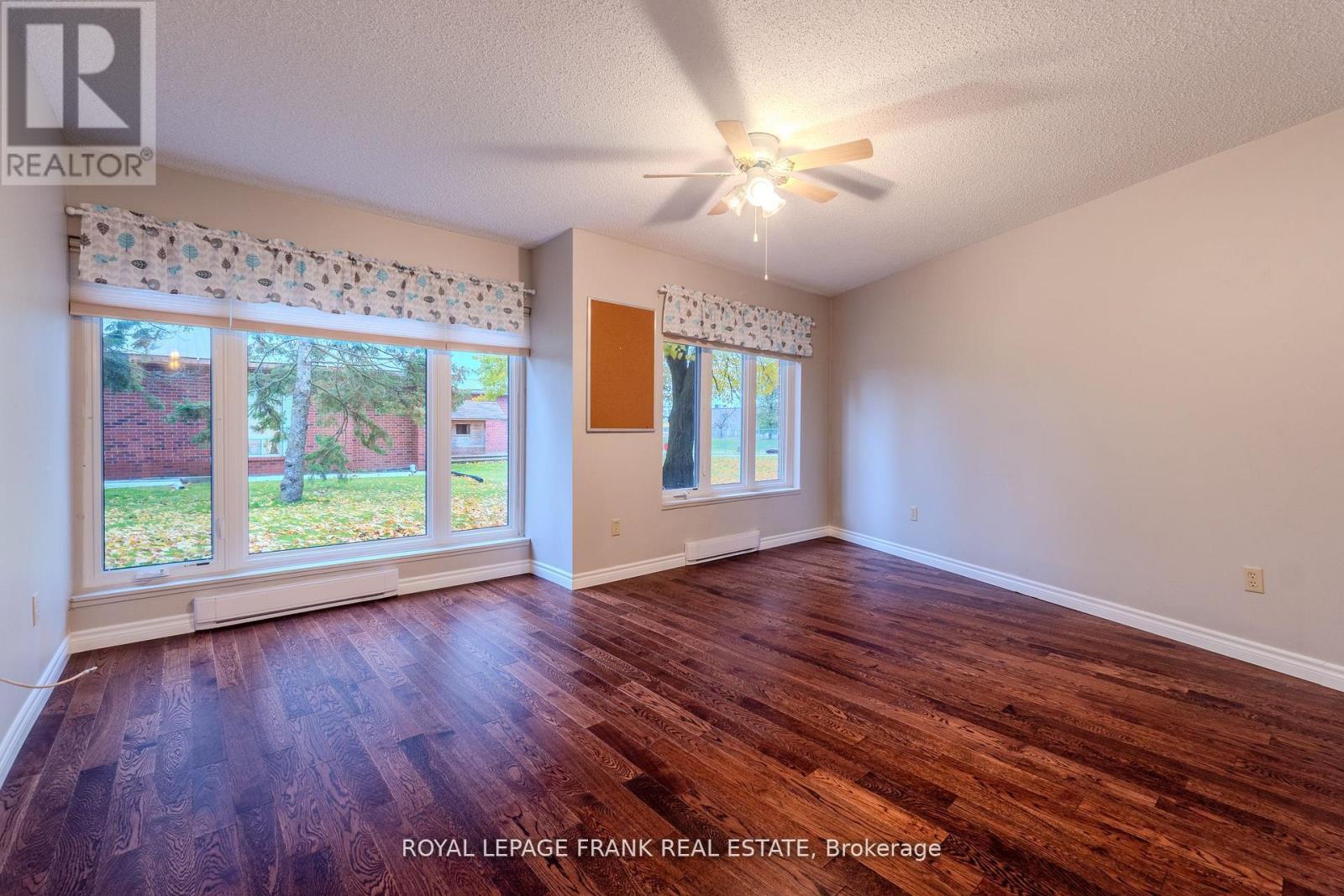 $565 MonthlyHello Gorgeous! Lux Condo offered at Heritage Gardens East in the Heart of Lindsay. Prepare to be wowed by this sumptuously renovated ground floor walk-out suite created with heart and soul for the finest in luxury living. Lovely updated ceramics flow from the foyer through to a swoon-worthy kitchen that serves up style and sets the mood. Sporting an array of cabinetry, including display cabinets that showcase your glassware in a chic, glass-on-glass style. Modern recessed ceiling with pot lights and vintage inspired accent wall adding texture, soothing pastel hues and a bit of fun that you will love. Gorgeous granite countertops, backsplash and SS appliances...all paired beautifully with the timeless white cabinets. Unwind in the spacious living/dining area complimented by a charming adjacent sunroom...rich hardwood flooring, crown molding, lovely picture window with custom blinds and all enhanced by a calming glow from the decorative wall mounted fireplace. 2 beautifully renovated baths, marble and granite tops and one with a big frameless glass shower. The oversized principal bedroom floods with natural light from a wall of delightful picture windows. Second bedroom seamlessly opened up to the sunroom creating a multi-functional space inviting you to walk out and relax on the private patio. In-suite laundry, designated parking spot and locker space. A friendly community and beautifully maintained building with a wonderful lobby to greet you and your guests. Lots of activities to enjoy at your leisure and many amenities to share with friends and family. Guest suit, party room, library, workshop, pool table, shuffleboard, patios and BBQ area. Invite your visitors for a dip in the fabulous outdoor pool too! Minutes to shopping, pharmacy and hospital. A Carefree and Gracious Lifestyle Awaits you. "Must See"...Snap it Up Now! (id:51158)