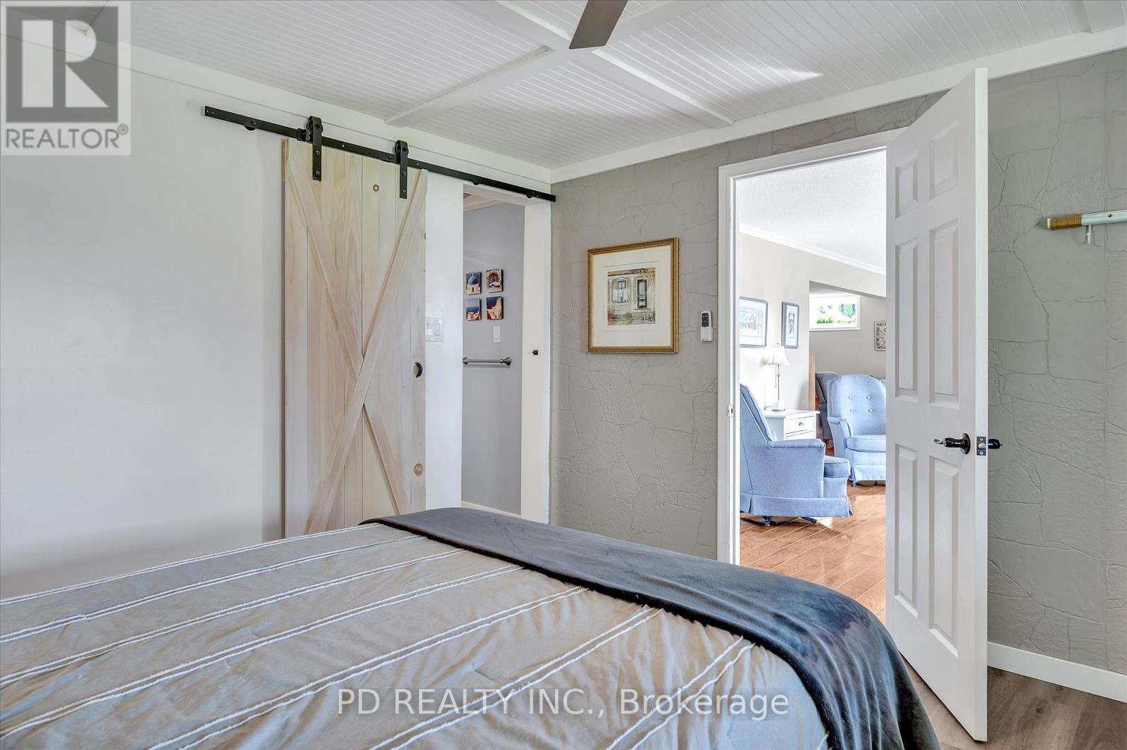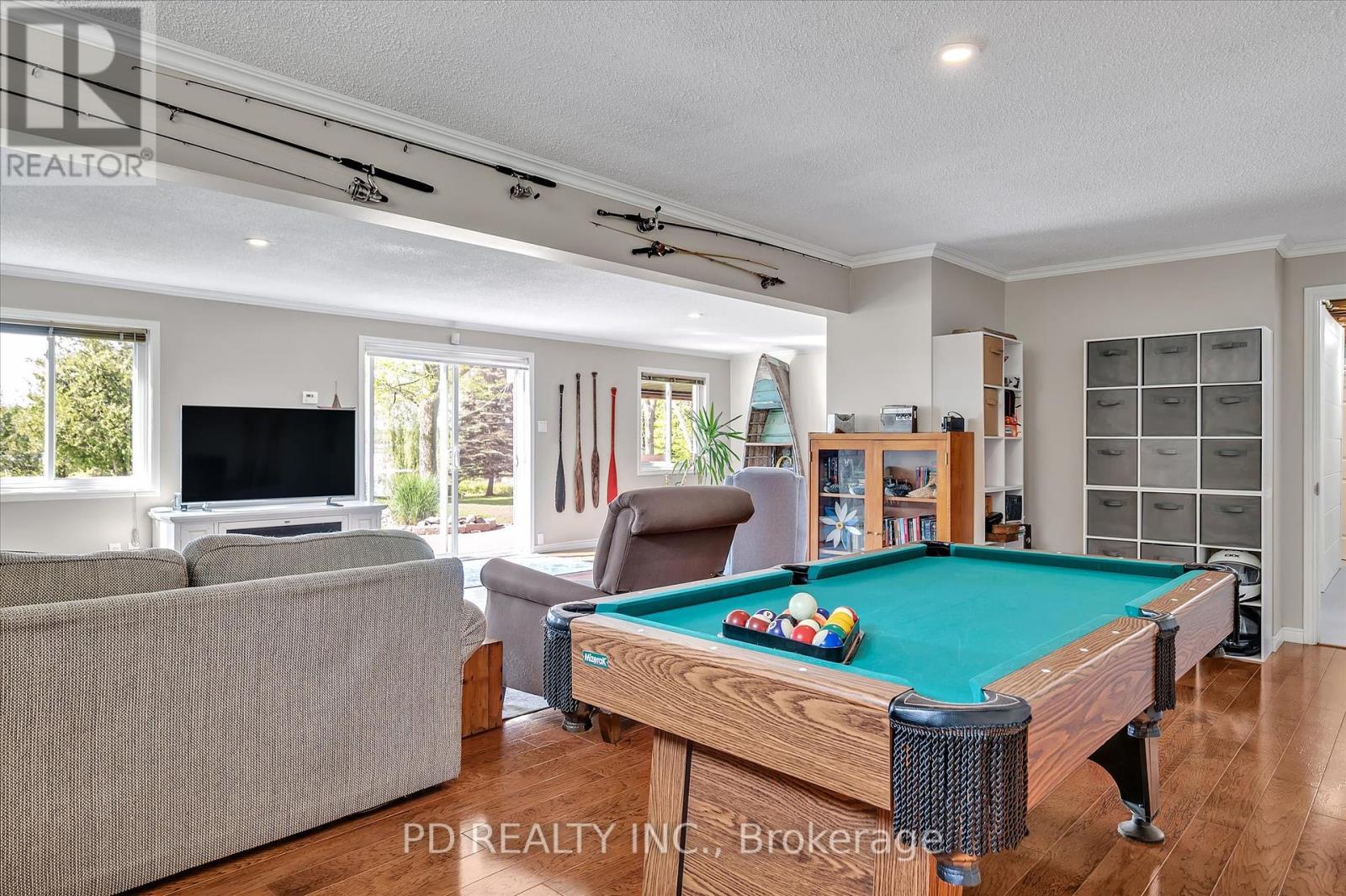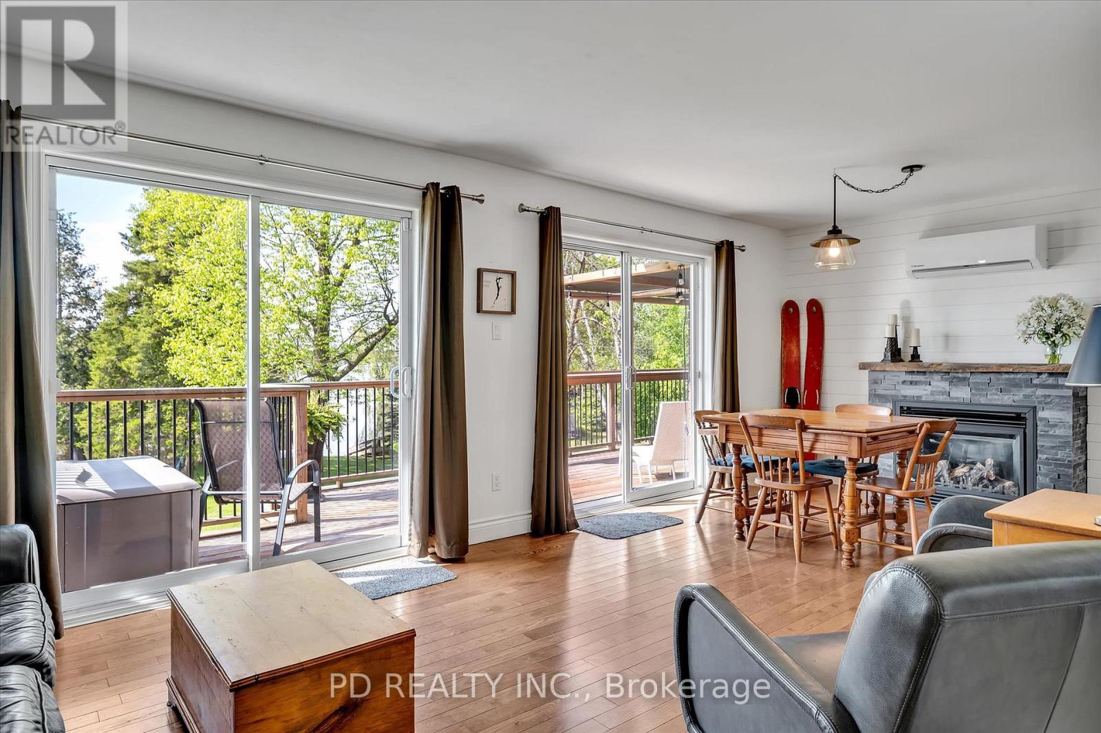 Absolutely Nothing to Do But Move In! This immaculately maintained brick bungalow offers serene living on just under half an acre with 100 feet of frontage on the picturesque Pigeon River. Step inside to a spotless, updated kitchen with direct access from the attached two-car garage, perfect for unloading groceries with ease. The open-concept living and dining area features beautiful hardwood floors, a cozy natural gas fireplace, and two walkouts to a spacious deck where you can relax and enjoy views of the water and a small island providing added privacy and frequent wildlife sightings. The main floor boasts three bedrooms, all with hardwood flooring. One bedroom includes a private 2-piece ensuite bathroom, and there is also a well-appointed 3-piece main bathroom. The fully finished walk-out basement offers a large recreation room complete with a gas fireplace and walkout to a patio overlooking the lush lawn and waterfront. The basement also includes a fourth bedroom with a 4-piece ensuite bathroom and laundry area, ideal for guests or extended family. Step outside to enjoy the waterfront lifestyle with two private docks, perfect for boating, fishing, or simply soaking in the peaceful surroundings. This home combines tranquility, comfort, and turnkey convenience, a rare find that's truly worth seeing in person! (id:51158)