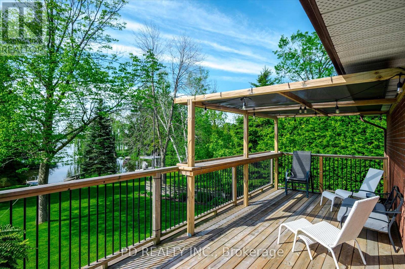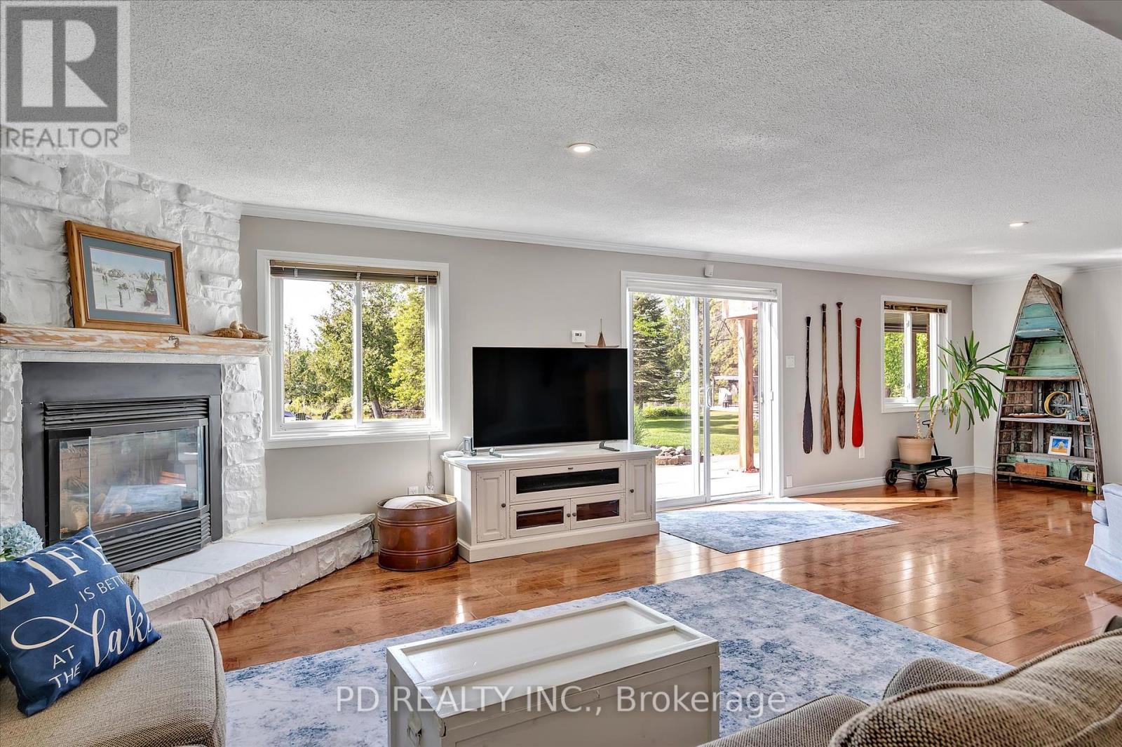 MLS# X12183767 – FOR SALE : 112 Clearview Drive Emily Kawartha Lakes – 4 Beds, 3 Baths Detached House ** Absolutely Nothing to Do But Move In! This immaculately maintained brick bungalow offers serene living on just under half an acre with 100 feet of frontage on the picturesque Pigeon River. Step inside to a spotless, updated kitchen with direct access from the attached two-car garage, perfect for unloading groceries with ease. The open-concept living and dining area features beautiful hardwood floors, a cozy natural gas fireplace, and two walkouts to a spacious deck where you can relax and enjoy views of the water and a small island providing added privacy and frequent wildlife sightings. The main floor boasts three bedrooms, all with hardwood flooring. One bedroom includes a private 2-piece ensuite bathroom, and there is also a well-appointed 3-piece main bathroom. The fully finished walk-out basement offers a large recreation room complete with a gas fireplace and walkout to a patio overlooking the lush lawn and waterfront. The basement also includes a fourth bedroom with a 4-piece ensuite bathroom and laundry area, ideal for guests or extended family. Step outside to enjoy the waterfront lifestyle with two private docks, perfect for boating, fishing, or simply soaking in the peaceful surroundings. This home combines tranquility, comfort, and turnkey convenience, a rare find that’s truly worth seeing in person! (id:51158) ** 112 Clearview Drive Emily Kawartha Lakes **