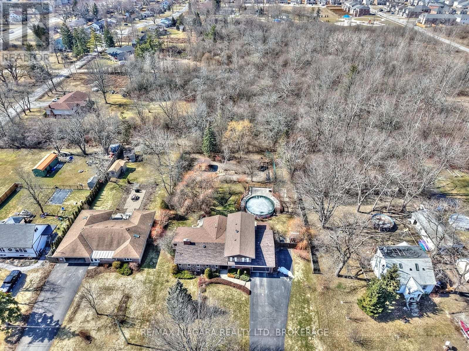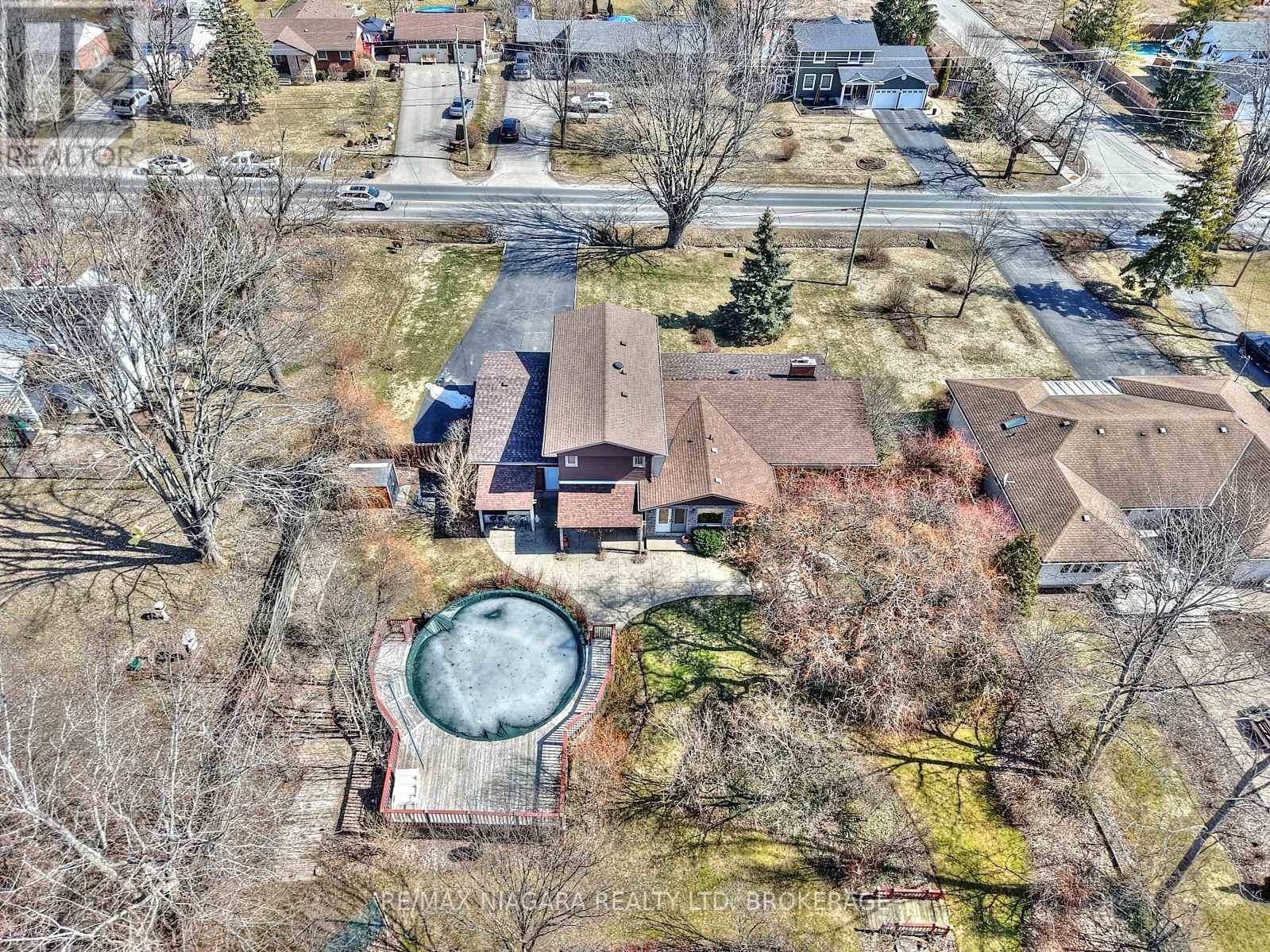 Set on an expansive 125x225 ft lot with no rear neighbours, 1121 Pettit Rd offers privacy, versatility, and beautifully upgraded living just minutes from shopping, services, schools and recreation - with easy access to the QEW to Toronto and Peace Bridge to Buffalo. This thoughtfully renovated home blends timeless character with modern comfort. Inside, vaulted ceilings and abundant natural light create a bright, airy atmosphere. The living room is anchored by a stunning custom wood and brick fireplace surround and exposed beams, adding warmth and architectural charm. The main floor features a formal dining room, a dedicated office space, and a beautifully updated kitchen with peninsula and 2-seat breakfast bar, providing flexibility for everyday living, entertaining, and working from home. The welcoming foyer leads through the kitchen to the light-filled family room with secondary dining area and double doors leading to the backyard. A bedroom with an adjoining 3-piece ensuite allows for convenient main-floor living, while an additional 3-piece bathroom, mudroom with garage access, and laundry room add practicality. Upstairs are two spacious bedrooms, including one with ensuite privilege to a 4-piece bathroom featuring a relaxing soaker tub and built-in towel storage. The finished basement enhances the home's versatility with a second kitchen, large rec room, den, and potential for a fourth bedroom - ideal for multi-generational living, guests, or in-law capability. Outdoors, the landscaped yard feels like a private retreat. Mature trees, winding garden paths, and lush greenery attract birds and wildlife, creating a peaceful setting. Enjoy summer days by the above-ground pool, relax on the covered patio, or gather with family and friends in the expansive backyard with gazebo and sheds. Offering space, flexibility, and elegant upgrades inside and out, this is a rare opportunity to enjoy tranquil living without sacrificing convenience. (id:51158)