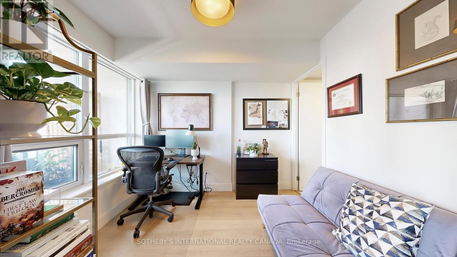 $615.55 MonthlyYour oasis in the city! This 2-bedroom suite offers spectacular, unobstructed views of the CN Tower and the full city skyline from a wide private balcony. Recently renovated with approximately $30,000 in high-end upgrades, this unit feels brand new. Completely renovated kitchen with new cabinetry, stone countertops, and new appliances. New flooring throughout, complemented by contemporary new light fixtures that create a bright and modern ambiance. The thoughtful layout maximizes its 650 sq ft of interior space, providing two comfortable bedrooms and a pristine, brand new, modern bathroom. Building amenities include a fantastic indoor pool, fully-equipped gym, and affordable guest suites for your visitors. Situated in a prime location with easy access to transit, parks, and vibrant Liberty Village, this property is a perfect blend of style, comfort, and city living. (id:51158)