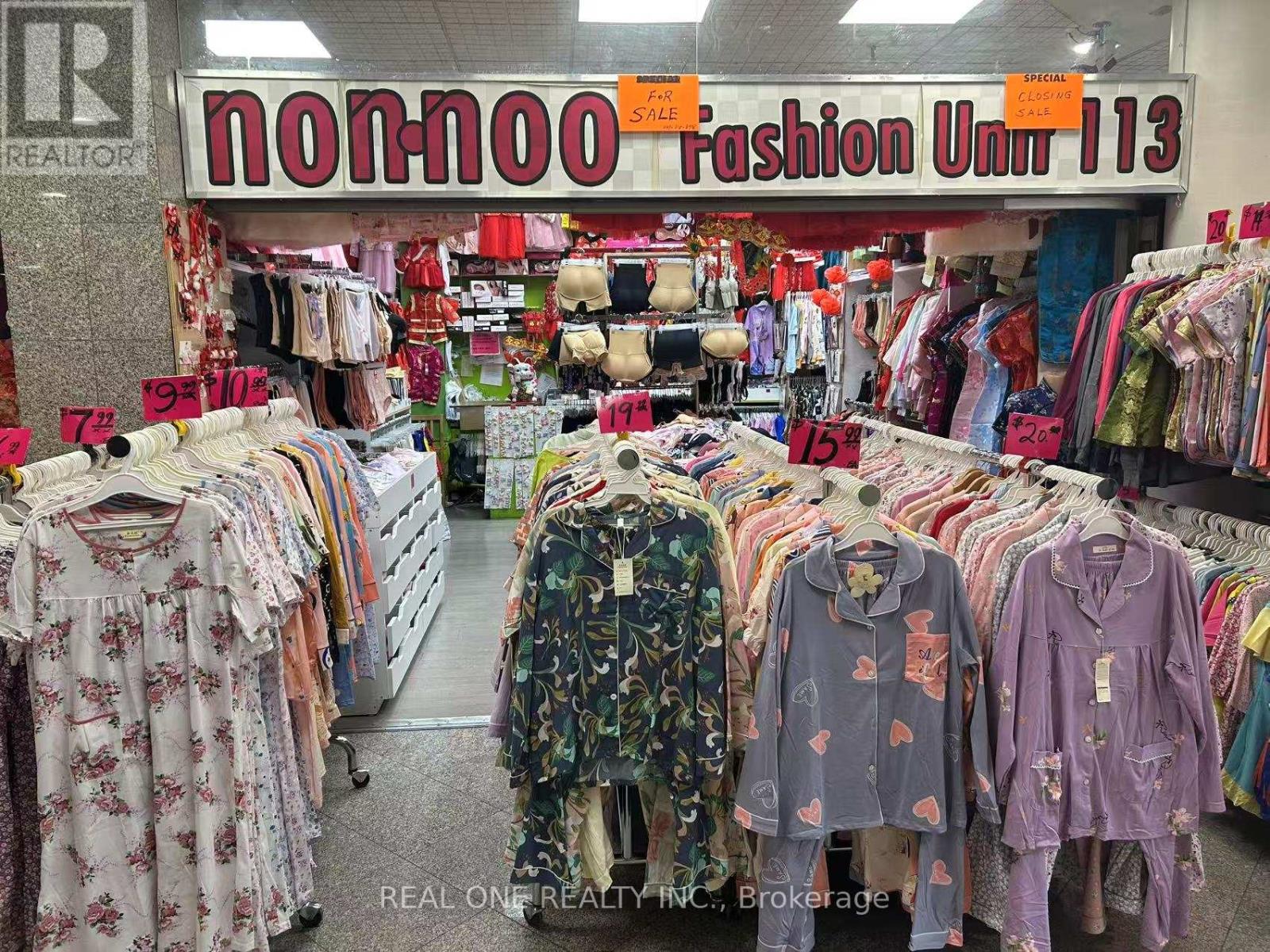 MLS: C12139290 For sale : 113 – 222 SPADINA AVENUE Downtown Toronto mall commercial condo, approx. 580 sq ft. Versatile space for grocery, clothing, food, beauty, office & more. Currently a clothing store. Ideal for owner-occupiers or investors. Potential annual gross rent ~$33,600, net ~$28,453 (after property taxes/fees). Existing clothing business negotiable. ** All business-related information, including but not limited to business numbers, is provided by the Seller and has not been verified by the Listing Brokerage. Buyers are advised to conduct their own due diligence. ** (id:51158)