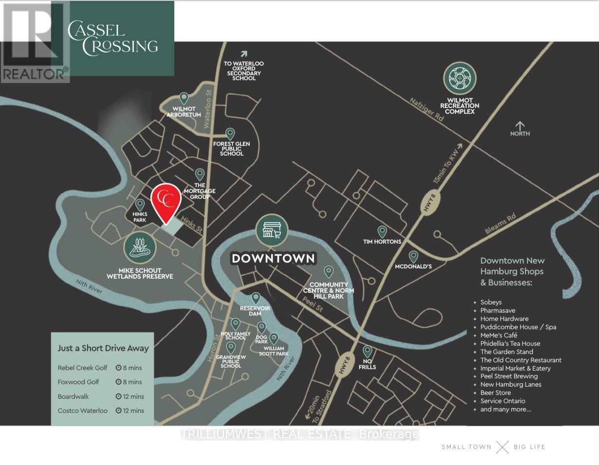 $285 MonthlyOCCUPANCY THIS FALL 2025!!! Welcome to New Hamburg's latest townhouse development, Cassel Crossing! Featuring the quality "now under construction" traditional street front townhouse "The Park" 3 bed interior unit with sunshine basement by a local builder. This unit is full of upgrades! PICK YOUR FINISHES WHILE YOU CAN; quartz countertops throughout, main floor luxury vinyl plank, 9ft main floor ceilings, central air & ERV and wood deck. Enjoy small town living with big city comforts (Wilmot Rec Centre, Mike Schout Wetlands Reserve, Downtown Shops, Restaurants) & much more! Conveniently located only 15 minutes to KW and 45 minutes to the GTA. Open House is held at presentation centre that is located inside the Mortgage Group office located at 338 Waterloo Street Unit #8 - New Hamburg. BONUS: Limited time offer (6 piece appliance package) with purchase and $15,000 in FREE UPGRADES!!! (id:51158)