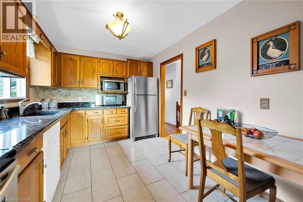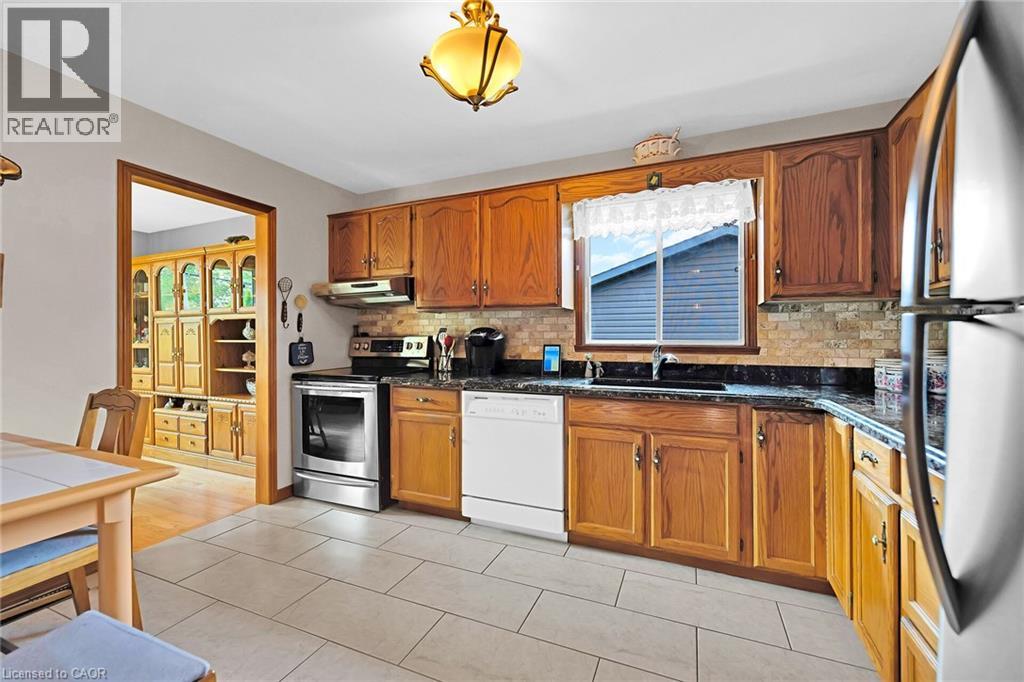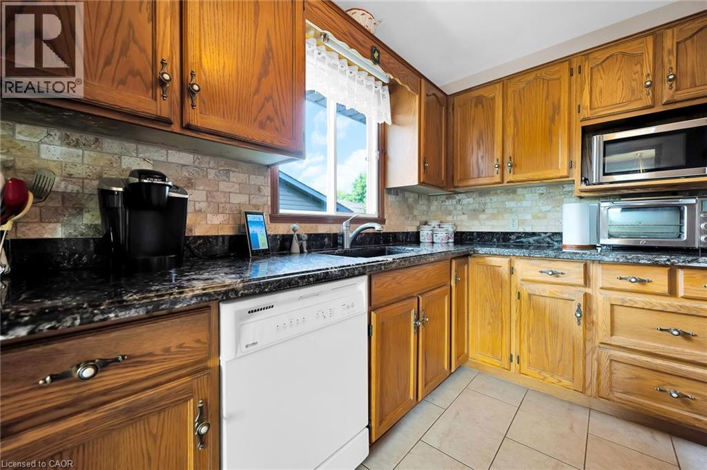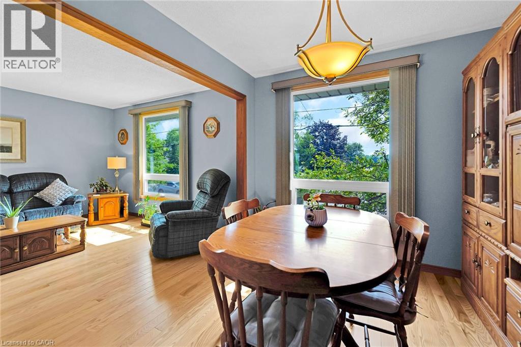 Welcome to this charming raised bungalow, impeccably cared for inside and out, and nestled in a highly desirable in-town location! Offering 3+1 bedrooms, an office, 2 full bathrooms, and an abundance of living space with three cozy family rooms and loads of storage, this home is ideal for growing families or multigenerational living. Enjoy meals in the formal dining room gleaming with newer hardwood floors, graciously prepared in a spacious Eat-in kitchen enriched with granite countertops perfect for entertaining. The main bathroom features thoughtfully upgraded heated floors for year-round comfort, while the lower rec room boasts a warm gas fireplace for cozy evenings. Bright, oversized basement windows and a separate walk-up entrance infuse the lower level with an abundance of natural light, perfect for a future in-law suite. This meticulously maintained home includes newer hardwood floors on the main level and an updated furnace, AC, and water heater. Central vacuum, plus generous storage space throughout. Your private retreat awaits outside! Step out back onto a two-tiered deck and soak in your private backyard paradise, lushly landscaped, complete with breathtaking gardens, stately mature trees, and a charming garden shed. Park with ease: your private paved driveway can accommodate up to six vehicles, and the home includes an attached single-car garage. Located close to everything: schools, parks, shopping, restaurants, rec center, churches, trails, and a scenic ravine! This is a rare, move-in ready sanctuary where convenience meets tranquility. Don’t miss your chance to own this gem in an unbeatable location! (id:51158)