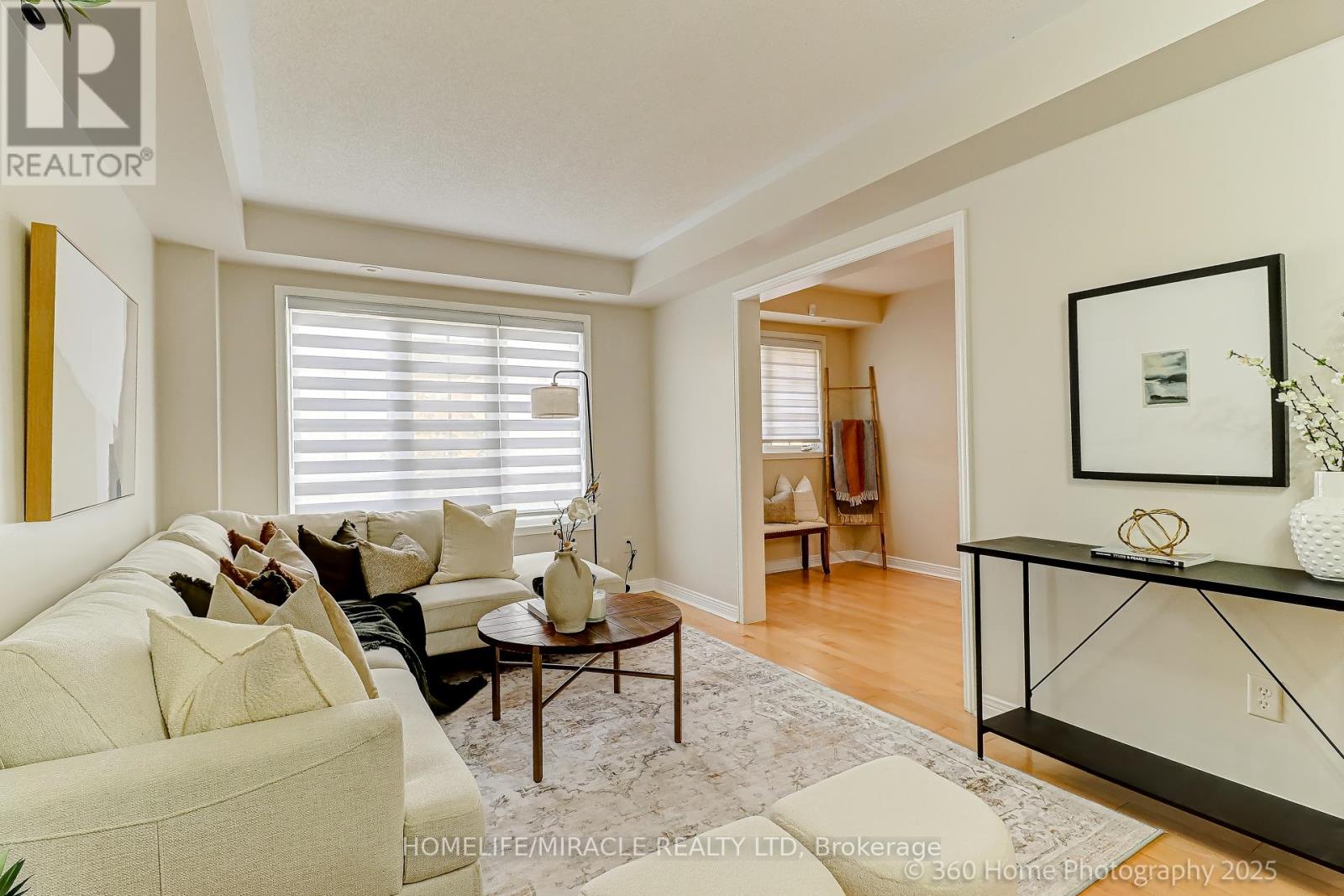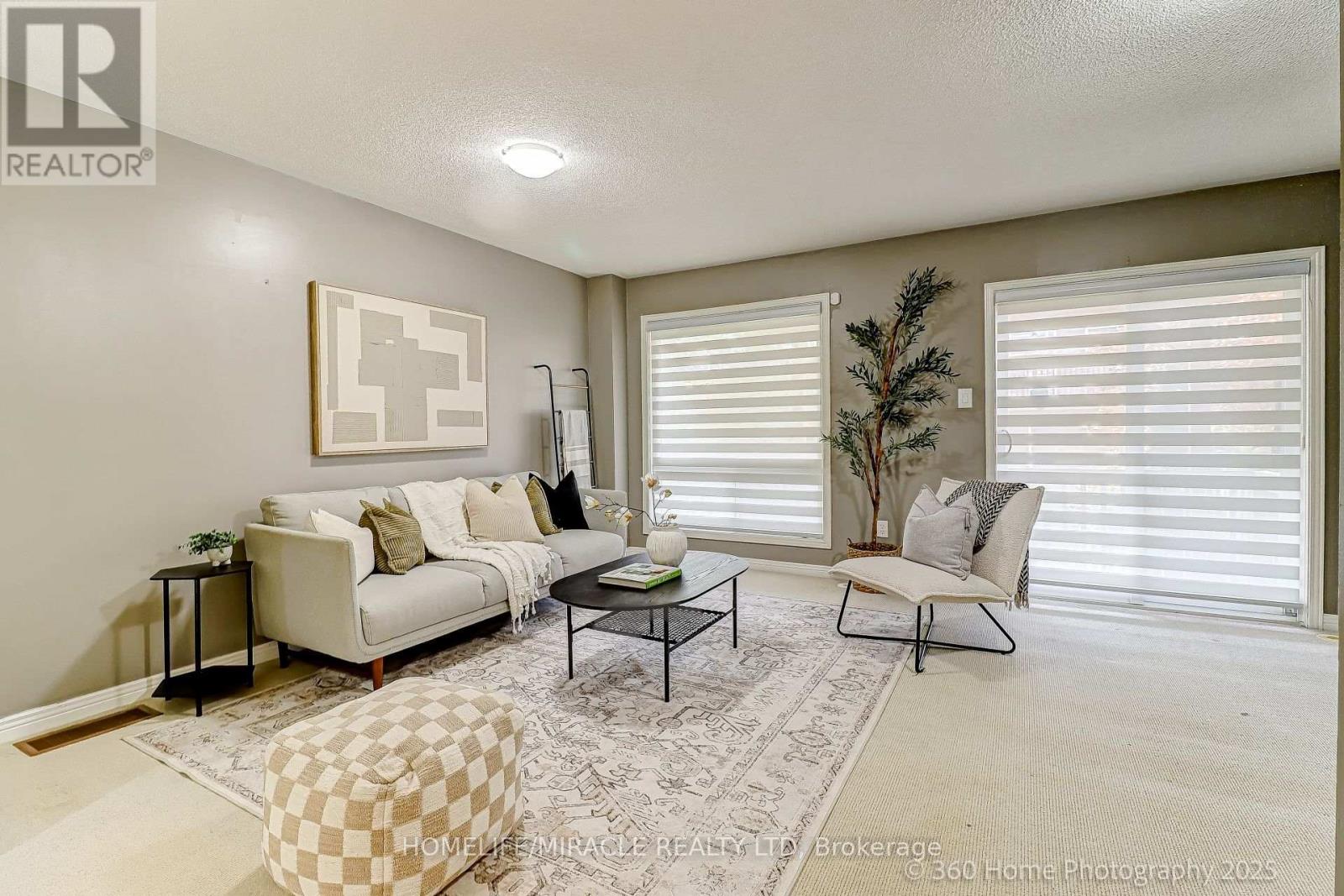 Welcome to this stunning townhome, offering the privacy and feel of a home with over 1926 sq. ft. (2400 Approximate with Basement)of beautifully designed living space. This bright and spacious home features an open-concept layout with 3+1 bedrooms and 4 Full bathrooms, perfect for families or those who love to entertain. Large windows fill every level with natural light, while gleaming hardwood floors create a warm and elegant atmosphere. The Main floor design with Family room or use as a great room also Home Office with 4 Pc Ensuite Washroom. The Second floor boasts a modern kitchen with quartz countertops, a pantry, and ample cabinet space, Living, Dining and Breakfast area ideal for both everyday living and hosting gatherings. Step out from the kitchen onto a large private deck, perfect for morning coffee or summer BBQs. A unique staircase design enhances flow and convenience throughout the home. Direct garage access is an added bonus, especially in winter, and the upper-level laundry room adds everyday practicality. The finished basement provides a versatile space with an additional bedroom or home office, plus a full bathroom perfect for guests or extended family. Or Income potential. Upstairs, the primary suite offers a private 5pc Ensuite and generous closet space, creating a relaxing retreat. Step outside to a beautifully landscaped backyard, a true highlight of this property. Whether your are a garden lover or looking for a safe play area for kids, this outdoor space blends beauty and function seamlessly. Move-in ready and meticulously maintained, this rare home combines comfort, style, and practicality in one exceptional package. Dont miss your chance to call it home! (id:51158)