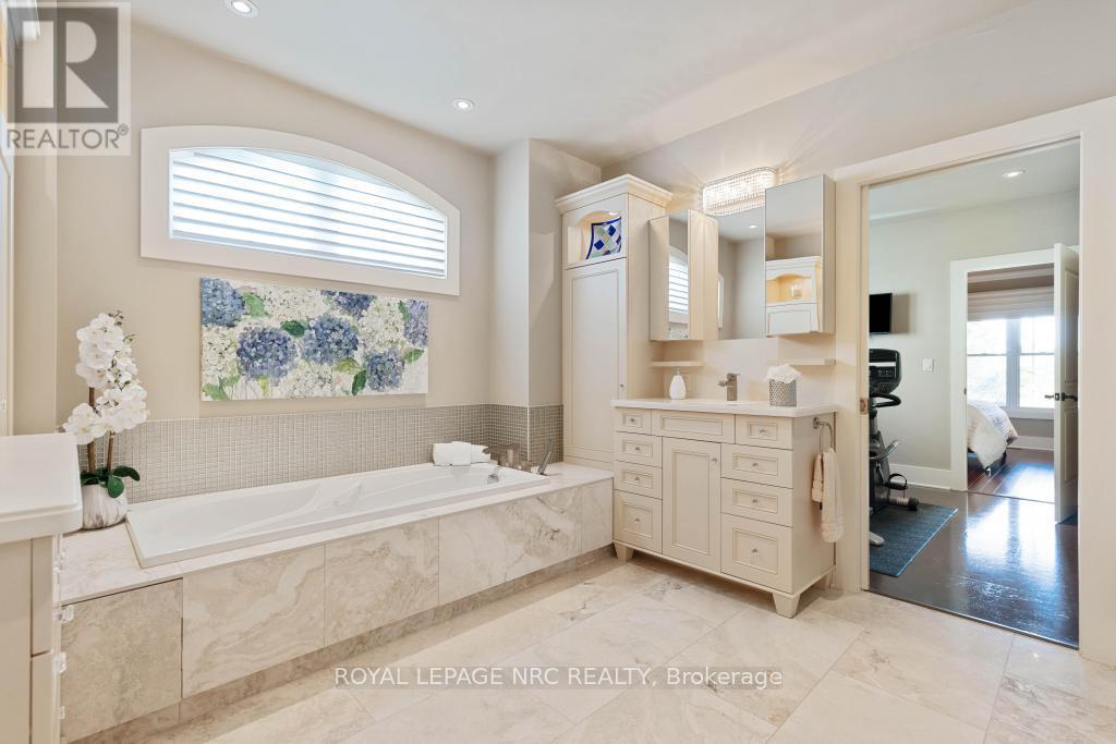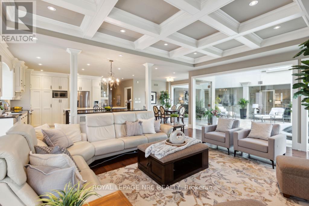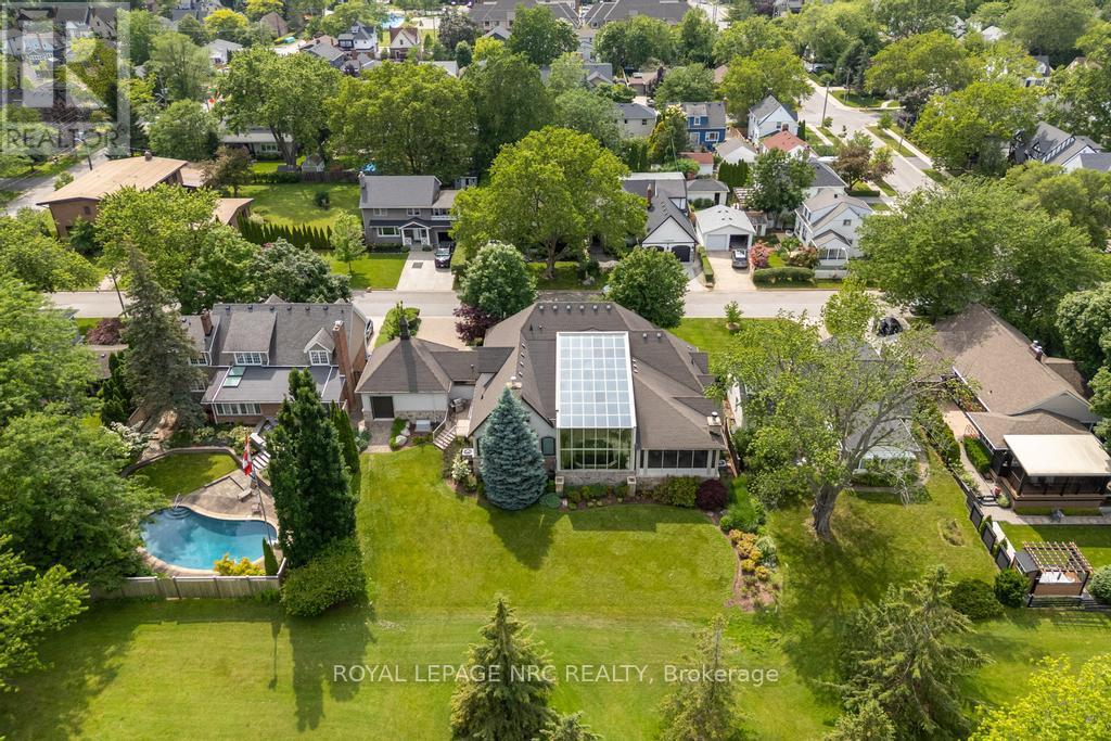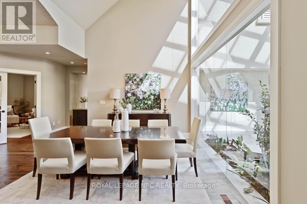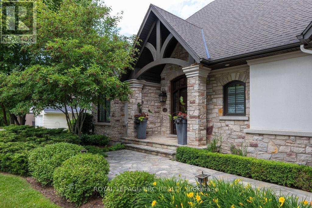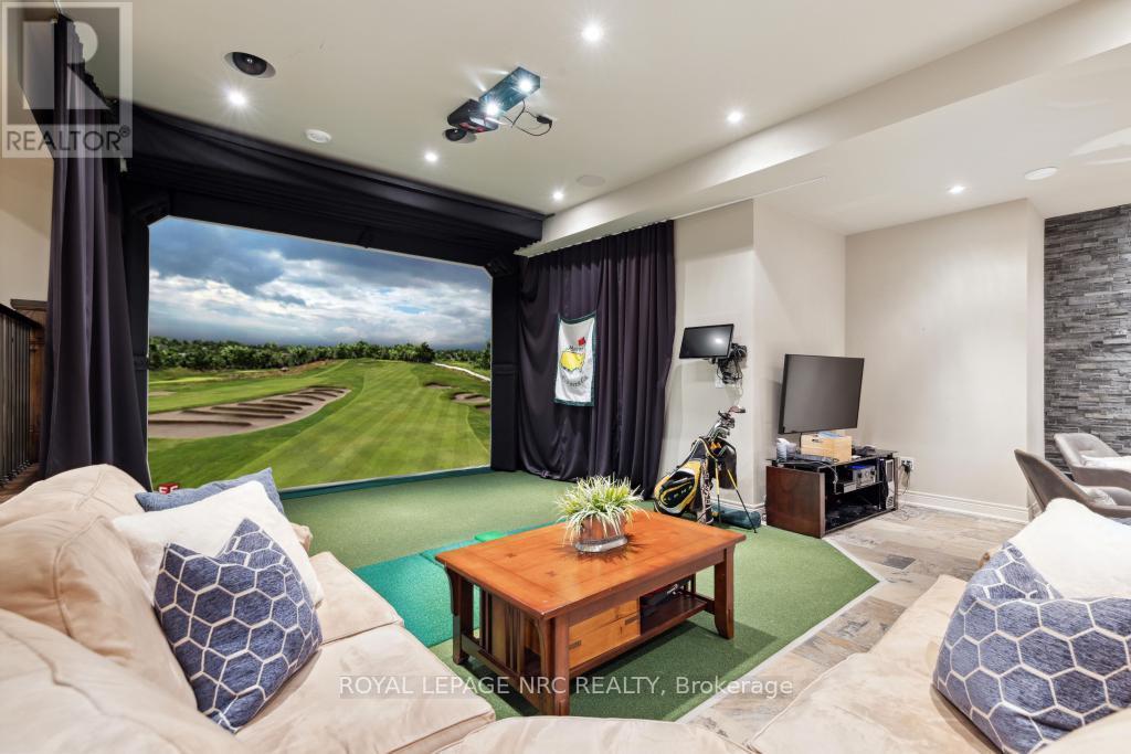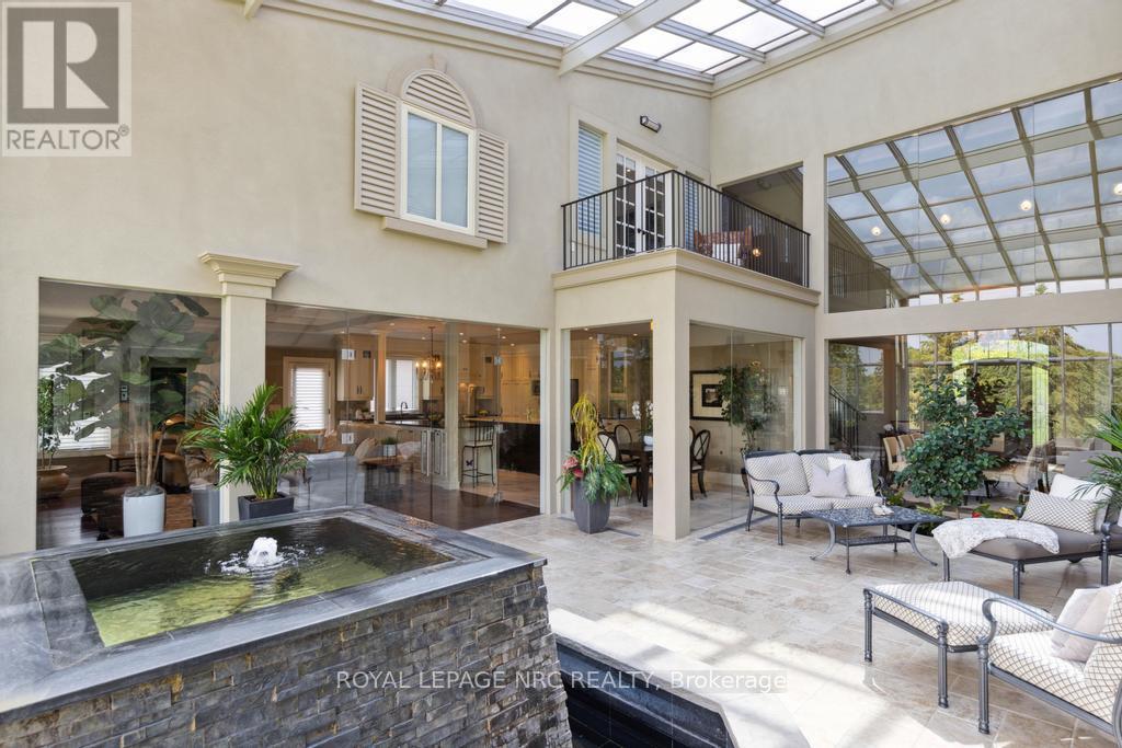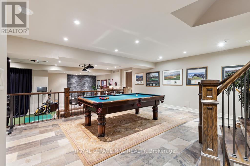 STUNNING EXCLUSIVE GOLF COURSE FAMILY HOME! Beautiful one-of-a-kind 4 bedroom home backing onto the St. Catharines Golf Club by award winning Pym & Cooper, this unique home is truly an architectural & design masterpiece featuring the highest quality craftmanship and impeccable finishes! Features dramatic glass Atrium with 20 ft. ceiling, floor to ceiling windows allowing an abundance of light and gorgeous nature views. The Atrium features heated floors and a custom water feature, perfect for entertaining! (This room could be re-designed as a STUNNING Livingroom) Surrounding the Atrium are large principal rooms including a magnificent foyer with soaring vaulted ceiling, large formal Dining room, Greatroom with Kitchen by Enns, 2 islands, quartz, coffered ceiling, high end appliances, Livingroom with fireplace, custom mantle surround. Main floor den/office, Powder room and Sunroom. Main floor Primary bedroom with huge dressing room, 5 pc spa like ensuite w/steam shower, exercise room. Second floor bedroom with w/i closet, ensuite and Juliet balcony overlooking the Atrium and golf course views. EXCEPTIONAL basement offers hours of family fun w/heated floors thruout, large Games Room, Recroom with Golf Simulator/Theatre room, 2 spacious bedrooms, 2 baths, walk up to 3rd garage. 4th bedroom currently in use as an office. Beautiful stone exterior has huge curb appeal. Triple garage with electric car charger and rear overhead door open to backyard and golf course. Sep. entrance to lower level makes for an IDEAL IN-LAW. Beautiful hardscape and pool size back yard w/breathtaking views! Located in sought after Old Glenridge, walking distance to downtown, Meridian Arena, PAC, Golf Club. Close to excellent schools, Ridley College, Brock U. all major highways, hospital, parks, hiking trails, and wineries. Live your best life in this outstanding home! **NOTE Electric golf cart and Golf Simulator are included! Please see supplemental documents for floor plans. (id:51158)