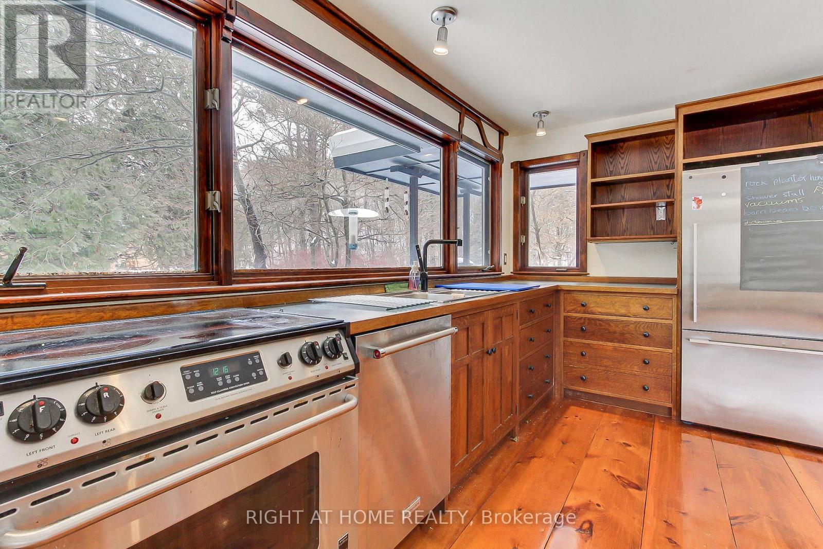 Private 2 acre wooded oasis set on a branch of the Humber River and only minuets from the village of Kleinburg,. Valley Rd is a private lane within the boundaries of the renowned Windrush Properties. If seclusion and nature are on your list, you have found it. Original bungalow remains on the property, can be lived in, renovated or you may wish to apply to rebuild or add on in the Windrush property Style. The home overlooks and fronts on the Humber River and ownership entitles you to partner in a 7 acre co operative consisting of private road and protected valley woodlands. The home received a new roofing membrane in 2024, a detached garage/workshop has its own heat and hydro and is ideal for the hobbyist, car enthusiast or simply keep your vehicle out of the elements. (id:51158)