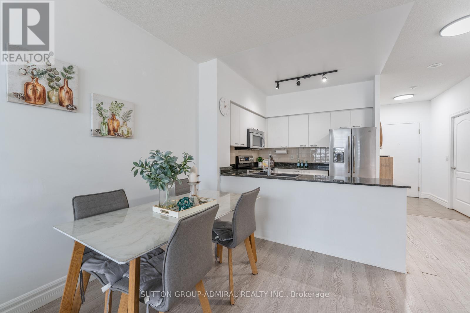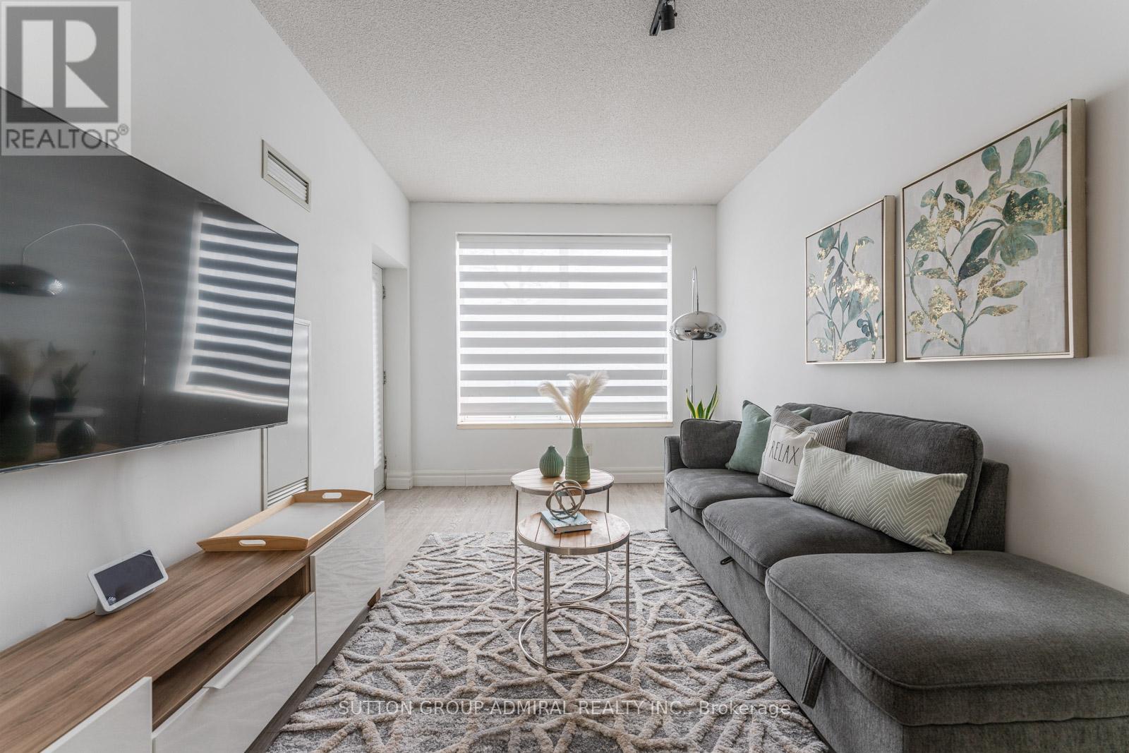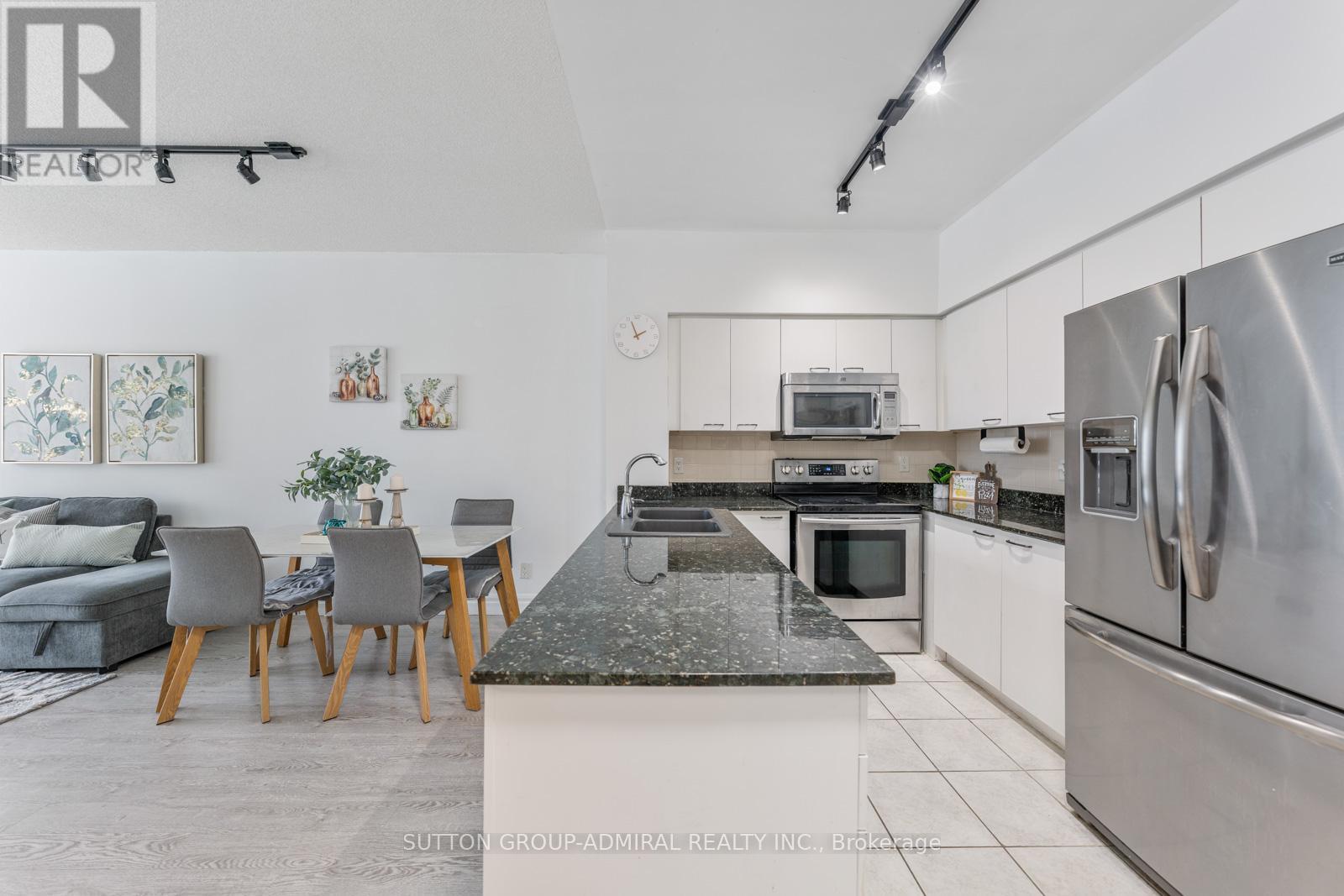Located in the prime area of Markham, 48 Suncrest Blvd #116 is a charming 1-bed + den, 1-bath unit on the first floor, offering a seamless and functional layout. The south-facing balcony fills the space with natural light, complementing the freshly painted white interior. With laminate and tile flooring throughout and modern zebra blinds, this unit is both stylish and practical. The living and dining area creates a welcoming space for entertaining, while the kitchen features sleek appliances, a stylish backsplash, and quartz countertops that double as a breakfast bar. The primary bedroom has a large window and a walk-in closet, while the den with its own window can easily serve as a second bedroom. Additional features include a Nest thermostat and two lockers for extra storage. Residents enjoy top-tier amenities including concierge service, a gym, party/meeting/game room, an indoor pool, hot tub, and sauna. Conveniently located close to Walmart, Costco, and within walking distance to the future T&T Supermarket, this unit also offers easy access to Viva Bus Station, Langstaff GO Train, Hwy 404, parks, schools, restaurants, and shops! (id:51158)