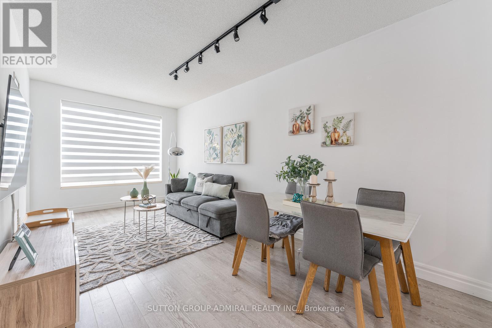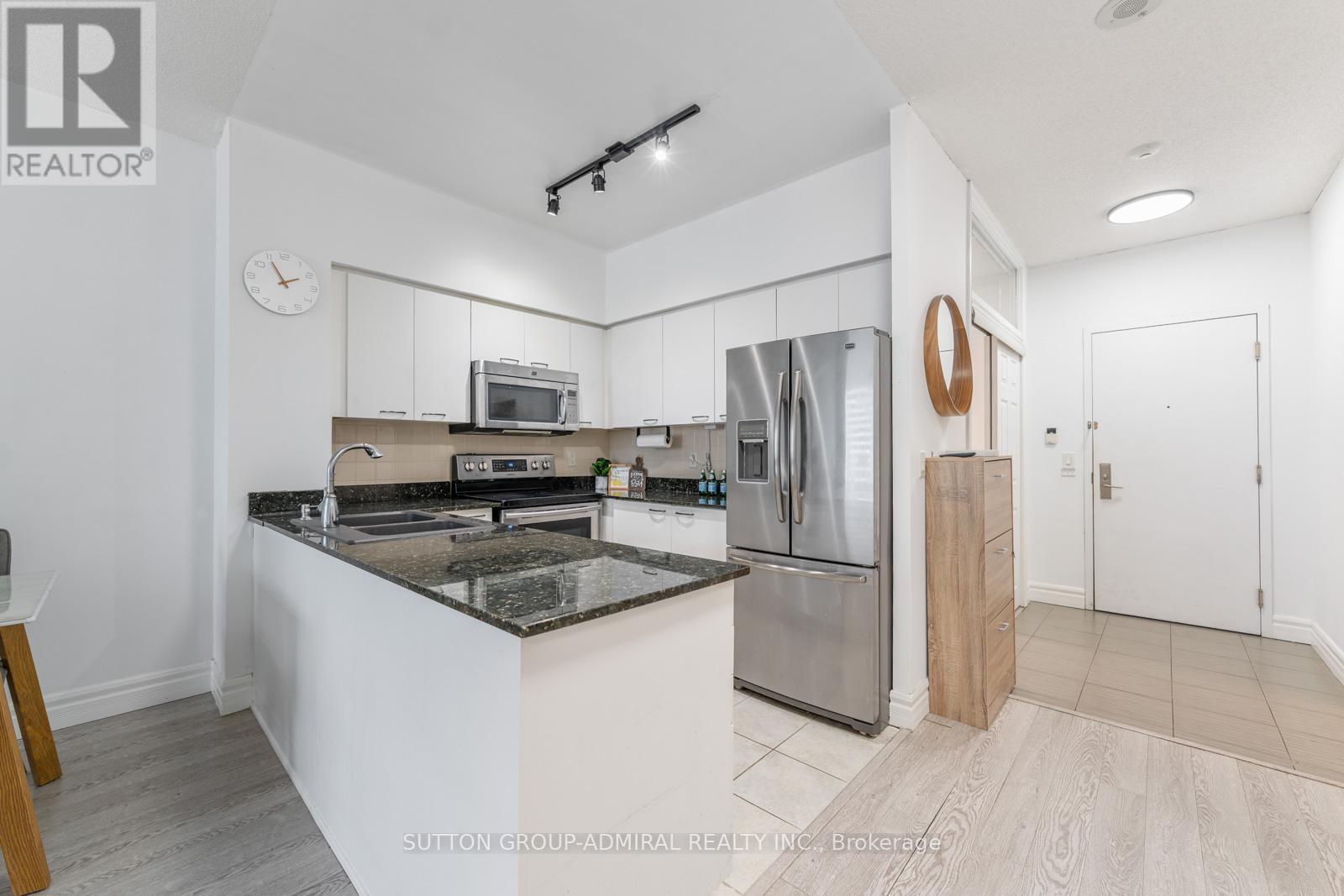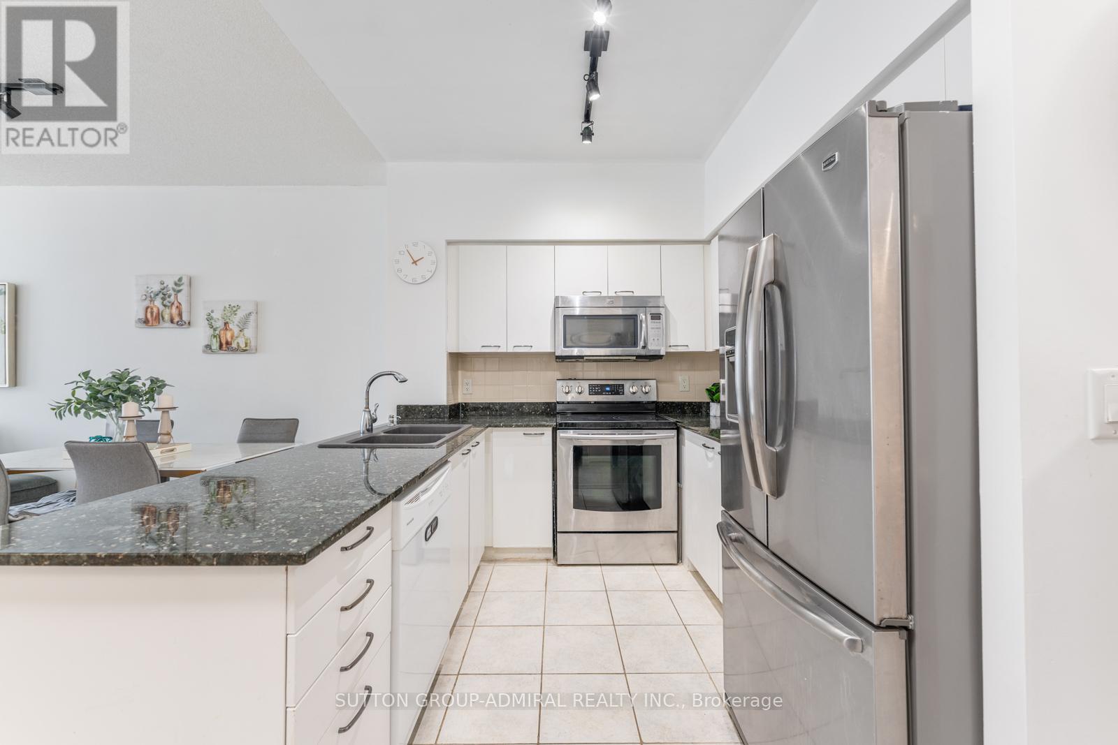 Located in the prime area of Markham, 48 Suncrest Blvd #116 is a charming 1-bed + den, 1-bath unit on the first floor, offering a seamless and functional layout. The south-facing balcony fills the space with natural light, complementing the freshly painted white interior. With laminate and tile flooring throughout and modern zebra blinds, this unit is both stylish and practical. The living and dining area creates a welcoming space for entertaining, while the kitchen features sleek appliances, a stylish backsplash, and quartz countertops that double as a breakfast bar. The primary bedroom has a large window and a walk-in closet, while the den with its own window can easily serve as a second bedroom. Additional features include a Nest thermostat and two lockers for extra storage. Residents enjoy top-tier amenities including concierge service, a gym, party/meeting/game room, an indoor pool, hot tub, and sauna. Conveniently located close to Walmart, Costco, and within walking distance to the future T&T Supermarket, this unit also offers easy access to Viva Bus Station, Langstaff GO Train, Hwy 404, parks, schools, restaurants, and shops! (id:51158)