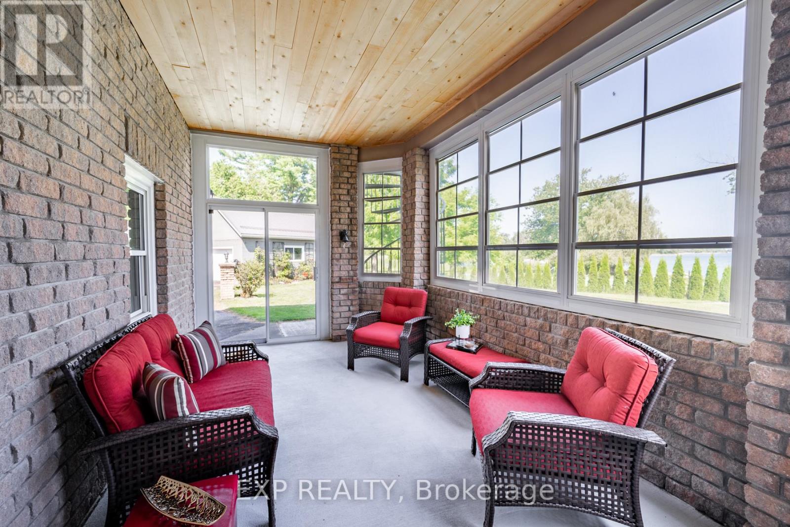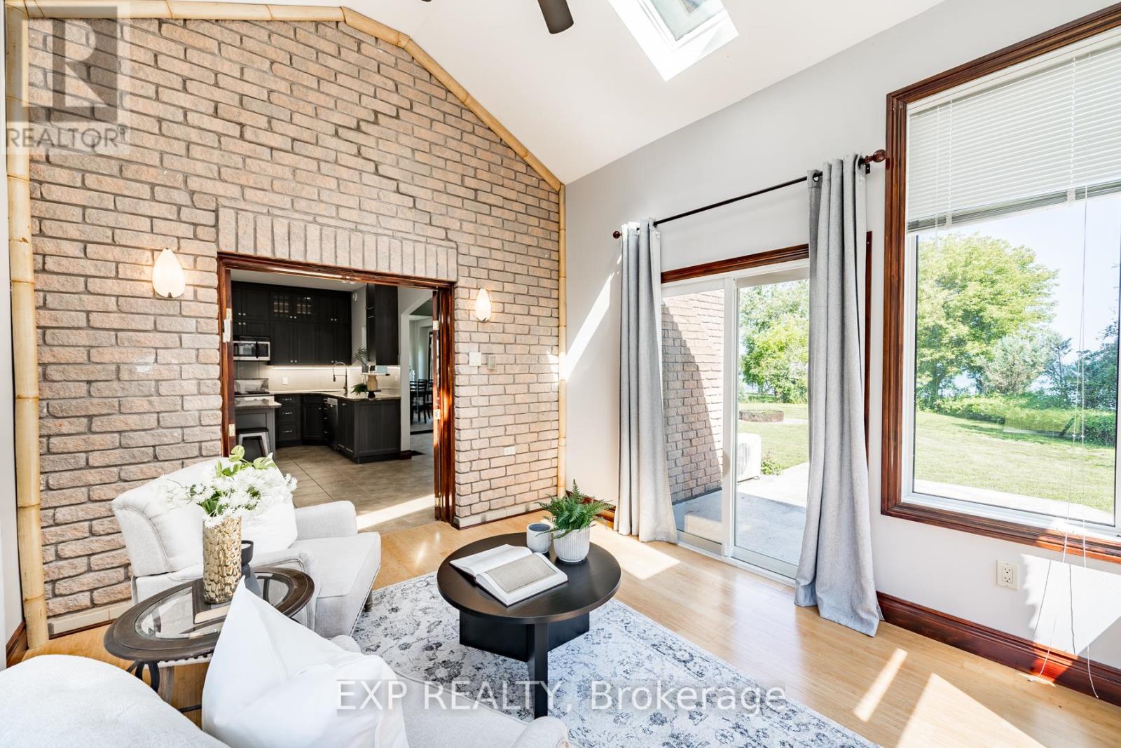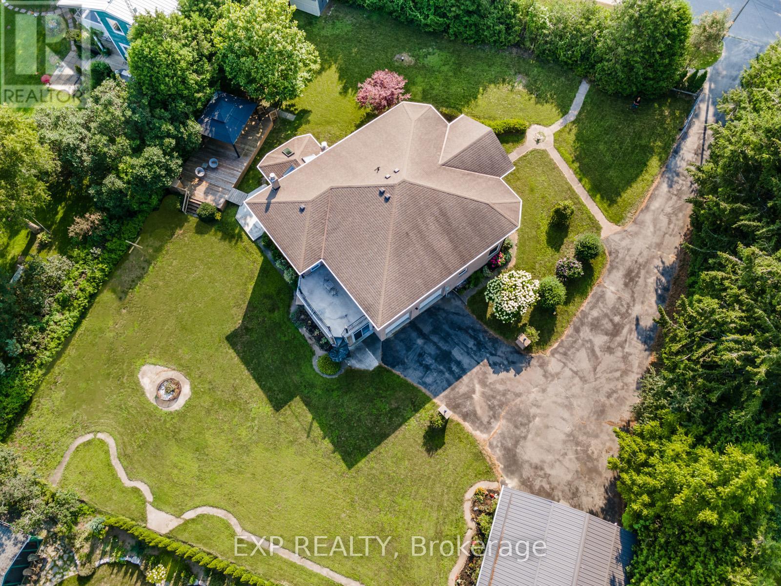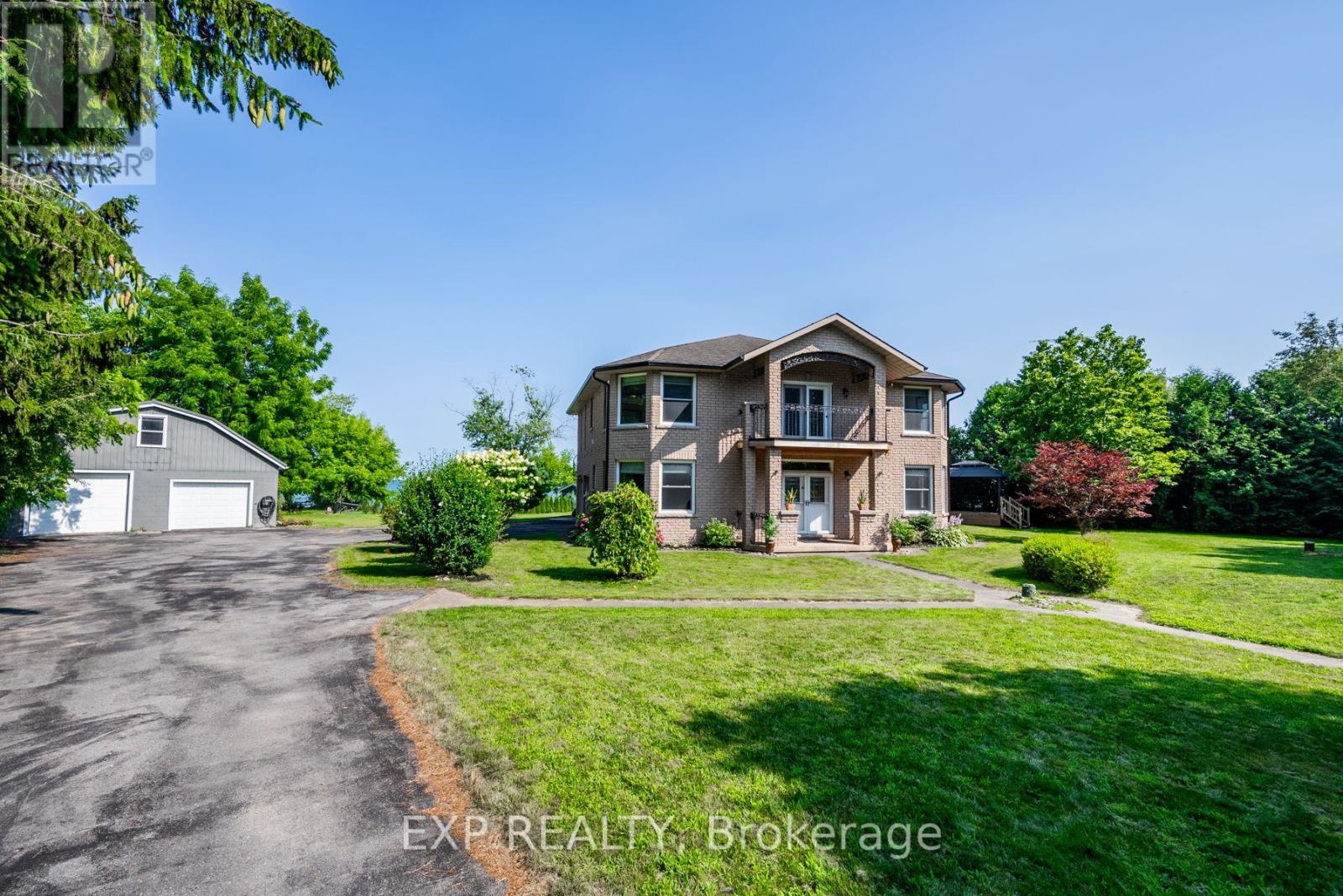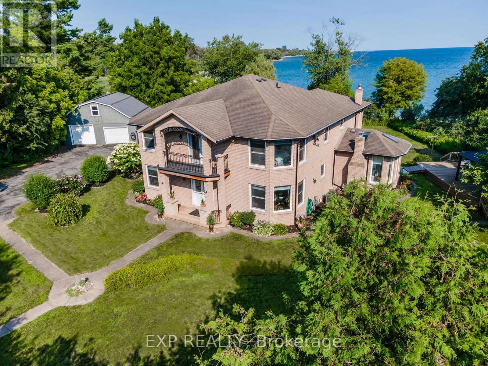 Welcome to this elegant all-brick home offering 4 bedrooms and 3 bathrooms. While not directly on the water, it showcases stunning panoramic views of Lake Ontario, all without the high cost, erosion concerns, or property taxes associated with waterfront living. Step inside to a grand front entry and enjoy the warmth of ceramic and bamboo flooring throughout. The luxurious kitchen features a large island, dual pantries, and stainless steel appliances, flowing effortlessly into the living and dining rooms. A cozy family room with fireplace, bright three-season sunroom, screened porch, and a convenient 2-piece bath make the main floor ideal for both everyday living and entertaining. Upstairs, the primary suite is a peaceful retreat, complete with a private balcony and a spa-inspired 5-piece ensuite, perfect for your morning coffee or unwinding at night. Three additional bedrooms, a stylish 4-piece bath, and a bonus family room with wet bar and balcony access complete the upper level. Outside, enjoy paved parking, an attached two-car garage, and a detached double garage with loft storage ideal for a workshop, home office, guest suite, or future living space. Located just minutes from the 401, this home is perfect for those seeking space, views, and a peaceful lifestyle without sacrificing convenience. (id:51158)