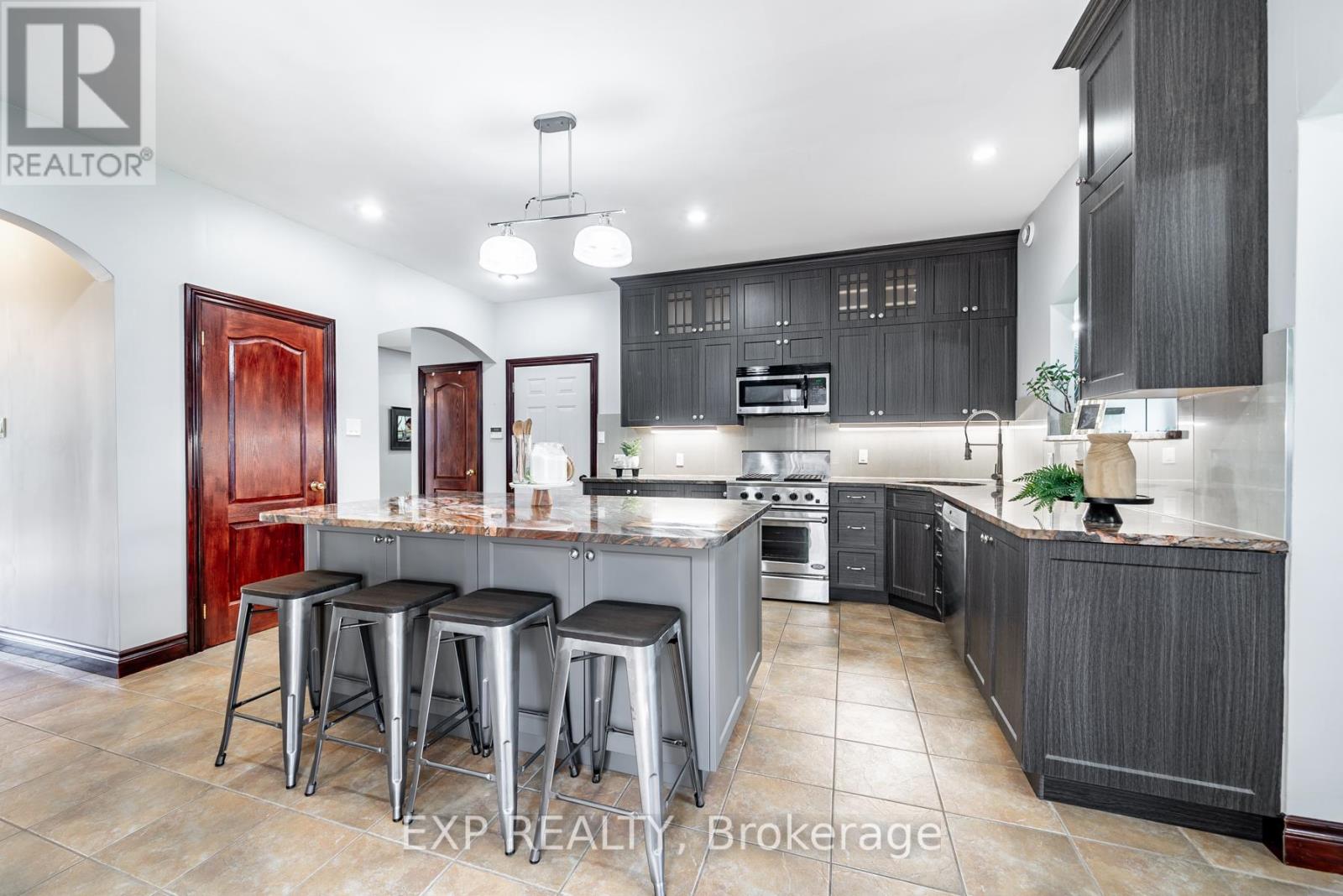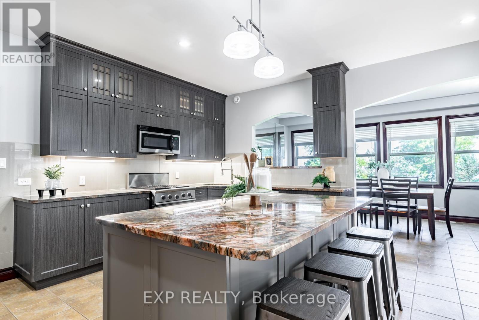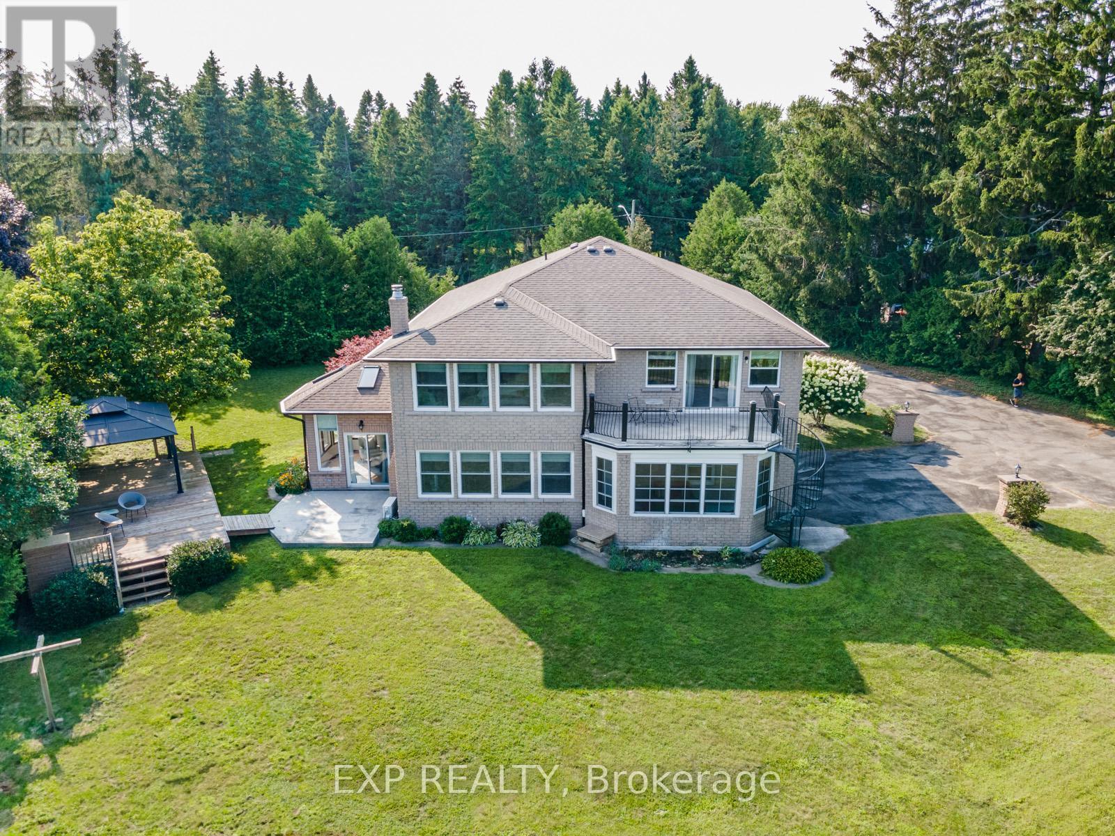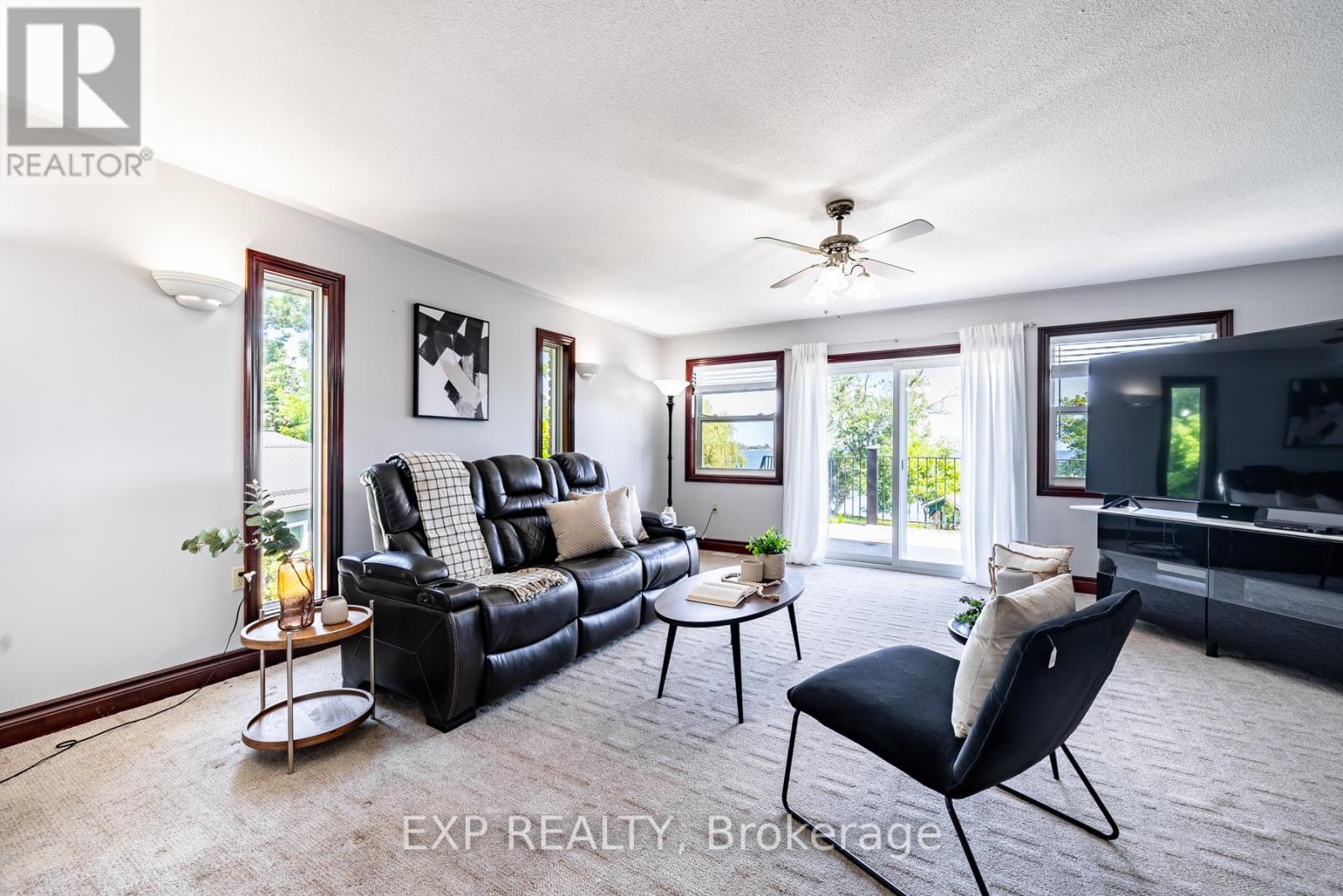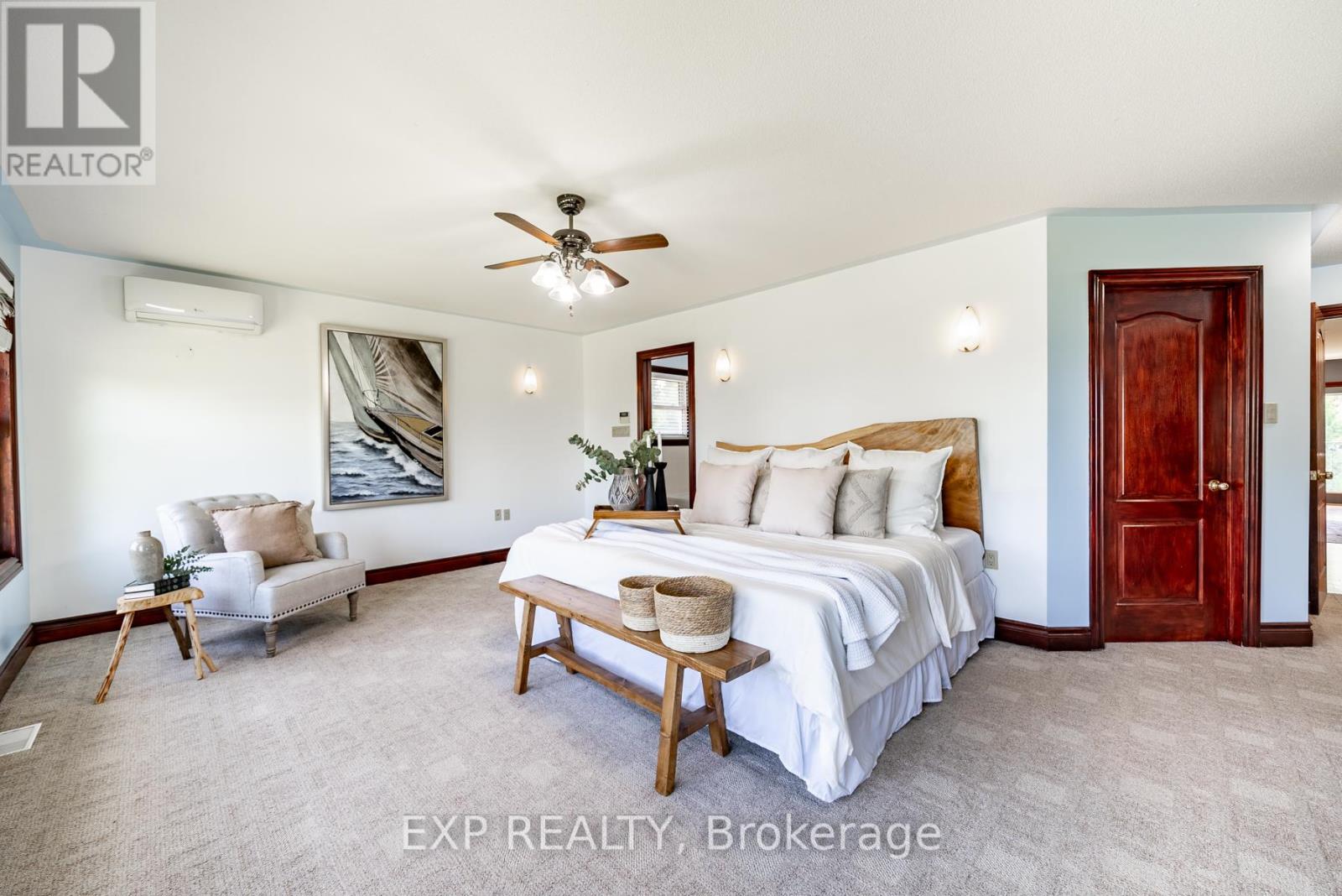 Welcome to this elegant all-brick home offering 4 bedrooms and 3 bathrooms. While not directly on the water, it showcases stunning panoramic views of Lake Ontario, all without the high cost, erosion concerns, or property taxes associated with waterfront living. Step inside to a grand front entry and enjoy the warmth of ceramic and bamboo flooring throughout. The luxurious kitchen features a large island, dual pantries, and stainless steel appliances, flowing effortlessly into the living and dining rooms. A cozy family room with fireplace, bright three-season sunroom, screened porch, and a convenient 2-piece bath make the main floor ideal for both everyday living and entertaining. Upstairs, the primary suite is a peaceful retreat, complete with a private balcony and a spa-inspired 5-piece ensuite, perfect for your morning coffee or unwinding at night. Three additional bedrooms, a stylish 4-piece bath, and a bonus family room with wet bar and balcony access complete the upper level. Outside, enjoy paved parking, an attached two-car garage, and a detached double garage with loft storage ideal for a workshop, home office, guest suite, or future living space. Located just minutes from the 401, this home is perfect for those seeking space, views, and a peaceful lifestyle without sacrificing convenience. (id:51158)