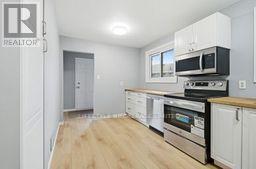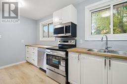Presenting an ideal family residence, this meticulously renovated five-level backsplit is situated in the Eastdale area of North Oshawa on an expansive ,uniquely shaped lot with walk through access to Adelaide via a secondary gate. The entire home features freshly painted neutral walls and new laminate flooring throughout the kitchen and combined living/dining space. The kitchen is outfitted with brand-new cabinetry, countertops, and New S&S appliances. The upper level offers a generous principal bedroom, an additional bedroom, and a contemporary four-piece bathroom. A few steps down from the main floor, two further bedrooms are available along with a newly updated three-piece bathroom and convenient direct access to either the rear or side yard through a man door. The fourth level includes laundry facilities washer & Dryer included, a compact kitchen with cold storage, and a recreation room complemented by another renovated three-piece bathroom. The fifth and final level, located adjacent to the recreation area, provides ample unfinished storage housing the furnace and owned hot water tank-both replaced in 2022-with a ceiling height of 6.6 feet. This flexible space is suitable for use as a fitness area or playroom. The air conditioning unit was also upgraded in 2022. The property offers spacious living areas and a yard that presents a serene, country-like ambiance. Additionally, a 14 x 14 shop with 220-volt wiring is located in the rear yard, catering to hobbyists. This home should check off all the boxes so best to come see. (id:51158)
