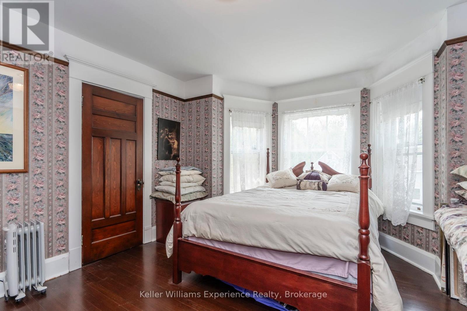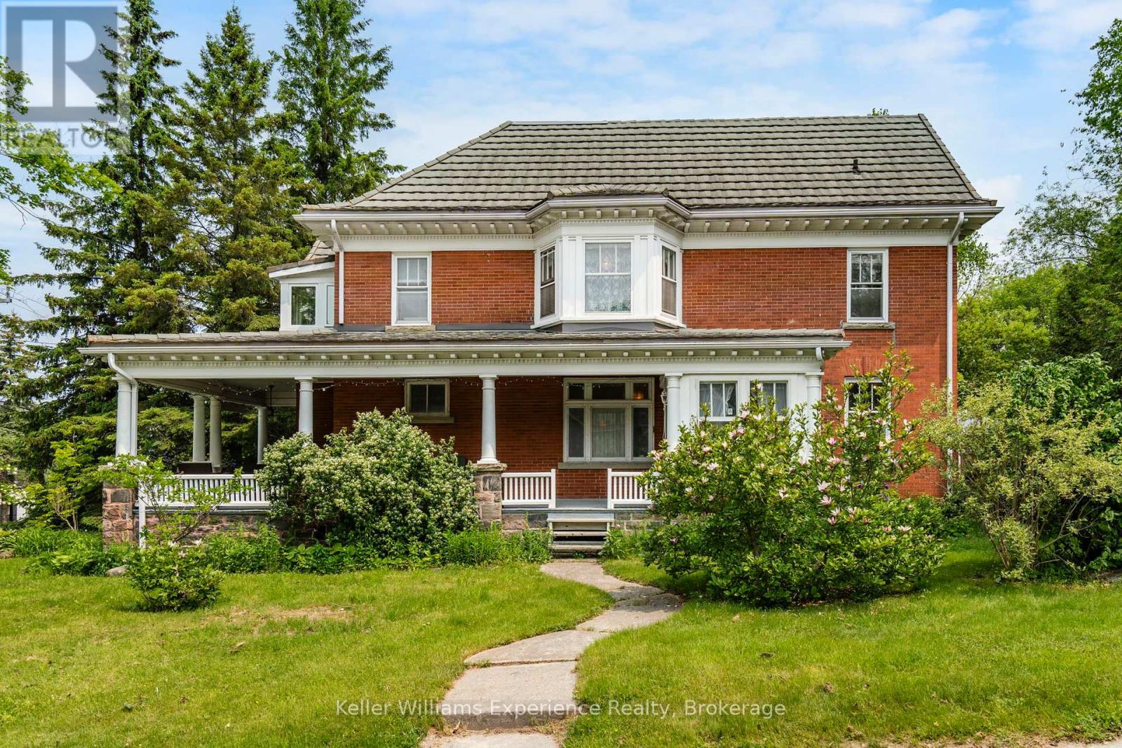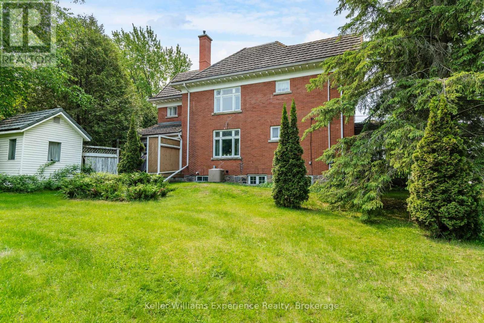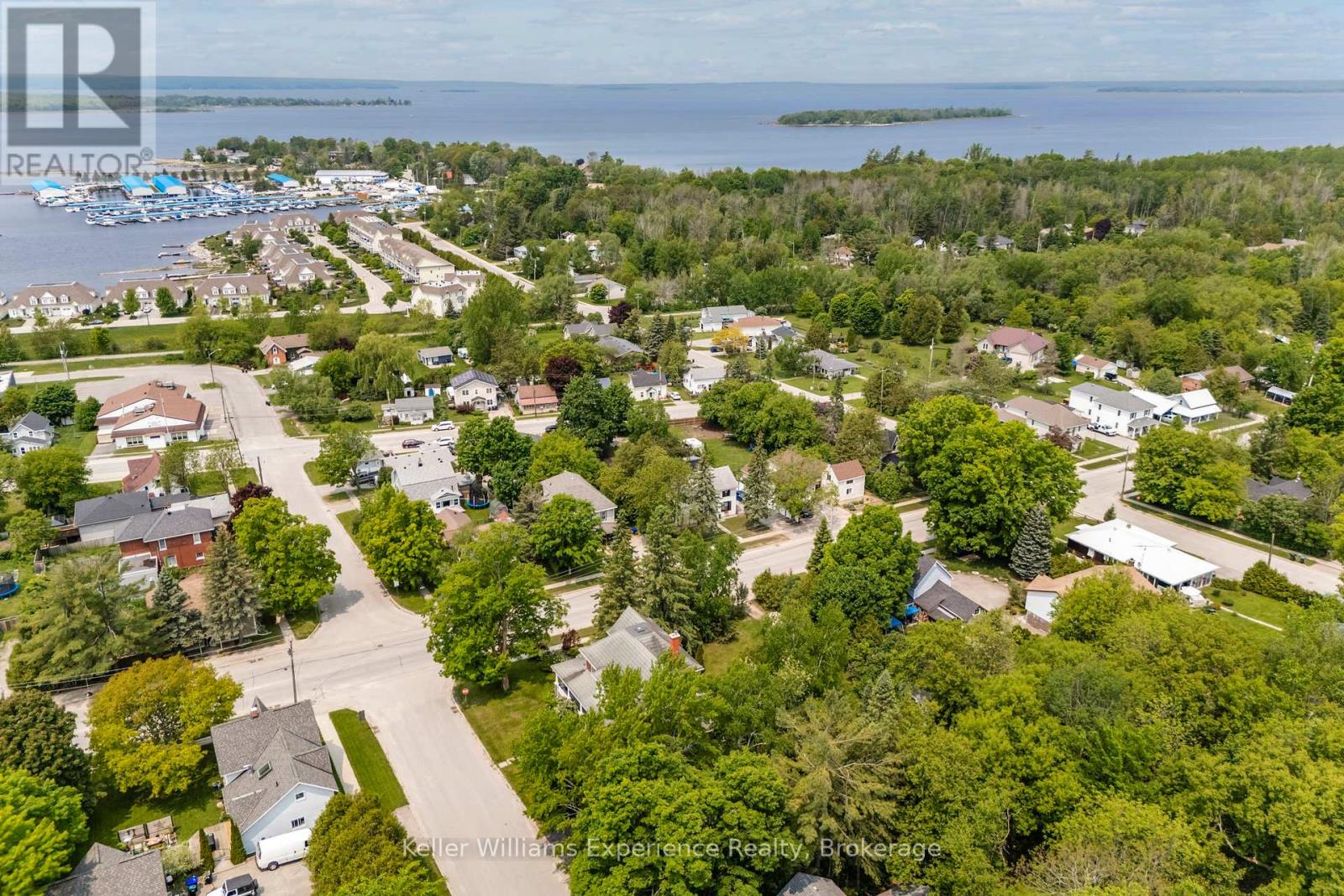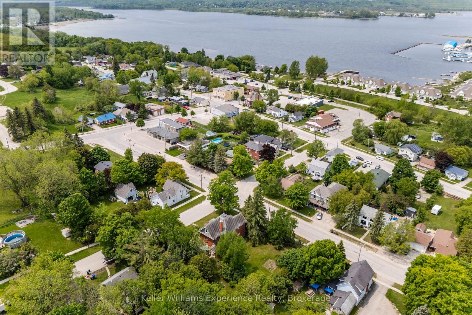 Nestled on two beautifully landscaped corner lots, this timeless 1915 Edwardian home feels like a private sanctuary. From the moment you arrive, the lush gardens, wraparound veranda, and classic architecture invite you in. Inside, you'll find rich woodwork, stained glass windows, pocket doors, a grand staircase, and a maid's staircase to the kitchen - all hallmarks of a bygone era brought to life with thoughtful, modern updates. The updated kitchen and bathrooms feature quartz countertops and tasteful upgrades that blend seamlessly with the home's historic character. Upstairs, all bedrooms boast walk-in closets with lighting, and the second-storey sunroom offers peaceful lake views and unforgettable sunsets. Venture up one more level and discover a large third-floor attic with potential to create a spectacular loft or studio space. The custom-built garage with a stylish loft provides extra living space or a dream workspace! Cozy up through the seasons in your outdoor wood fire sauna and enjoy the durability of quality metal roofing on the house, garage, and sauna. Located just a 5-minute walk to Georgian Bay and local amenities, and you're just 25 minutes from Orillia and 40 minutes from Barrie. This rare gem is truly a place to be experienced. (id:51158)
