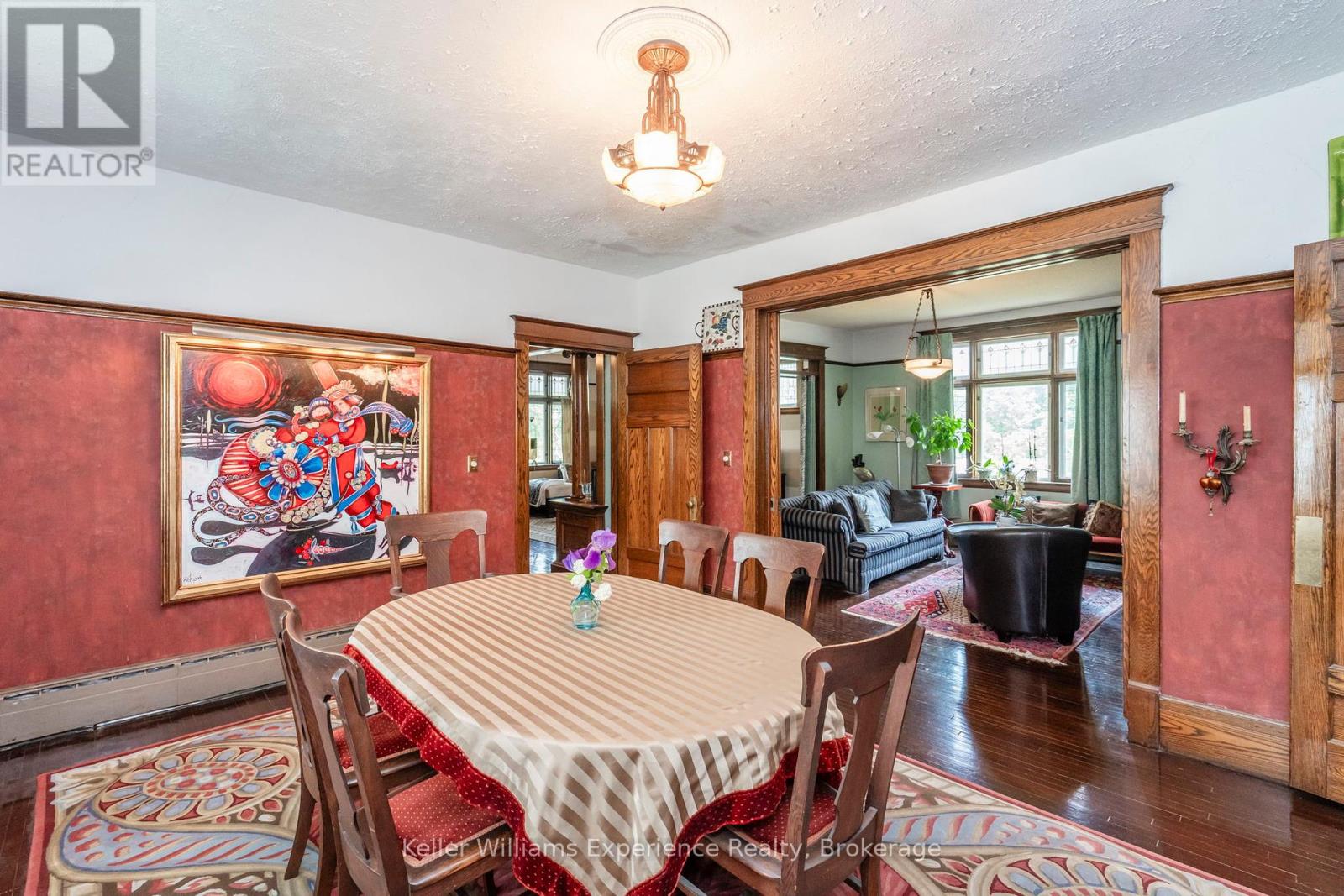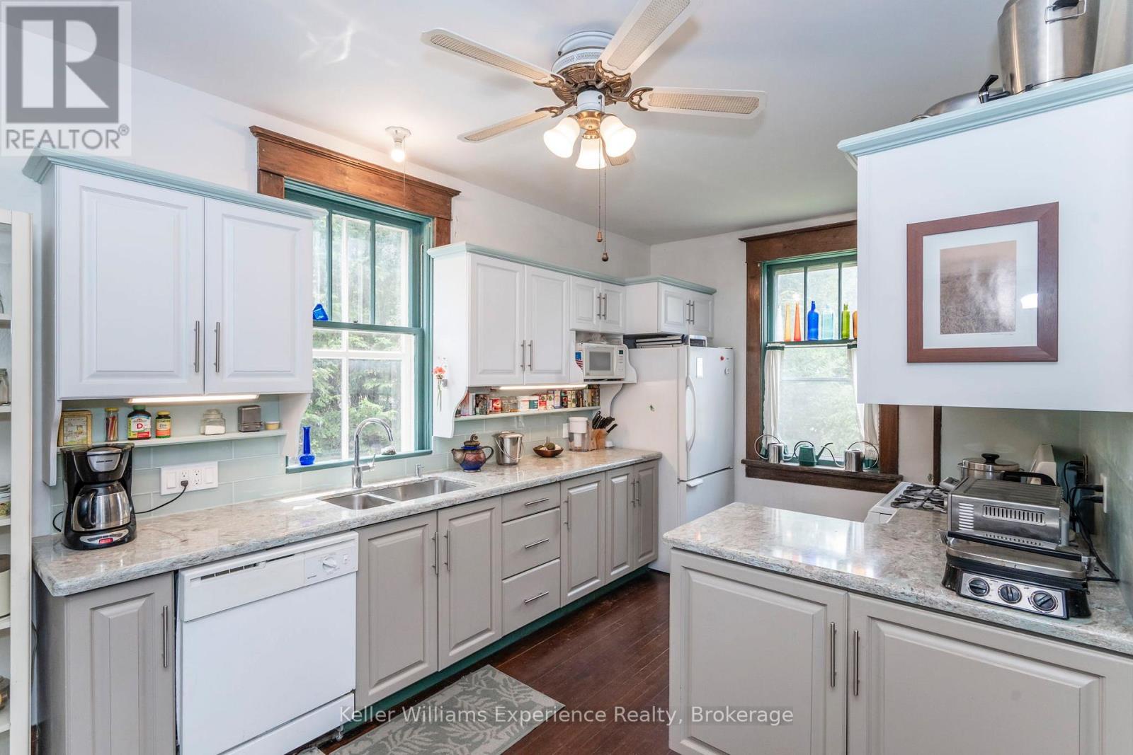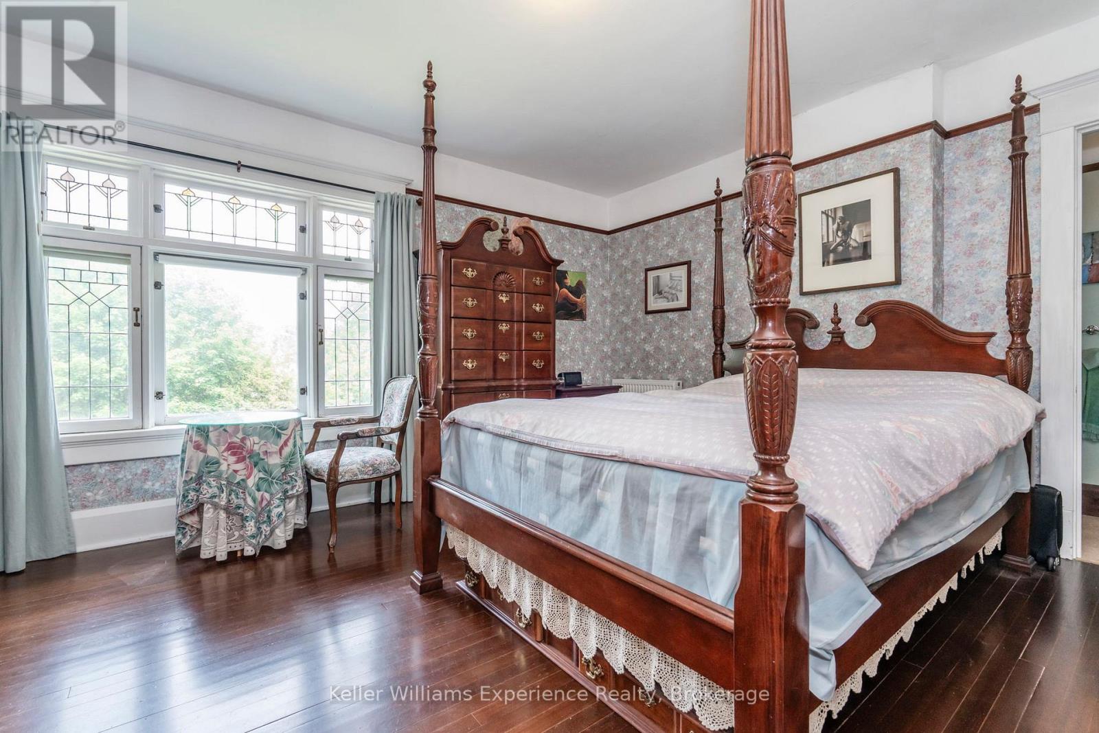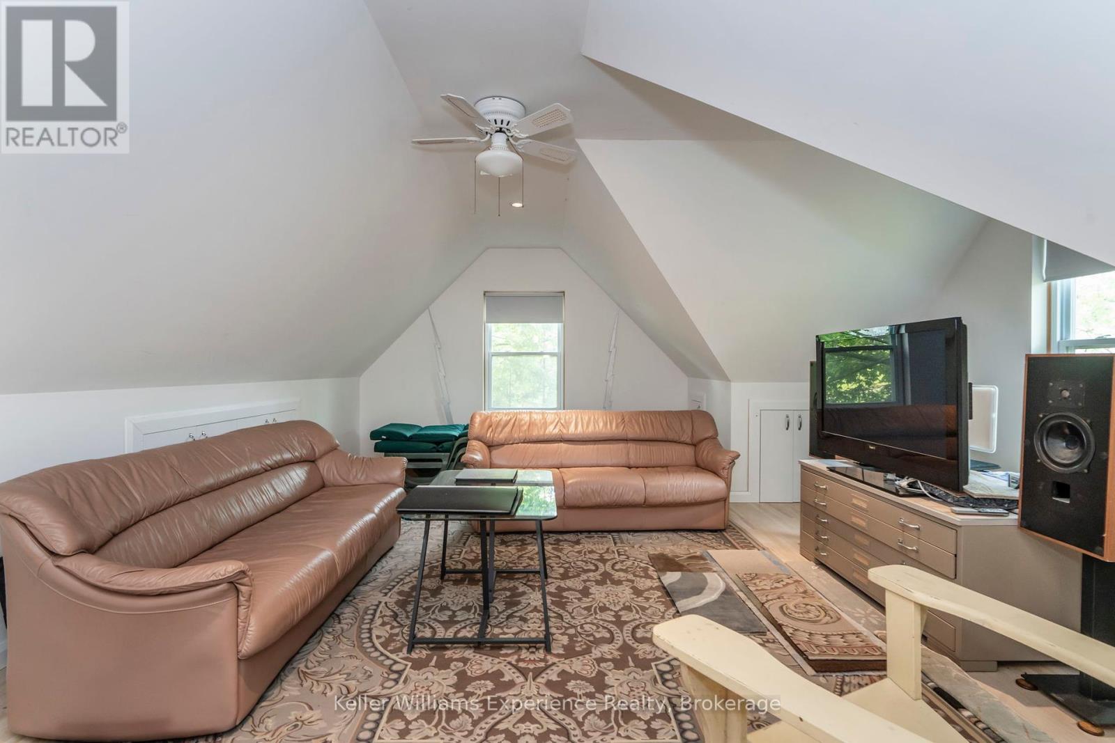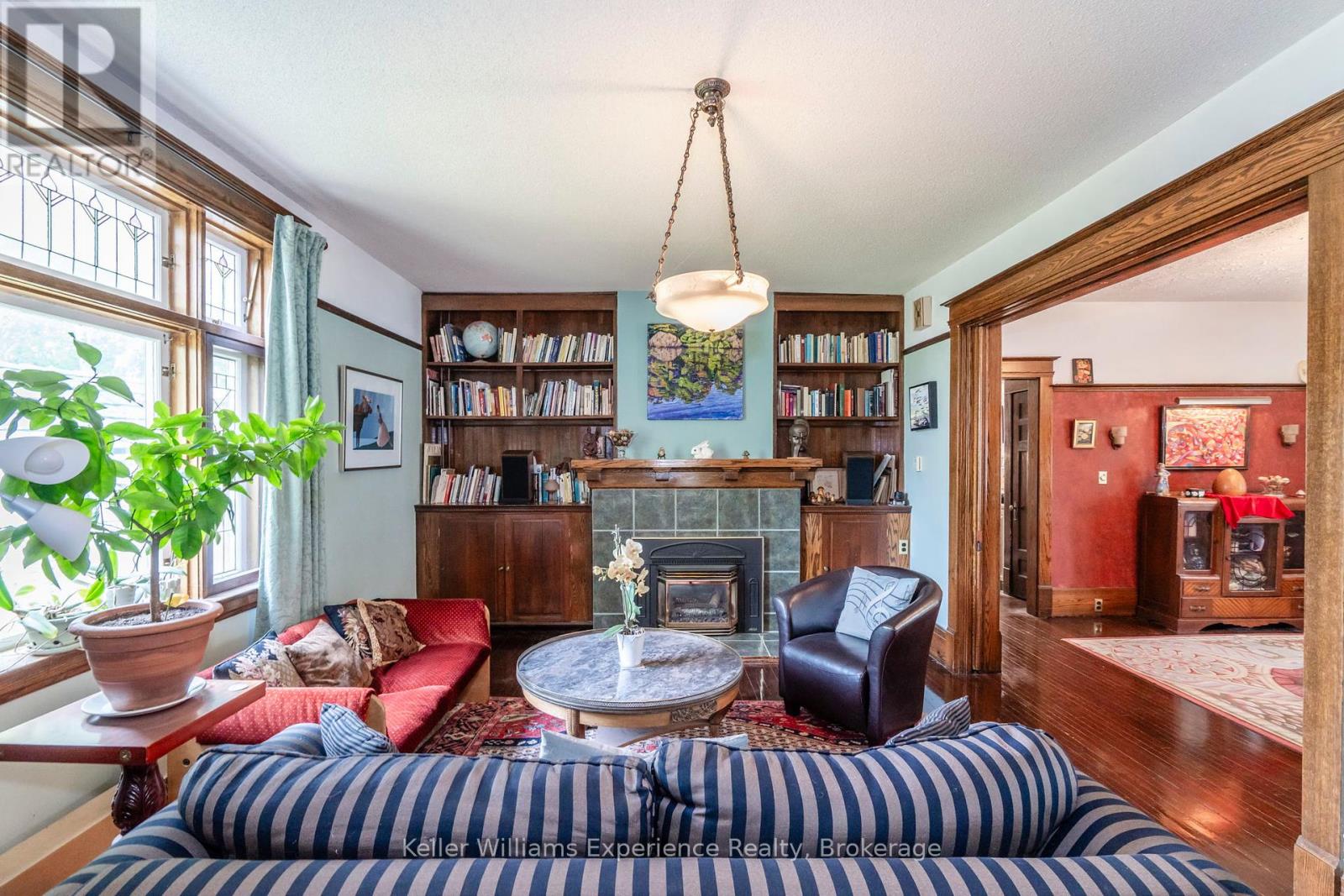 Nestled on two beautifully landscaped corner lots, this timeless 1915 Edwardian home feels like a private sanctuary. From the moment you arrive, the lush gardens, wraparound veranda, and classic architecture invite you in. Inside, you'll find rich woodwork, stained glass windows, pocket doors, a grand staircase, and a maid's staircase to the kitchen - all hallmarks of a bygone era brought to life with thoughtful, modern updates. The updated kitchen and bathrooms feature quartz countertops and tasteful upgrades that blend seamlessly with the home's historic character. Upstairs, all bedrooms boast walk-in closets with lighting, and the second-storey sunroom offers peaceful lake views and unforgettable sunsets. Venture up one more level and discover a large third-floor attic with potential to create a spectacular loft or studio space. The custom-built garage with a stylish loft provides extra living space or a dream workspace! Cozy up through the seasons in your outdoor wood fire sauna and enjoy the durability of quality metal roofing on the house, garage, and sauna. Located just a 5-minute walk to Georgian Bay and local amenities, and you're just 25 minutes from Orillia and 40 minutes from Barrie. This rare gem is truly a place to be experienced. (id:51158)
