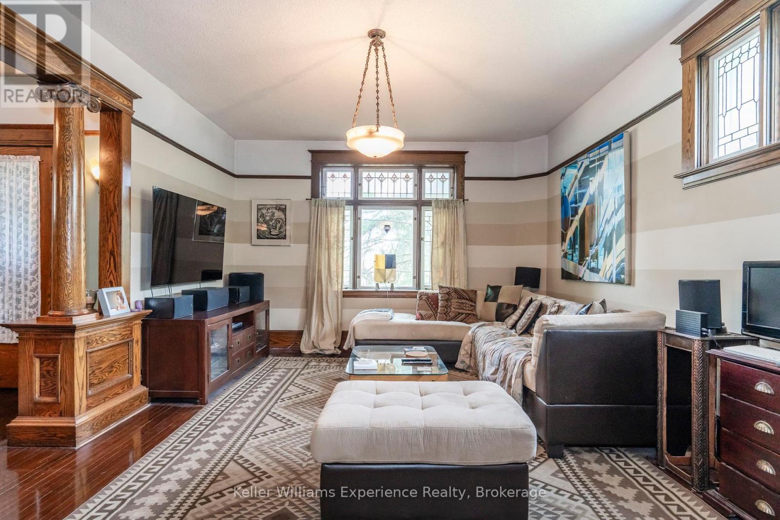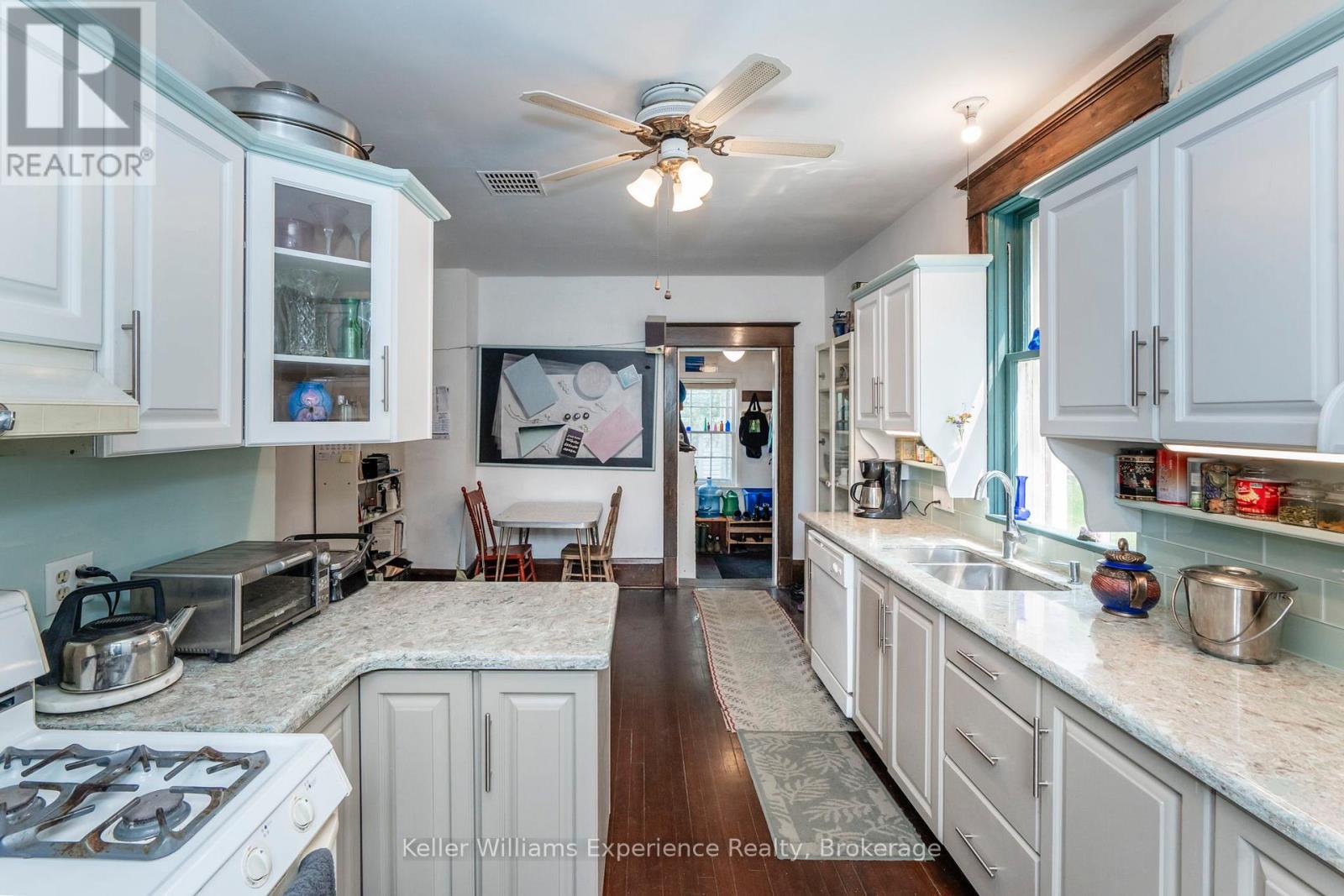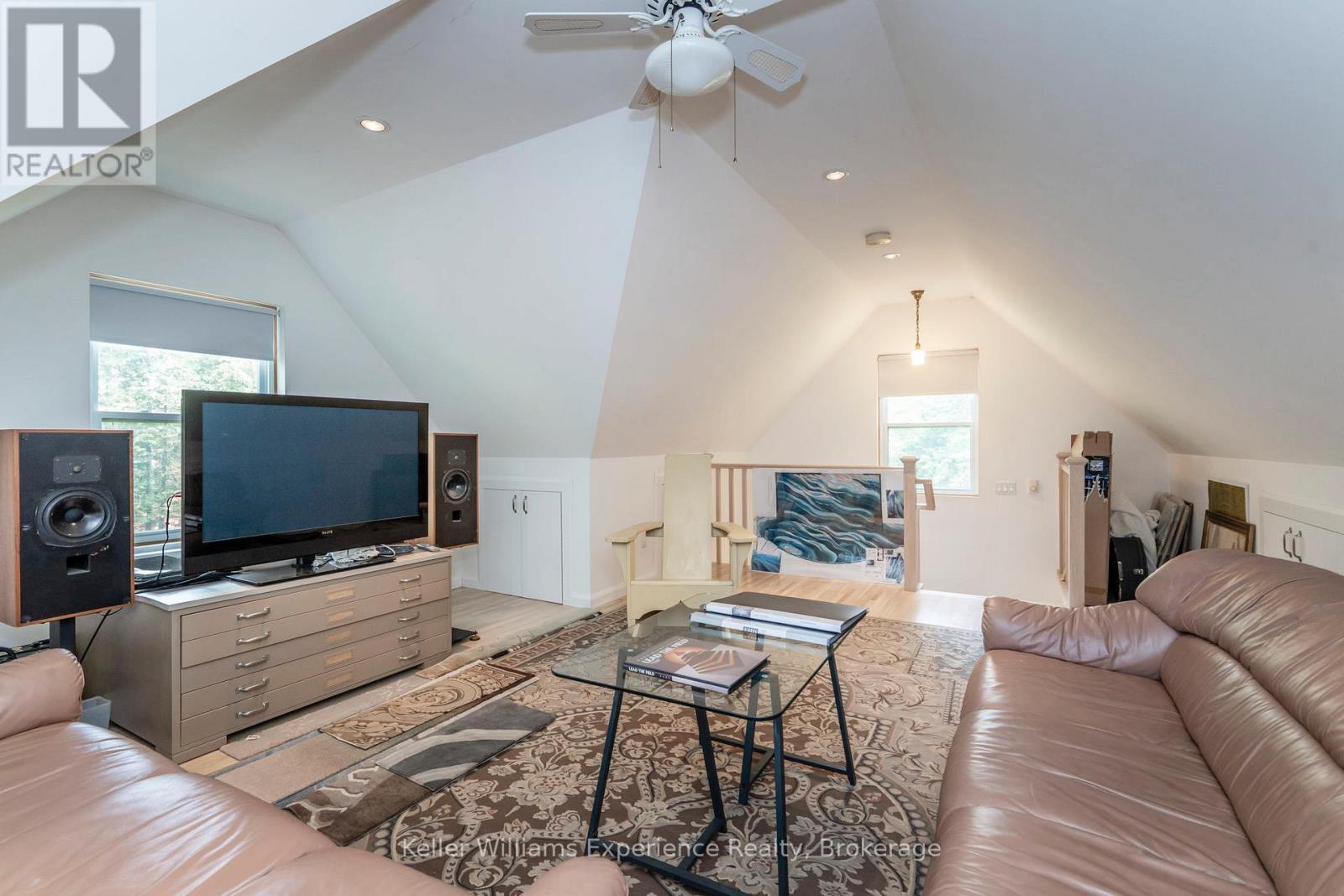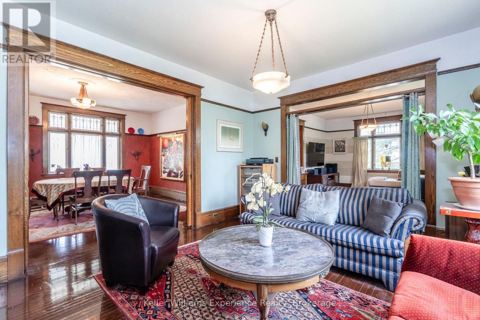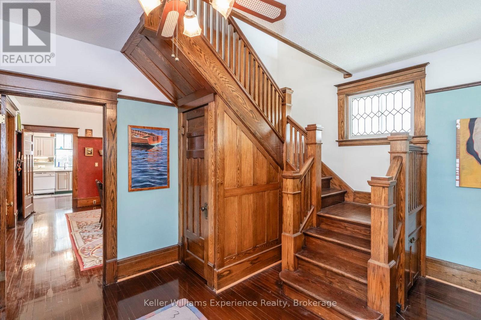 Nestled on two beautifully landscaped corner lots, this timeless 1915 Edwardian home feels like a private sanctuary. From the moment you arrive, the lush gardens, wraparound veranda, and classic architecture invite you in. Inside, you'll find rich woodwork, stained glass windows, pocket doors, a grand staircase, and a maid's staircase to the kitchen - all hallmarks of a bygone era brought to life with thoughtful, modern updates. The updated kitchen and bathrooms feature quartz countertops and tasteful upgrades that blend seamlessly with the home's historic character. Upstairs, all bedrooms boast walk-in closets with lighting, and the second-storey sunroom offers peaceful lake views and unforgettable sunsets. Venture up one more level and discover a large third-floor attic with potential to create a spectacular loft or studio space. The custom-built garage with a stylish loft provides extra living space or a dream workspace! Cozy up through the seasons in your outdoor wood fire sauna and enjoy the durability of quality metal roofing on the house, garage, and sauna. Located just a 5-minute walk to Georgian Bay and local amenities, and you're just 25 minutes from Orillia and 40 minutes from Barrie. This rare gem is truly a place to be experienced. (id:51158)