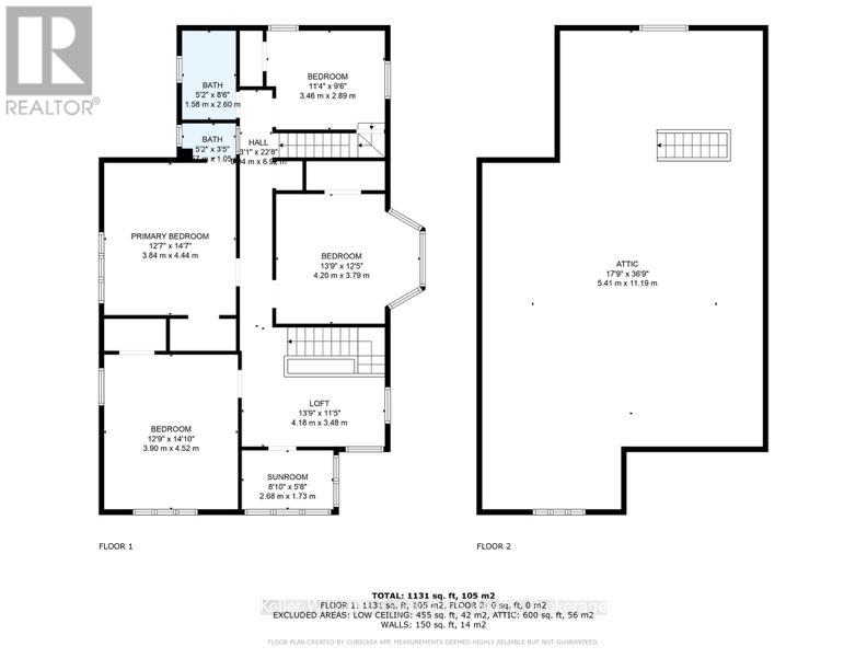 Second Level | Primary Bedroom | 4.44 m | 3.84 m | 4.44 m x 3.84 m |