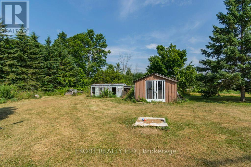 BRAND NEW METAL ROOF, PRIMERED & NEW FLOOR THROUGHOUT! If you're handy or a renovator this house keeps getting better and better before closing to take some work off of you yet has a lot of potential to be a great home and for you to build equity! This 5 bedroom 1 bath farm house is looking for new life! The main floor has potential to be opened up (main floor bedroom could be a dining space/office or possibly opened into the main living area as well) and add your choice of paint over the freshly primed walls and you could update or paint the cabinets. . The bathroom is a great size to refinish and with 4 bedrooms on the 2nd floor, the bedroom off the primary could be turned into an on-suite. The main floor laundry offers a lot of space that could be utilized for storage as well as the attached double car garage. There are 3 out buildings on the property, one was used for yard supplies and equipment, one housed chickens, and one could be turned into a guest bunkie or a she/he shed/play house. Great sized yard, very manageable space and country views, nicely located between Belleville/Trenton/Picton and all the county has to offer! (id:51158)