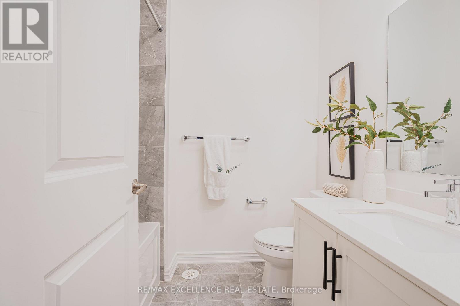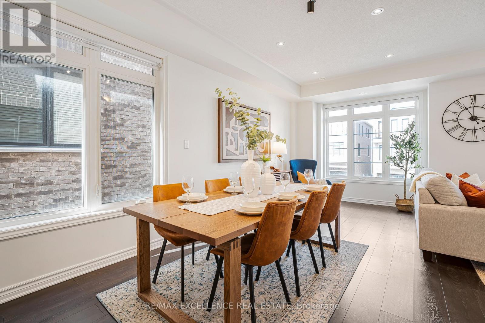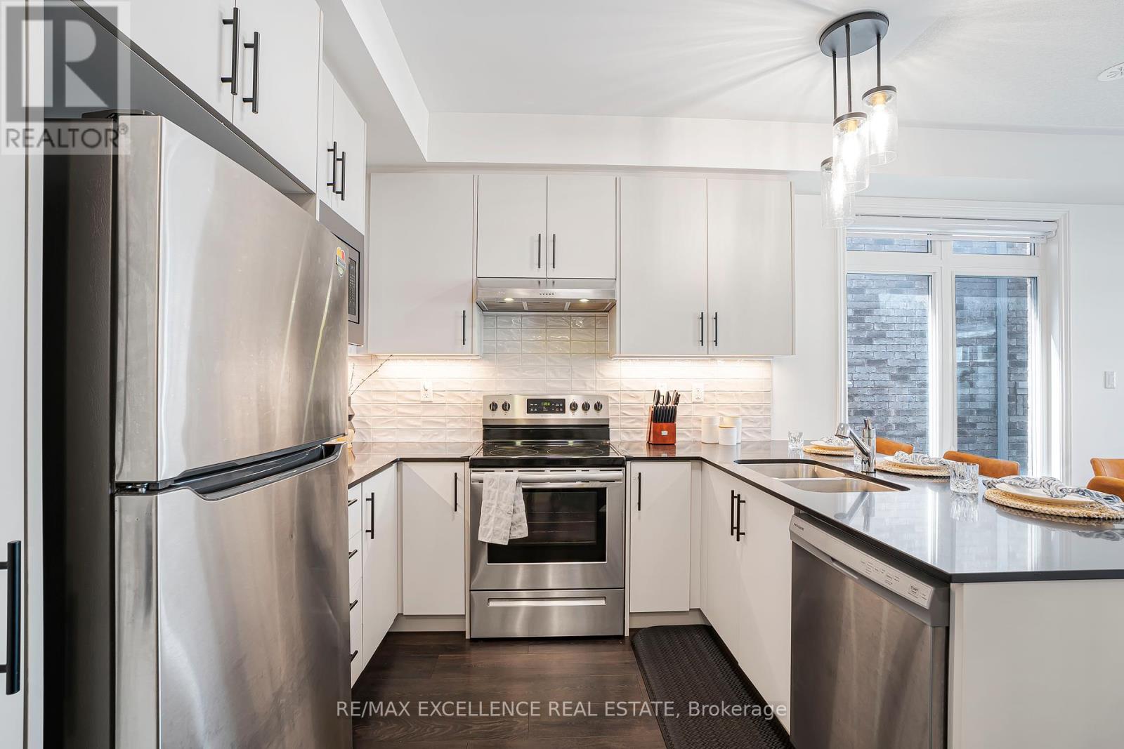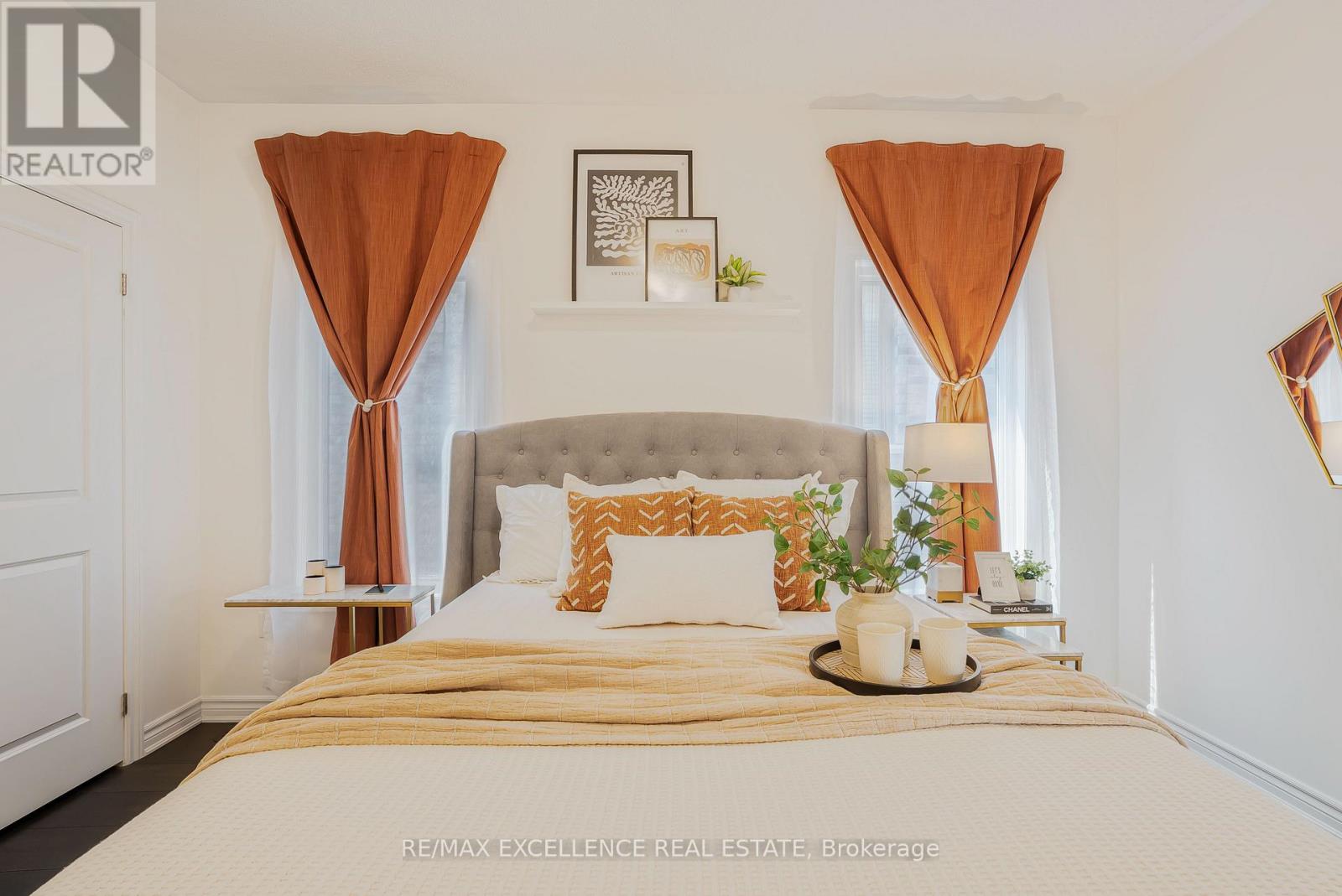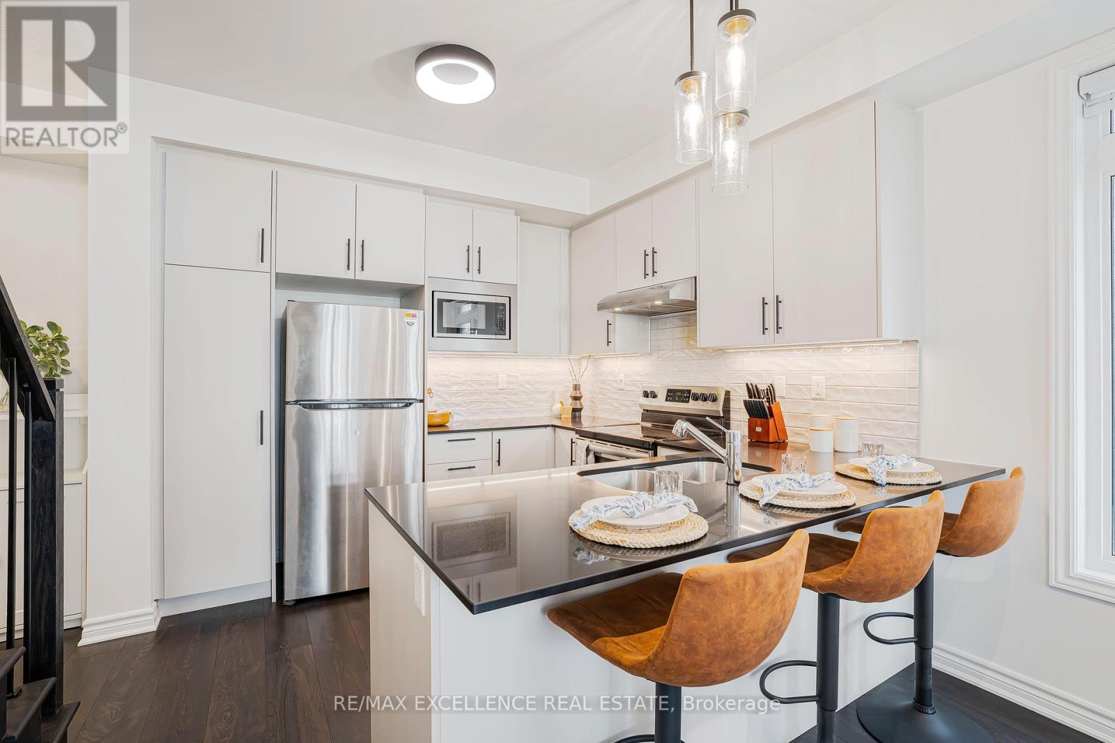 Beautifully maintained 3-storey end-unit townhouse in the heart of Milton! This spacious 3-bedoom home features an open concept on main floor, quatrz countertops, a bright Great Room, modern Kitchen, and walk-out to a private balcony. Enjoy main-floor laundry, added natural light, and extra privacy. Upstairs offers 3 generous bedrooms, including a primary suite with his-and-her closets and a 4-pc ensuite. Lower level includes inside garage access, foyer, and covered porch. Located in a family friendly neighborhood, close to parks, schools, shopping & transit. Move-in ready! (id:51158)