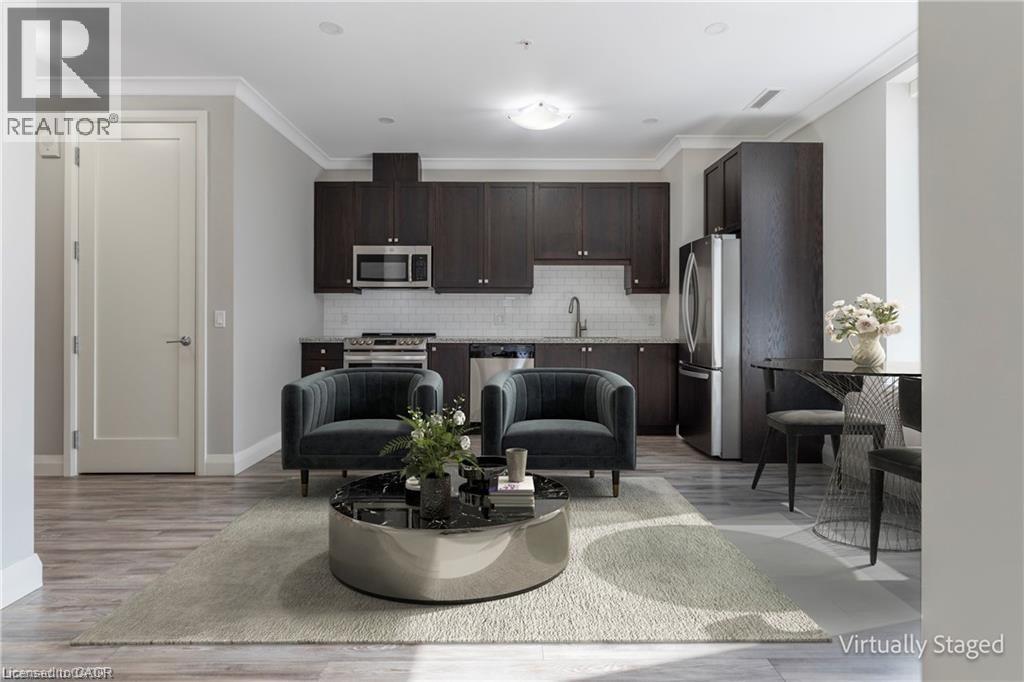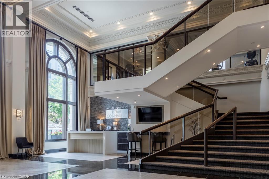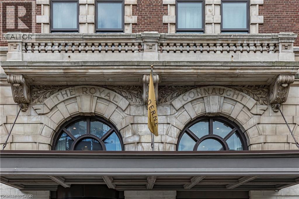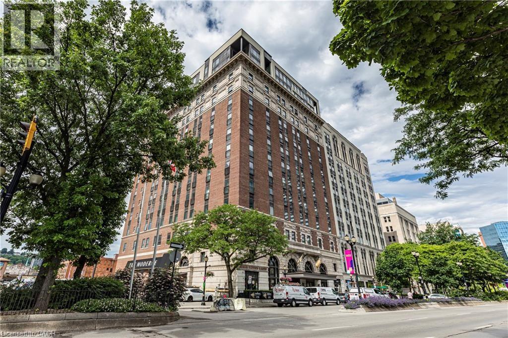 Discover urban living at its finest in this beautiful 1-bedroom, 1-bathroom condo located in the heart of downtown Hamilton. Nestled within the historic Royal Connaught, this reside inside to find an open concept living area bathed in natural light, and a spacious layout seamlessly integrates the living, dining, and kitchen areas. The modern kitchen features sleek countertops, ample cabinetry, and S/S appliances. The bedroom offers a peaceful retreat, complete with a walk-in closet space and escarpment views, while the well-appointed bathroom features stylish fixtures and finishes. For additional convenience, there is in-suite laundry, a dedicated parking space, and locker for additional storage. Located in the original Waldorf Hotel (1914), you'll appreciate the architectural details and the sense of history that permeates this unique residence. Living in downtown Hamilton means you’re just steps away from an array of amenities, including trendy restaurants, chic cafes, boutique shops, and cultural attractions. Enjoy easy access to public transit, parks, and the waterfront, making it an ideal location for both work and play. Don’t miss this rare opportunity to live in a piece of Hamilton’s history. (id:51158)