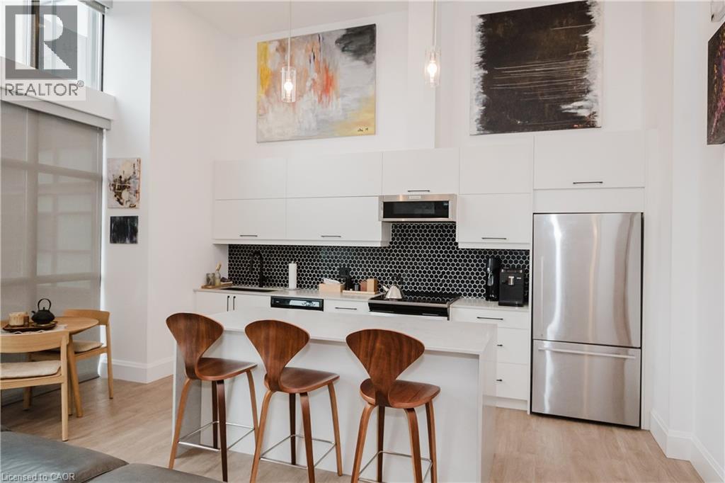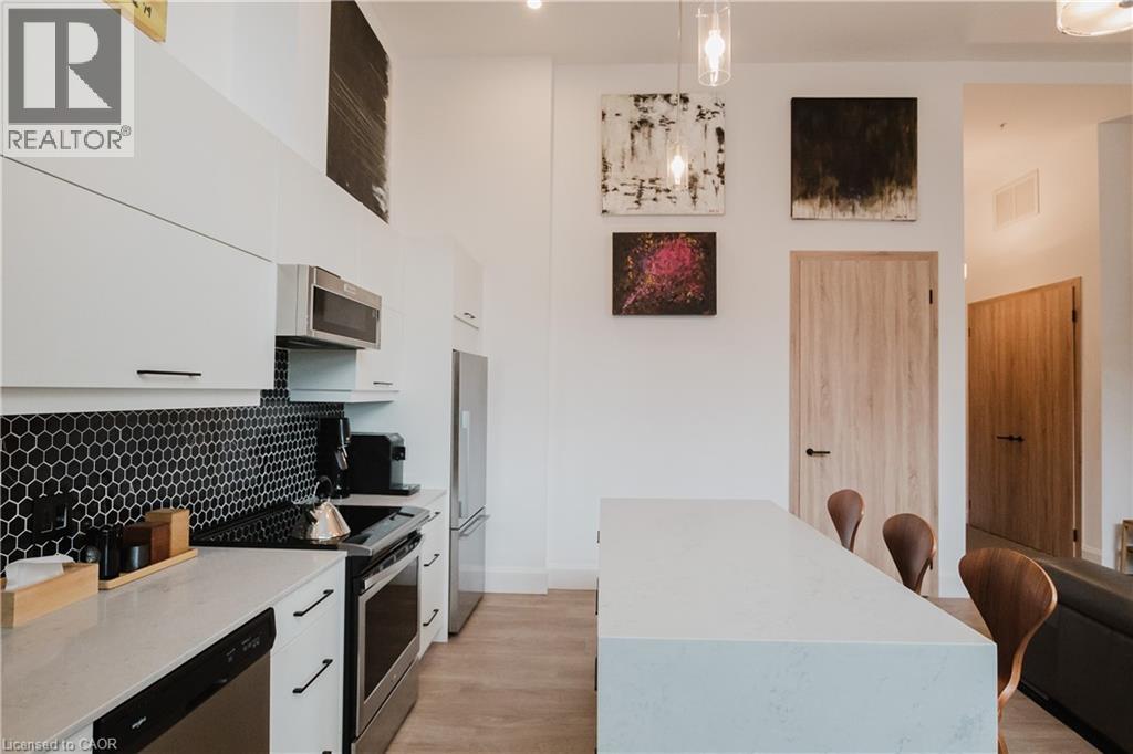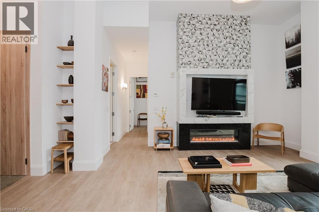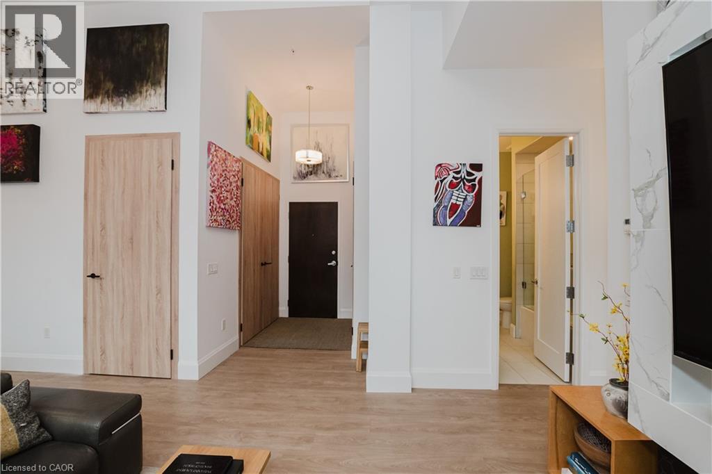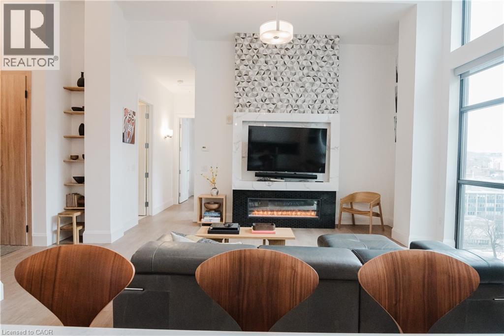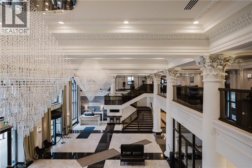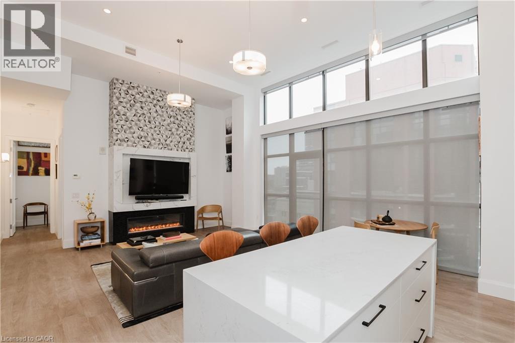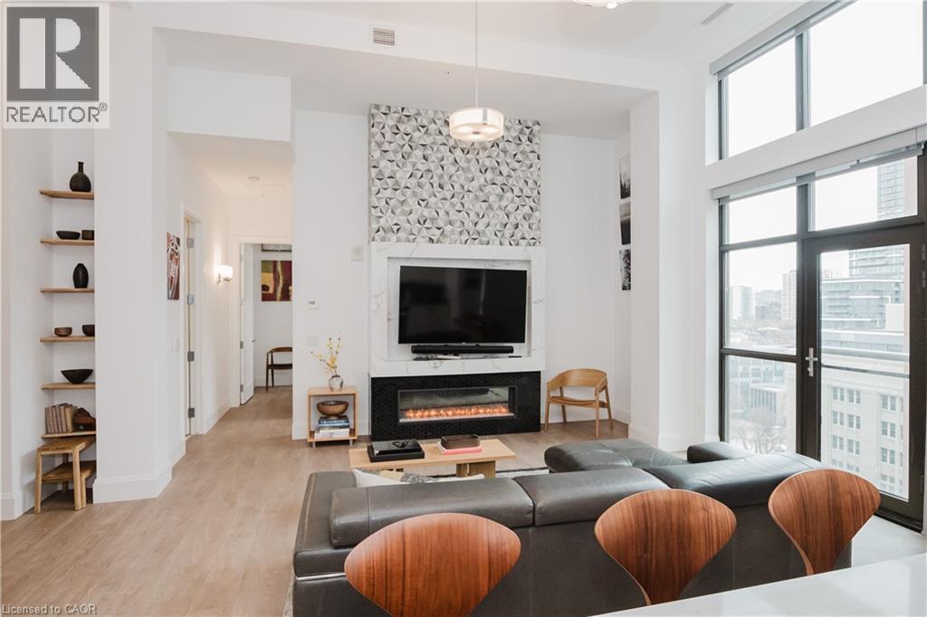 Welcome to this lovely lower penthouse at the iconic Royal Connaught, a beautifully preserved piece of Hamilton’s history right in the heart of downtown. This pristine, sun-filled unit offers soaring 13-foot ceilings, a bright open-concept layout, and southwest views. The modern kitchen is perfect for entertaining, featuring a waterfall quartz island, matching quartz countertops, and custom glass backsplash. The spacious living area includes a custom feature wall with electric fireplace. Enjoy added comfort and convenience with automated blinds throughout, a double vanity in the large 4-piece bath, a custom glass-enclosed tub/shower, in-suite laundry, and a walk-in closet in the primary bedroom. This unit also comes with an owned locker and an underground parking spot. Located just steps to everything you love about city living including trendy cafes, shops, art galleries, restaurants, and the vibrant energy of James Street. You'll also love the easy access to hospital services, transit, and GO Station connections. If you're ready for a blend of luxury, history, and urban convenience, this spectacular condo might just be your perfect match. (id:51158)