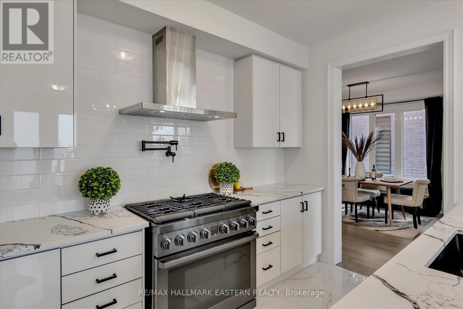 Welcome to this stunning 4 bedroom, 4 bathroom home in the sought after Gracefields Redux Development by Lindvest! This 2 year old home has over $100,000 worth of upgrades with an extra $80,000 spent for the premium lot that backs onto green space/park. The large, modern kitchen is perfect for those who love to cook and entertain, showcasing upgraded appliances including two refrigerators, built-in microwave, gas cook top with pot filler, quartz countertops, a large island, and lots of cabinetry for storage. Offering a thoughtful layout and quality finishes throughout, enter to white oak engineered hardwood flooring on the main level and a striking open staircase extending from the basement to the top floor. A separate dining room leads into that aforementioned striking kitchen and a large living room with gas fireplace and sleek mantel and large windows that let in plenty of natural light. A convenient 2-piece bathroom completes the main floor. Upstairs, the spacious primary bedroom includes a walk-in closet and a 5-piece ensuite with a standalone tub, glass-enclosed shower, and double sinks. The second bedroom also enjoys its own private ensuite and generous closet space, while the remaining two bedrooms share a well-appointed 3-piece bathroom. All bathrooms in the home feature quartz countertops, offering luxury at all turns! Short drive to Hwy 401, Hwy 35/115, Newcastle Marina and stunning views of Lake Ontario! Minutes to all amenities including local sport complex, parks, grocery stores, restaurants and shopping. (id:51158)