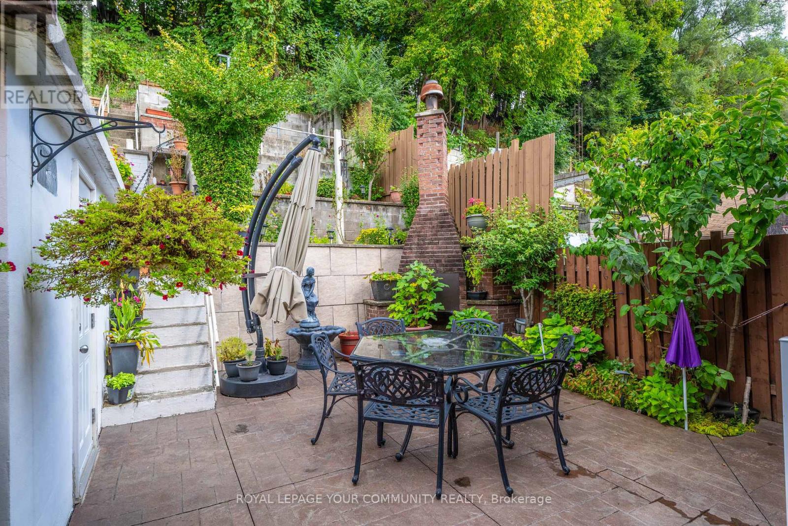 Prime Location on a highly desirable street walking distance to transit, local amenities, parks, schools. Location is A+ This home is loved and well maintained. Immaculately clean, tidy, renovated kitchen with granite countertops, additional room added to the back of the home with a wood fireplace, sliding doors leading to the backyard and is used as the eat in kitchen area. Marble Stairs, French Doors. The backyard is picturesque, reminiscent of a European vibe. 3 spacious bedrooms on the upper level with one bedroom featuring a walkout to an expansive terrace overlooking the gardens. (need size of the terrace). Finished lower level with separate bedroom & full bathroom to accommodate an additional family member. Garage + Long Driveway to accomodate total of 4 vehicles. TTC is Just Around the Corner, School Across the Street, Shopping steps away. Smythe Park is nearby & Dalrymple Park is close by. The neighbourhood is family friendly. (id:51158)