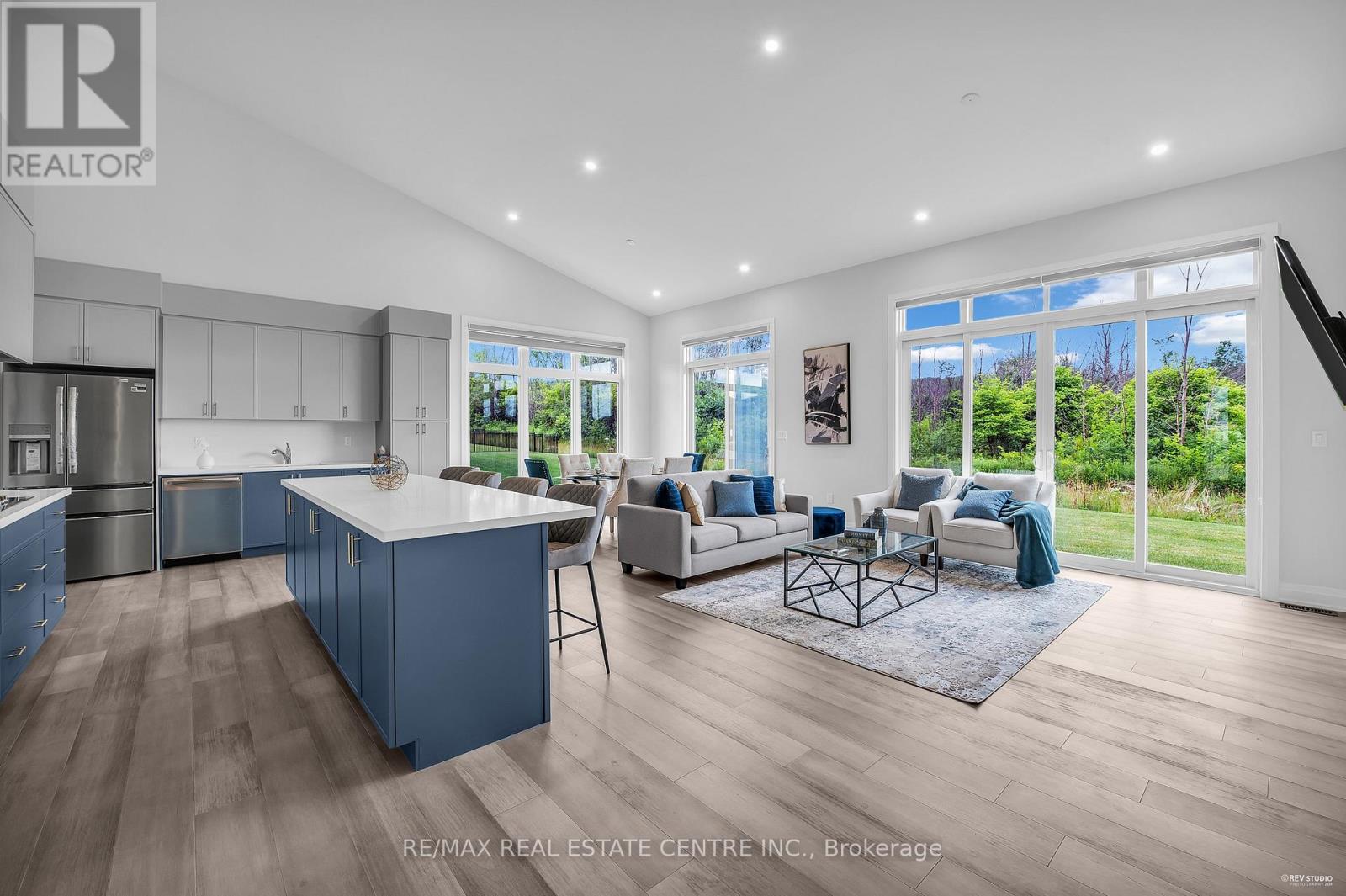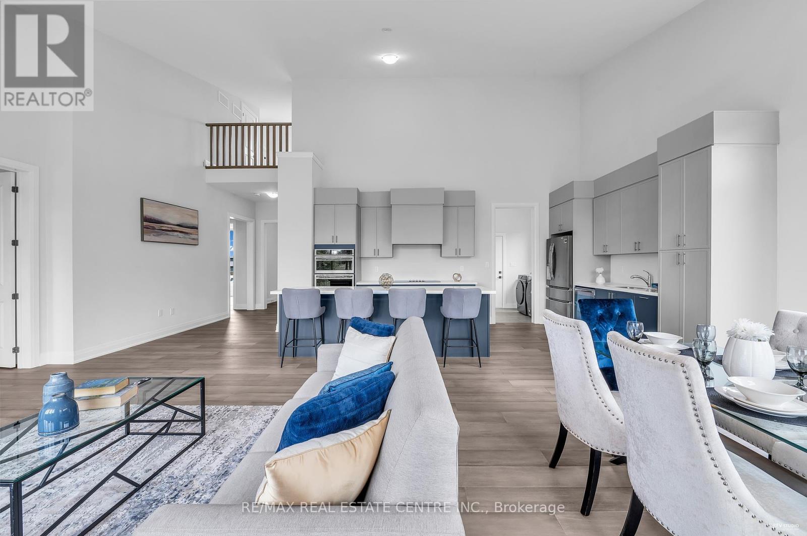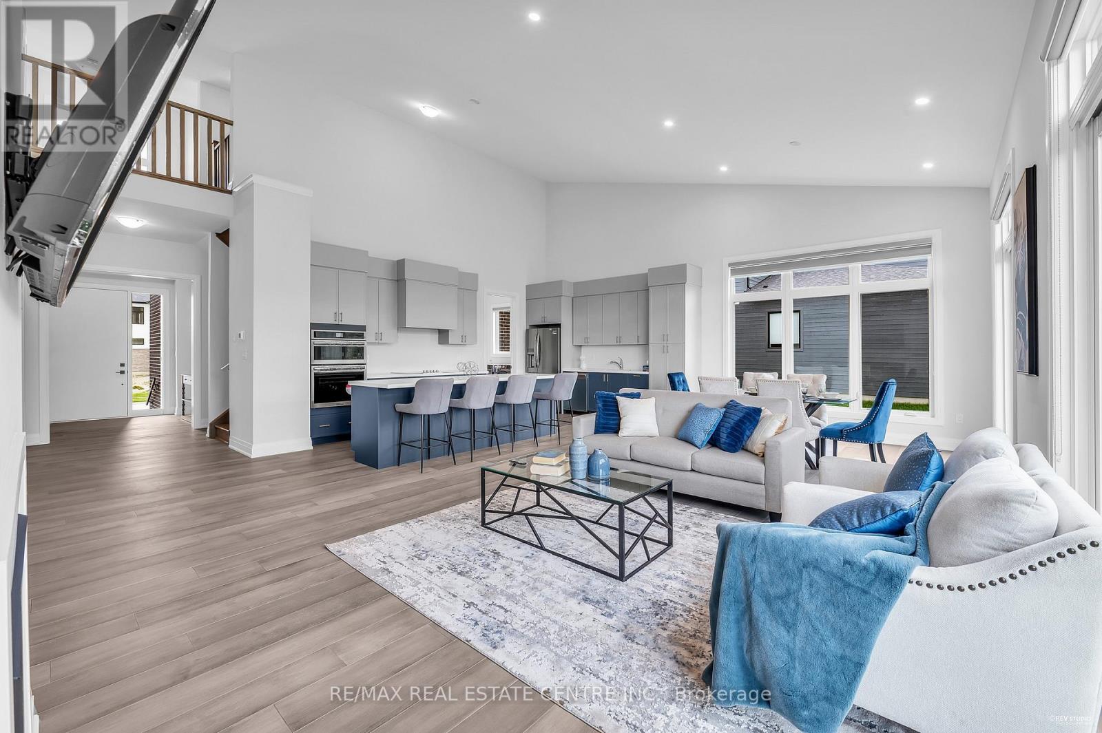 This spectacular detached luxury home is a showstopper located in the highly sought-after master's Enclave in Lora Bay. Fully upgraded from top to bottom with beautifully curated finishes that flow from room to room, this home offers the ultimate in luxurious living. Perched on a premium large sized lot, this home backs onto the golf course and boasts stunning views of Georgian Bay. The spacious living room features 20 ft high ceilings making it the perfect place to relax and unwind after a long day. The primary bedroom is a true retreat, with a 5-piece ensuite and walk-in closet. The main floor office can double up as an extra bedroom, providing added flexibility and functionality. Two guest bedrooms on the second floor are complemented by a full 4-piece bath and a spacious loft area, perfect for lounging. (id:51158)