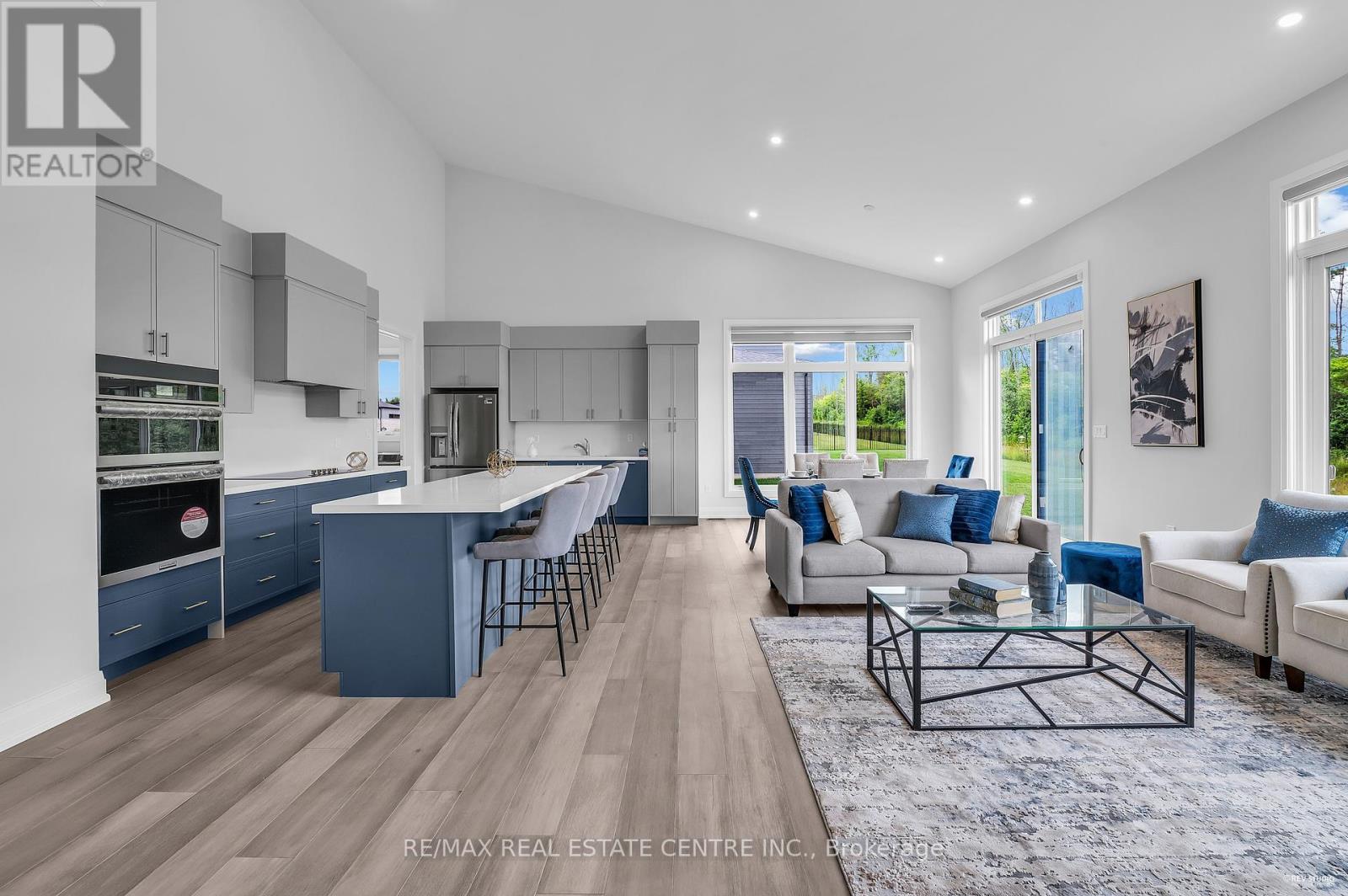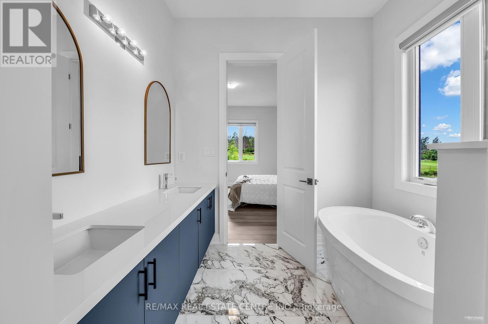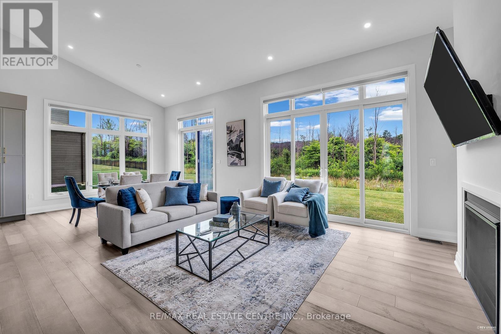This spectacular detached luxury home is a showstopper located in the highly sought-after master's Enclave in Lora Bay. Fully upgraded from top to bottom with beautifully curated finishes that flow from room to room, this home offers the ultimate in luxurious living. Perched on a premium large sized lot, this home backs onto the golf course and boasts stunning views of Georgian Bay. The spacious living room features 20 ft high ceilings making it the perfect place to relax and unwind after a long day. The primary bedroom is a true retreat, with a 5-piece ensuite and walk-in closet. The main floor office can double up as an extra bedroom, providing added flexibility and functionality. Two guest bedrooms on the second floor are complemented by a full 4-piece bath and a spacious loft area, perfect for lounging. (id:51158)