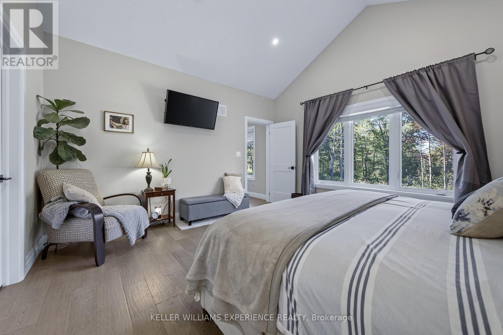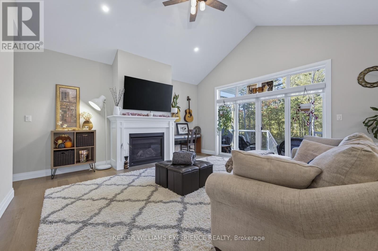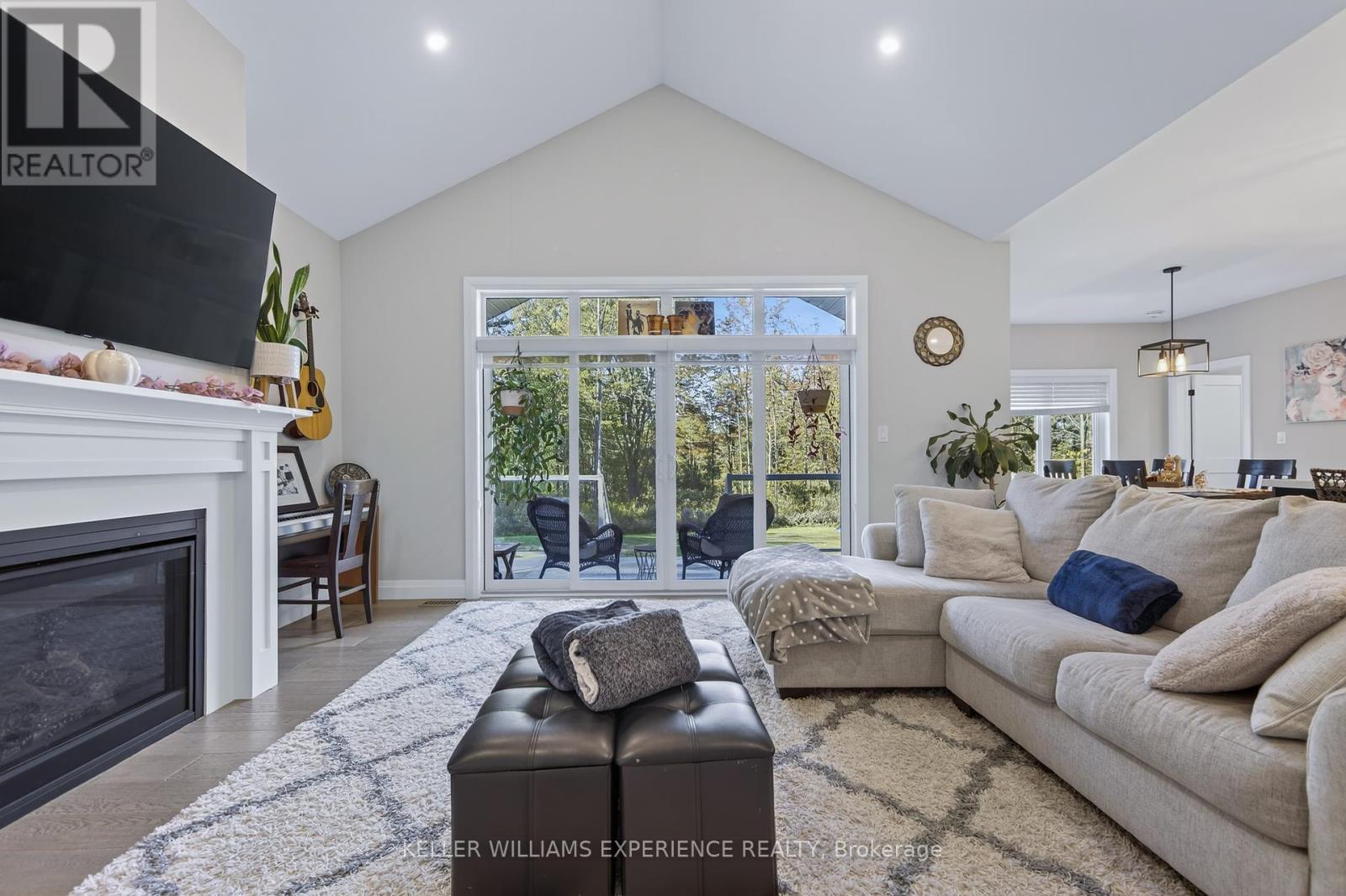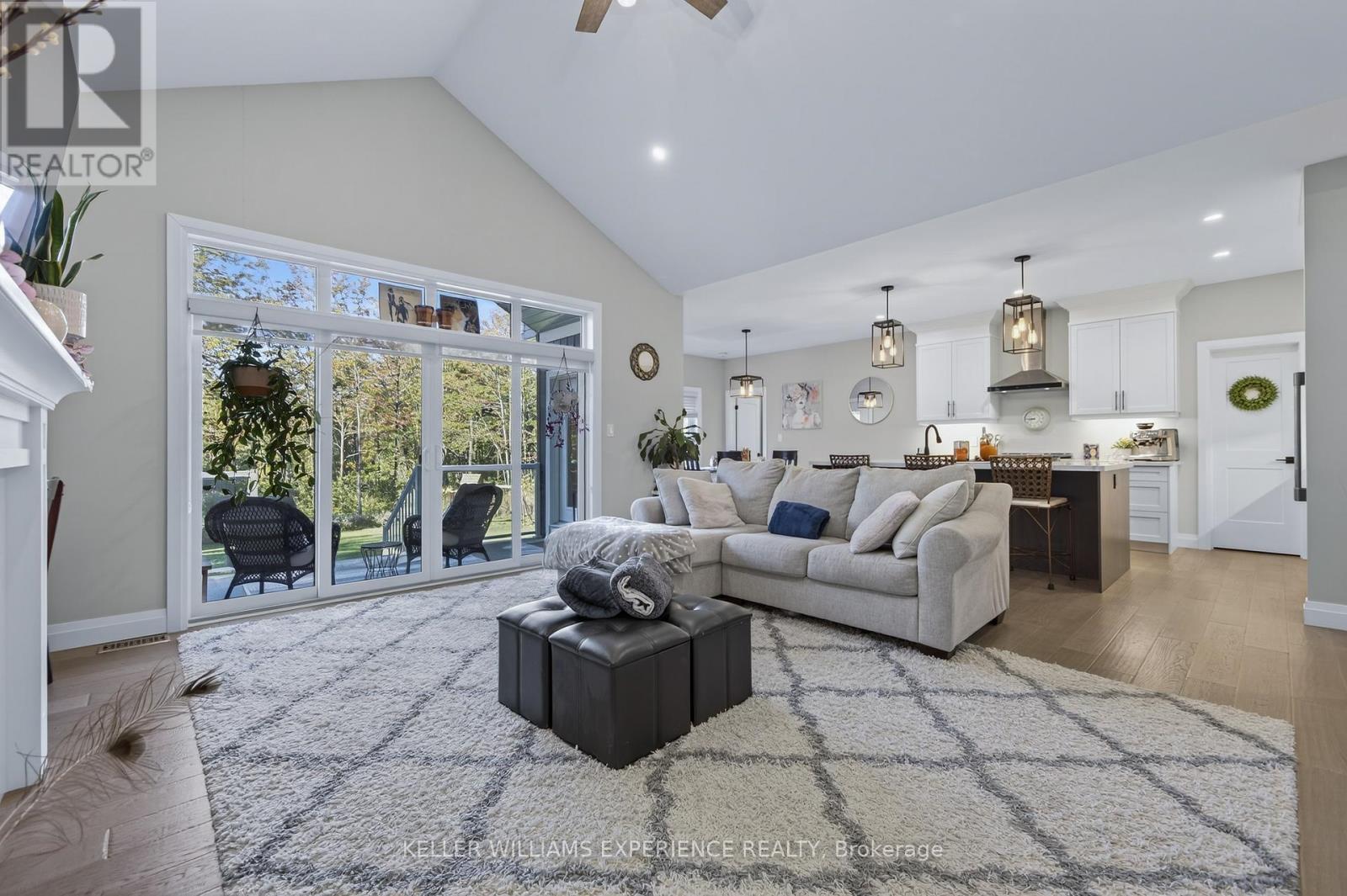 Welcome to your Muskoka retreat! This 1,730 sq. ft. bungalow, built in 2020, sits on over 7 acres of forested privacy just minutes from Hwy 11, 15 minutes to Orillia, and 10 minutes to Gravenhurst. The open-concept layout showcases vaulted ceilings in the living room and primary bedroom, hardwood floors, upgraded lighting, and a chef-inspired kitchen with quartz countertops, soft-close cabinets, and under-valence lighting. The primary suite is a true escape with a spa-like ensuite featuring an oversized glass shower, soaker tub, and double sinks. Two additional bedrooms and a second full bath offer plenty of space for family or guests. Practical design includes a mudroom and laundry with direct access to the 2-car garage, plus an unfinished basement ready for your personal touch. Relax or entertain on the large covered back porch and enjoy the peace and beauty of Muskoka living. (id:51158)