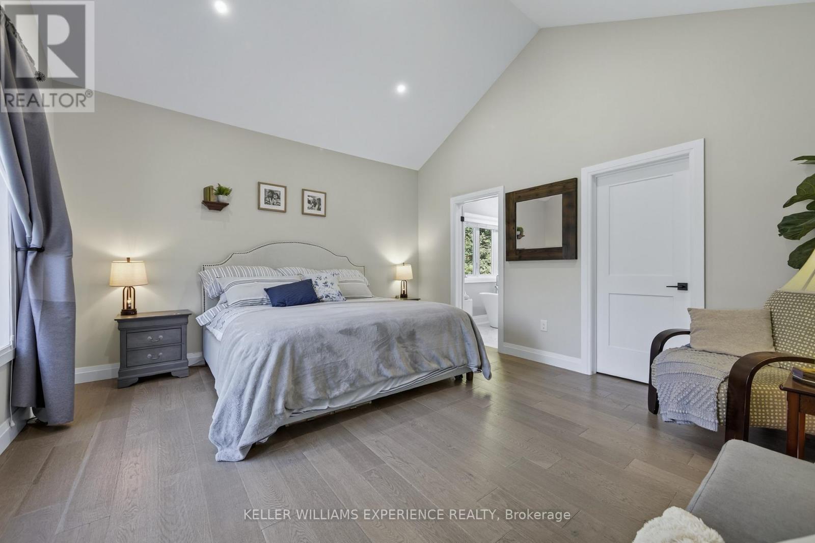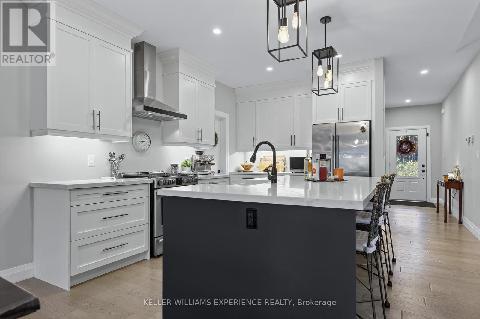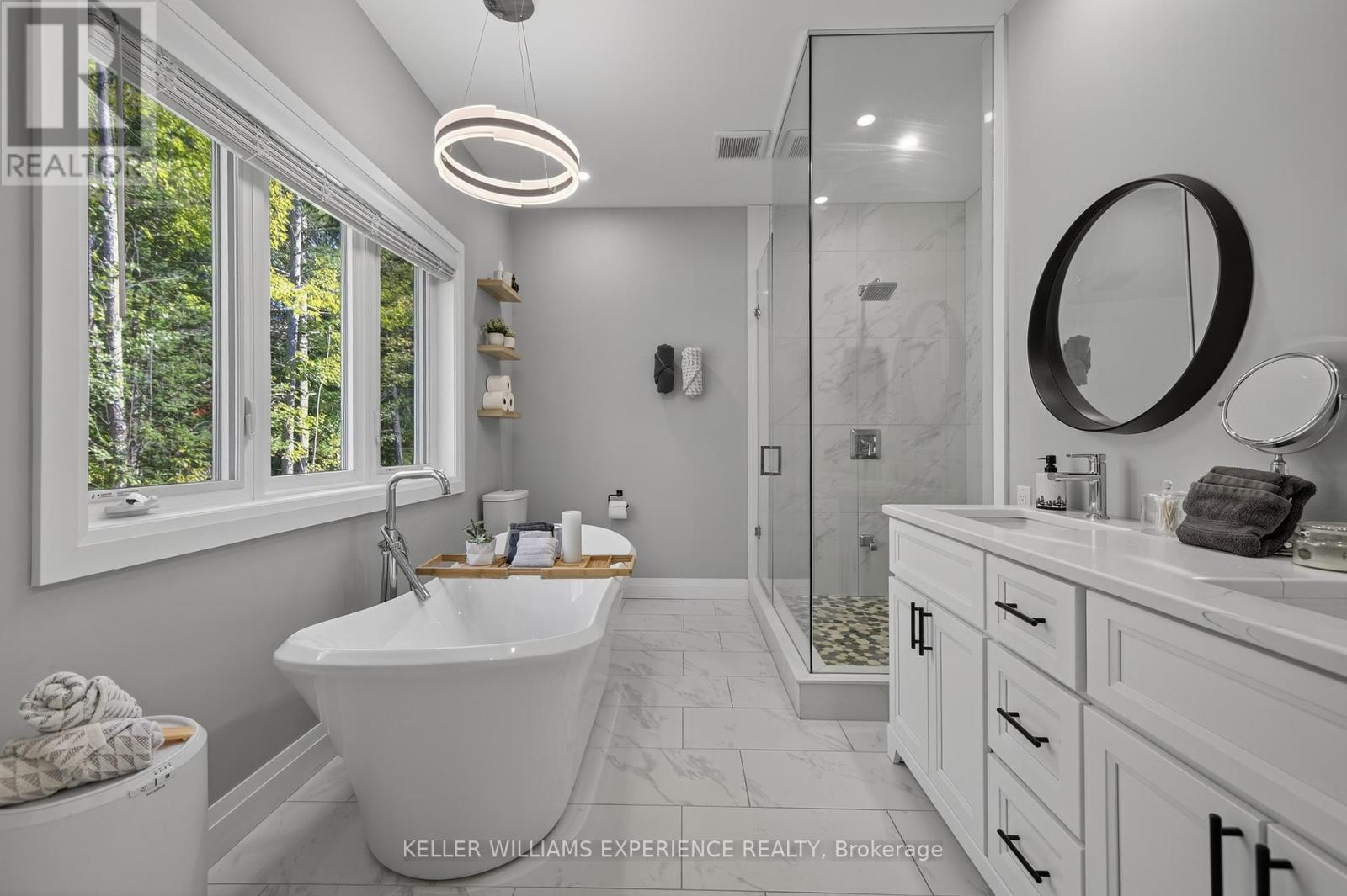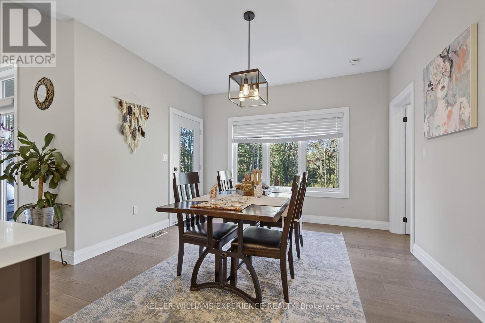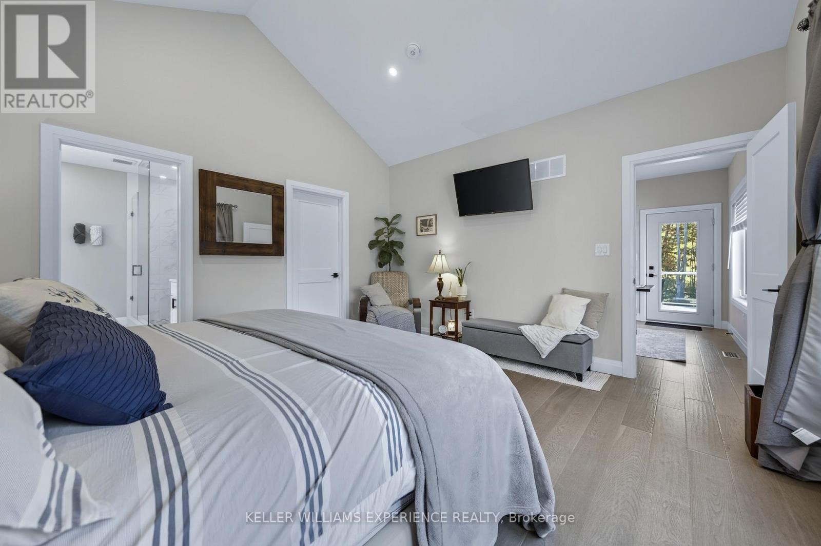 Welcome to your Muskoka retreat! This 1,730 sq. ft. bungalow, built in 2020, sits on over 7 acres of forested privacy just minutes from Hwy 11, 15 minutes to Orillia, and 10 minutes to Gravenhurst. The open-concept layout showcases vaulted ceilings in the living room and primary bedroom, hardwood floors, upgraded lighting, and a chef-inspired kitchen with quartz countertops, soft-close cabinets, and under-valence lighting. The primary suite is a true escape with a spa-like ensuite featuring an oversized glass shower, soaker tub, and double sinks. Two additional bedrooms and a second full bath offer plenty of space for family or guests. Practical design includes a mudroom and laundry with direct access to the 2-car garage, plus an unfinished basement ready for your personal touch. Relax or entertain on the large covered back porch and enjoy the peace and beauty of Muskoka living. (id:51158)