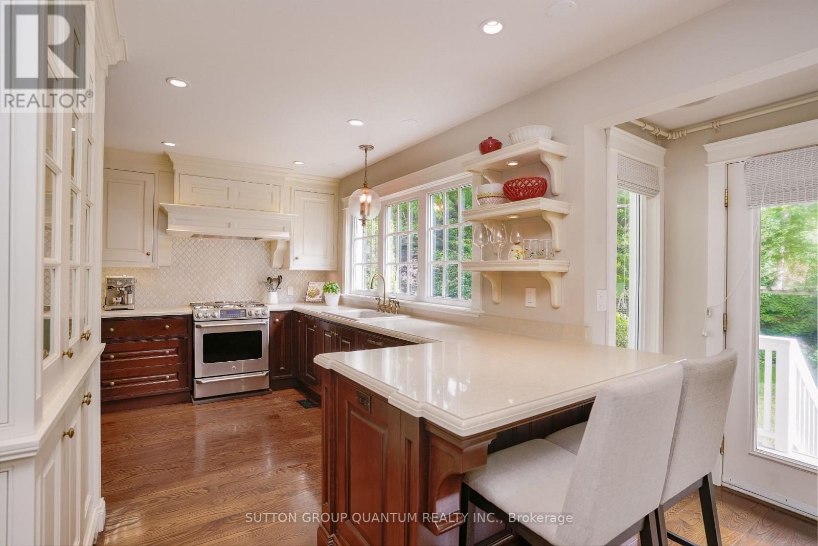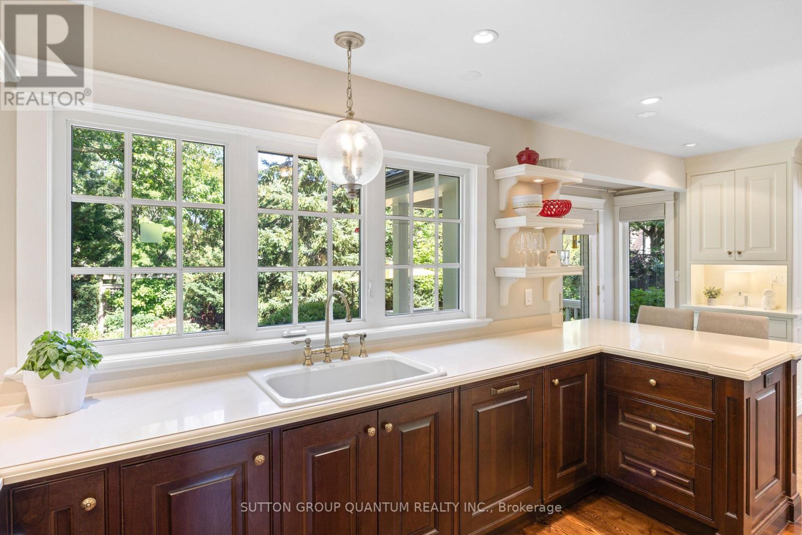 From time to time, a home is listed that stands out. Experience the charm & character of this fully redesigned Cape Cod home, nestled on a beautiful lot on highly desirable Birchview Drive in Lorne Park. Over 2500 sq ft of above grade, finished with the highest quality materials & crafted millwork. Featuring a Perola Kitchen with solid wood cabinetry, Caesarstone countertops, built ins, glass display cabinets, storage hutch, soft close drawers & pull outs, hidden pantry & under cabinet lighting. The main floor has a functional layout with a warm welcoming foyer with 2 custom built in coat closets & a library/office with French doors featuring solid wood bookcases, gas fireplace & custom mantle. The entire home is highlighted by beautiful rich hardwood floors, craftsman doorcasings, oversized baseboards & mouldings. The Sunken Family room has a wood burning fireplace, picture windows, 10ft coffered ceilings & glass doors opening out to the covered deck & backyard. Natural light fills this elegant home while oversized picture windows that frame the dense mature evergreens, flowering tree canopy and perennial gardens from every room. Multiple covered decks & sitting areas linked by stone walkways provide outdoor areas to enjoy the tranquility & privacy of this extensively landscaped property. Upstairs the primary bedroom retreat features a vaulted ceiling, 3 skylights, Juliette balcony, His & Her closets & a 5 piece, spa like ensuite, 3 additional bedrooms, a reading nook, laundry closet and a main bathroom with pocket doors. The basement has hardwood & above grade windows, cold storage & a laundry room as well as a cozy recreation room with gas fireplace, & a gym equipped with rubber flooring.The oversized detached garage provides ample parking for 2 cars, storage & workshop area with side entrance, electric garage door opener, 200 amp electrical service. Short walk to schools, shops, Lake & easy access to QEW & GO. A home like this rarely comes along! (id:51158)