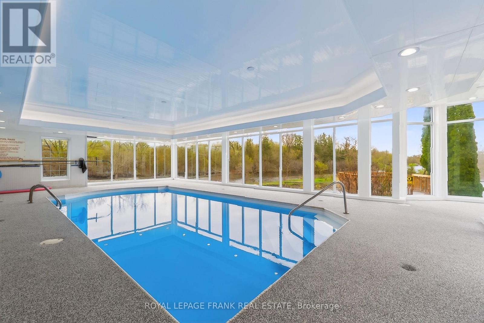 $748 MonthlyLindsay's Ultimate Waterfront Community Bungaloft Condo ... Plus Wonderful Clubhouse/Rec Centre Boasting Indoor Pool & Roof Top Patio with Beautiful Riverside Views... an open concept beauty that makes a great first impression. You'll be charmed by warm oak floors, 9' ceilings & classic pair of wood columns as you transition to the great room. Together, they showcase a fabulous focal point in design with vaulted ceiling, elegant half-moon window, mantled corner fireplace & a natural extension to a large tree shaded deck & gazebo for all your grilling & dining pleasure. Enjoy complete one-floor living with the added versatility of an amazing 500 sq.ft. loft area with full bath & walk-in closet. Kitchen with lots of cupboards & counter space plus floor to ceiling pantry. Luxurious sized master bedroom with semi-ensuite & walk-out to deck. Main floor laundry room & garage to house entry. Dim the pot lights and start the show... rec room features custom home theatre with built-ins for speakers, fully wired & sound proofed plus adjacent room for the pool table! It's the ultimate Friday night, right at home!" No Exterior Maintenance! Lawn, landscaping, window cleaning & snow shoveled right to your doorstep. This is your chance to be part of an active upscale adult lifestyle. Boat access to the "Trent-Severn Waterway" ... boat slips, beautiful grounds, tennis, & RV parking. Pet friendly too. It doesn't get any better than this! (id:51158)