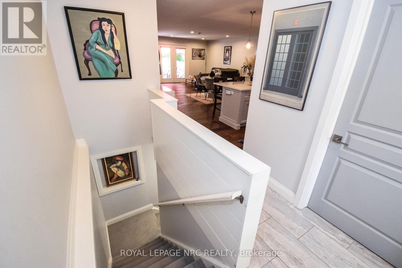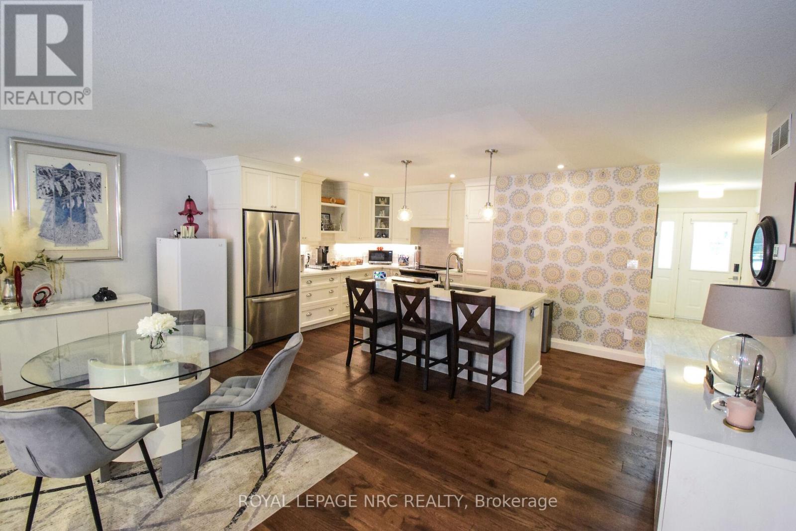 $525 MonthlyThis beautifully maintained bungalow townhome offers an open and seamless layout with 2+1 bedrooms, 3 full bathrooms, and laundry on both floors making it ideal for a family member to live comfortably below. Perfectly suited for downsizers, retirees, or anyone seeking stylish, low-maintenance living. The main floor features engineered hardwood flooring throughout, except in the bathrooms and front entrance, adding both warmth and durability to the living space. Pot lights in the living room and kitchen, with under-cabinet lighting in the kitchen for added ambiance and functionality. The kitchen blends function and style, perfect for everyday cooking or entertaining. It features an abundance of high-end cabinetry, stainless steel appliances, and a spacious quartz-topped island equipped with a sink, dishwasher, and seating for bar stools. Enjoy the comfort of the primary suite, which includes a well-appointed ensuite with heated floors and a large walk-in closet. The front bedroom also offers the convenience of its own washer and dryer (2023). Step outside to a private deck that expands your entertaining space complete with a BBQ, patio furniture, and a fire table that will stay with the home.The finished basement adds impressive versatility with a rec room area, third bedroom, full bathroom, dedicated workshop, laundry room, and ample storage space for all of life's treasures. Furnace 2020 and Air Conditioner 2021. HWT is owned. Condo fees also includes: CABLE AND INTERNET, outside maintenance and water sprinkler system, grass cutting, snow removal, garbage removal. Conveniently located near the QEW, and the outlet mall, this home offers exceptional lifestyle. Simply move in and enjoy. (id:51158)