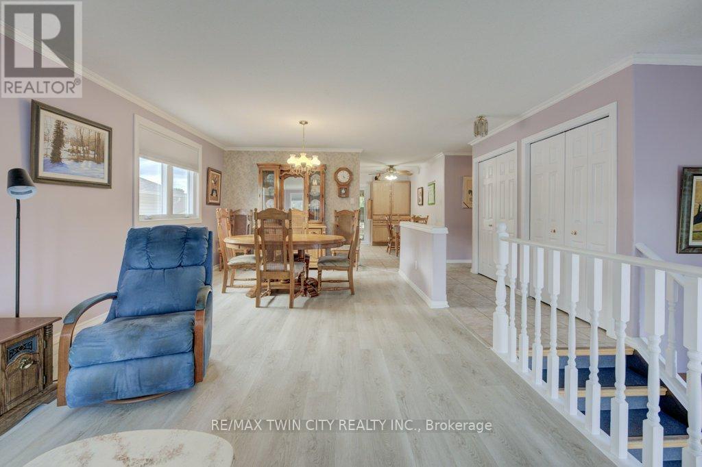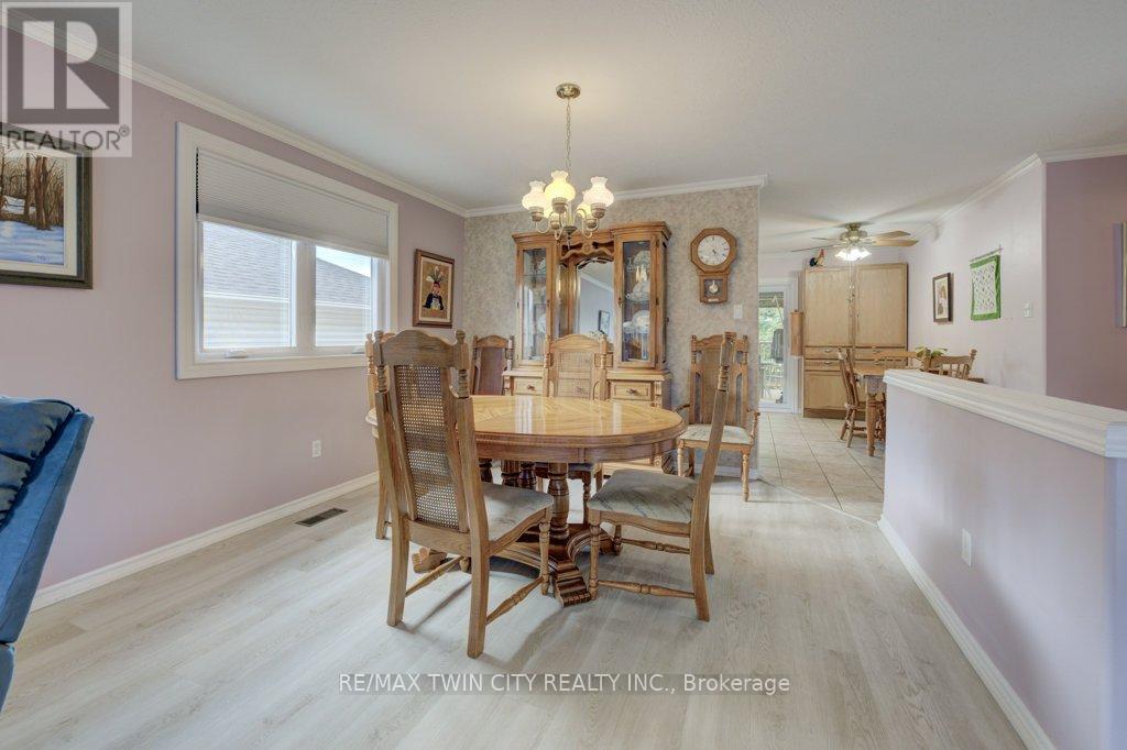 Welcome to this beautiful and very well maintained & thoughtfully updated bungalow in the very pretty Town of Paris! The main floor offers open concept living & dining adjacent to the kitchen with breakfast nook & sliders to the WOW covered deck out back to expand your living experience! A comfortable primary bedroom, generous 2nd bedroom, a third bedroom that is currently being used as a home office & a 4pc bath complete this level. The basement level provides you with a huge recroom, a 3pc bath, large laundry/utility room, storage area under the stairs, plus two spacious bonus rooms currently used as a workshop and a hobby/sewing room that could easily be finished if you need more space. The fully fenced backyard features a large covered deck, beautiful gardens and a handy storage shed. Your double car garage conveniently accesses the main foyer and the double wide driveway easily accommodates 2 cars. The quiet crescent location is fantastic for families and is an easy walk to shopping & restaurants. Parks, schools & places of worship are all within minutes too! Updates include: 5 windows & patio doors(2023), front door(2019), flooring(2021), furnace(2024), roof(2015) upgraded attic insulation(2015), deck(2024). This could be the one you have been waiting for...don't delay! Make it yours today! (id:51158)