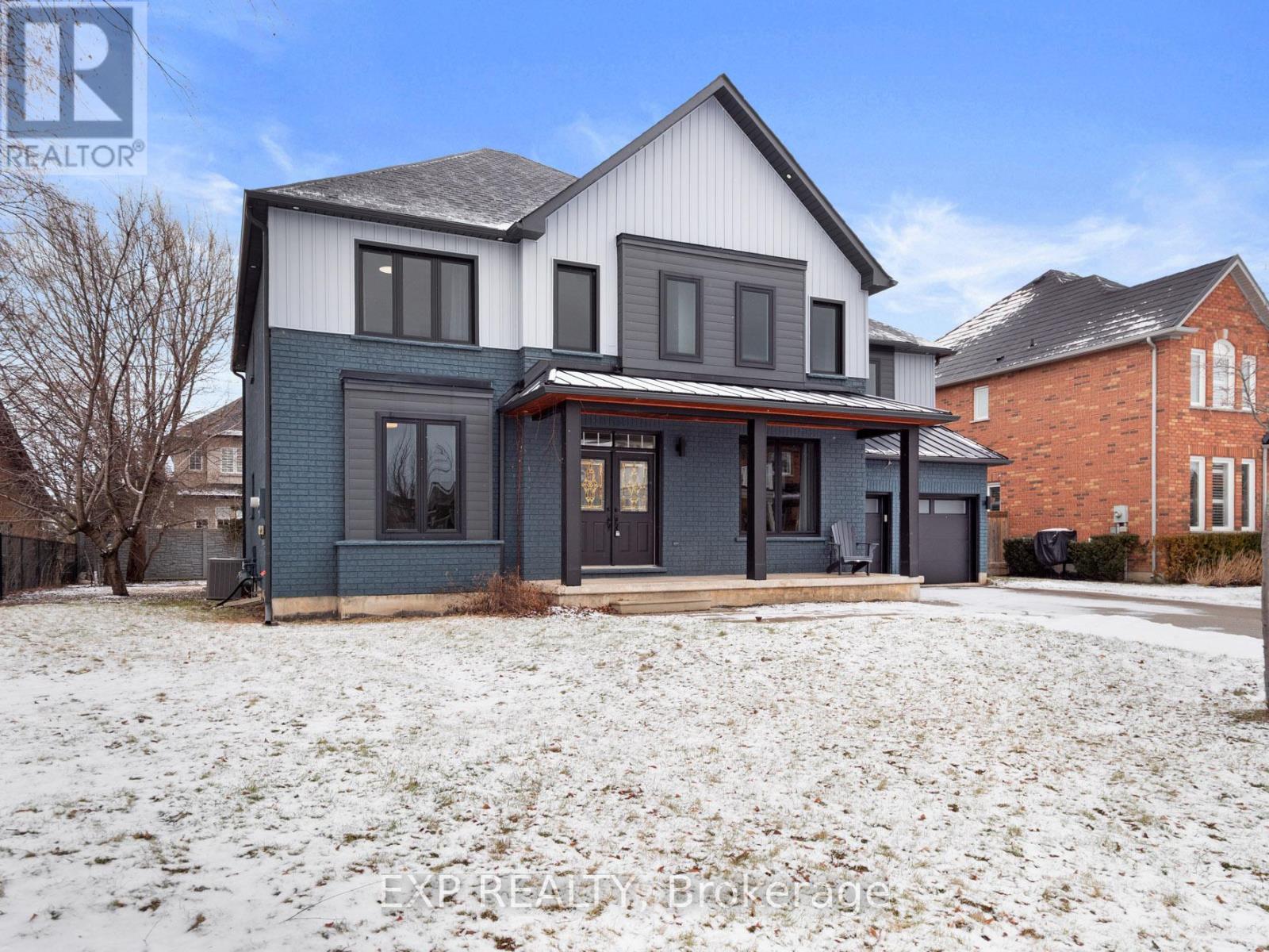 IMPRESSIVE TWO-STOREY IN A PRIME LAKESIDE COMMUNITY. A rare opportunity to secure over 3500 sq ft of above grade living space in the sought after Winona Park community, where families wait for homes like this to become available. Enjoy an exceptional location just minutes from the lake, beaches, marina, boat launch, shopping, and convenient highway access, all within a peaceful, family friendly neighbourhood. The welcoming front porch and updated exterior provide excellent curb appeal, complemented by mature trees. Inside, the home opens to an impressive two-storey foyer featuring tile flooring and a stunning wraparound wood staircase, creating an elegant first impression. The main floor offers a bright sitting room with large windows, a formal dining room with a beautiful tray ceiling, and a stylish kitchen complete with quartz countertops and white cabinetry, stainless steel appliances, built in microwave, contemporary backsplash, and a large island ideal for meal prep and gathering. An eat in area with patio doors leads to the backyard, where concrete pads and mature trees create a great outdoor space and blank canvas for future enjoyment. The adjoining great room provides a natural hub for everyday living. A spacious additional main floor room offers excellent flexibility as a home office, guest space, or extra bedroom, while a two-piece bath and main floor laundry add convenience. Upstairs features hardwood flooring throughout a bright open hallway leading to five generously sized bedrooms, an ideal layout for growing families. The primary suite offers double door entry, abundant natural light, walk in closet, and a large ensuite with soaker tub, dual sinks, and enclosed shower and water closet. Two bedrooms share a connecting bathroom and an additional full bathroom completes the upstairs. Unfinished basement ready for customization. A home that delivers the space you need in the location you want. (id:51158)