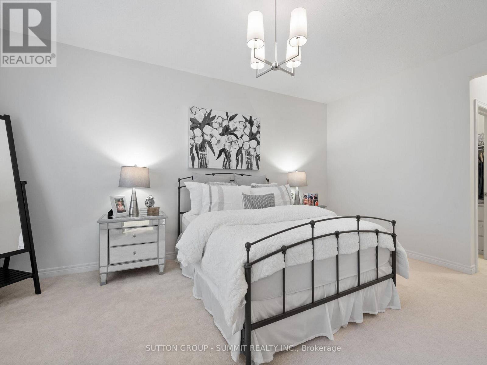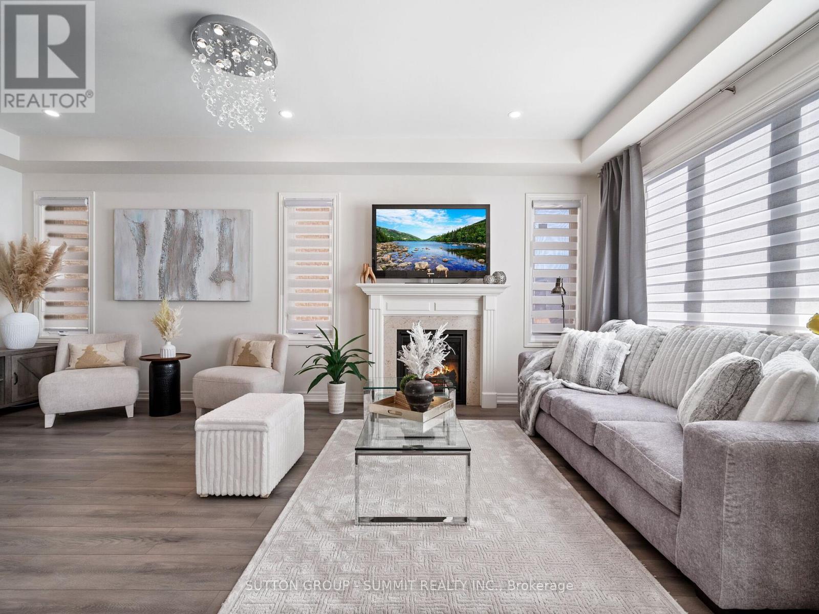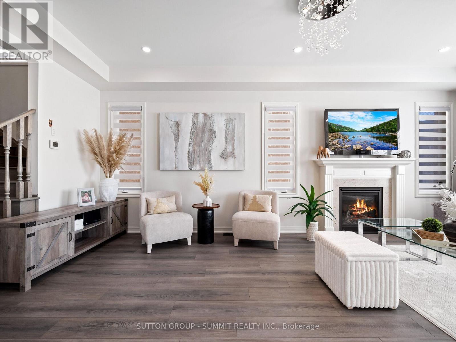 Prepare to be captivated by this remarkable 4 bedroom 3 bath residence, crafted by the Starlane Home!This home features 1975 sq feet of high-quality upgrades that beautifully combine with modern charm. As you step inside, you'll be greeted by impressive 9' ceilings on both levels, a delightful open-concept layout, gorgeous hardwood fl., and an abundance of natural light. It truly creates a cozy and inviting atmosphere that makes you feel right at home! The heart of this home is the impressive upgraded kitchen, featuring a double pantry, a central island with breakfast bar, sleek granite countertops, modern backsplash, and top-of-the-line stainless steel appliances all thoughtfully designed to elevate your culinary adventures. A stunning staircase, perfectly coordinated with the hardwood fl., leads you to the exquisite master retreat. Here, youll find a spacious bedroom overlooking the lush yard, a generous walk-incloset, and a luxurious en-suite bathroom complete with a soothing soaking tub and a separate frameless glass shower. The second bedroom, adorned with a spacious double closet and a charming balcony that offers a lovely view, is perfect for hosting family and friends or serving as a cozy guest retreat. Two additional bright bedrooms, each filled with natural light and potential, are ready for your personal touch, whether you envision children's playroom,home office, or another guest space. Meanwhile, the stylish 4-piece main bathroom, featuring modern fixtures and elegant finishes, provides a refreshing and comfortable experience,completing the second floor's appeal. Experience the convenience of main-floor laundry with direct garage access, a rough-in for central vacuum, cozy gas fireplace, and upgraded potlights throughout the main floor. The impressive curb appeal, highlighted by beautifully landscaped grounds, a large covered porch, and an appealing stone-brick exterior, will fill you with pride every time you come home. Close to Hwys 407, QEW (id:51158)