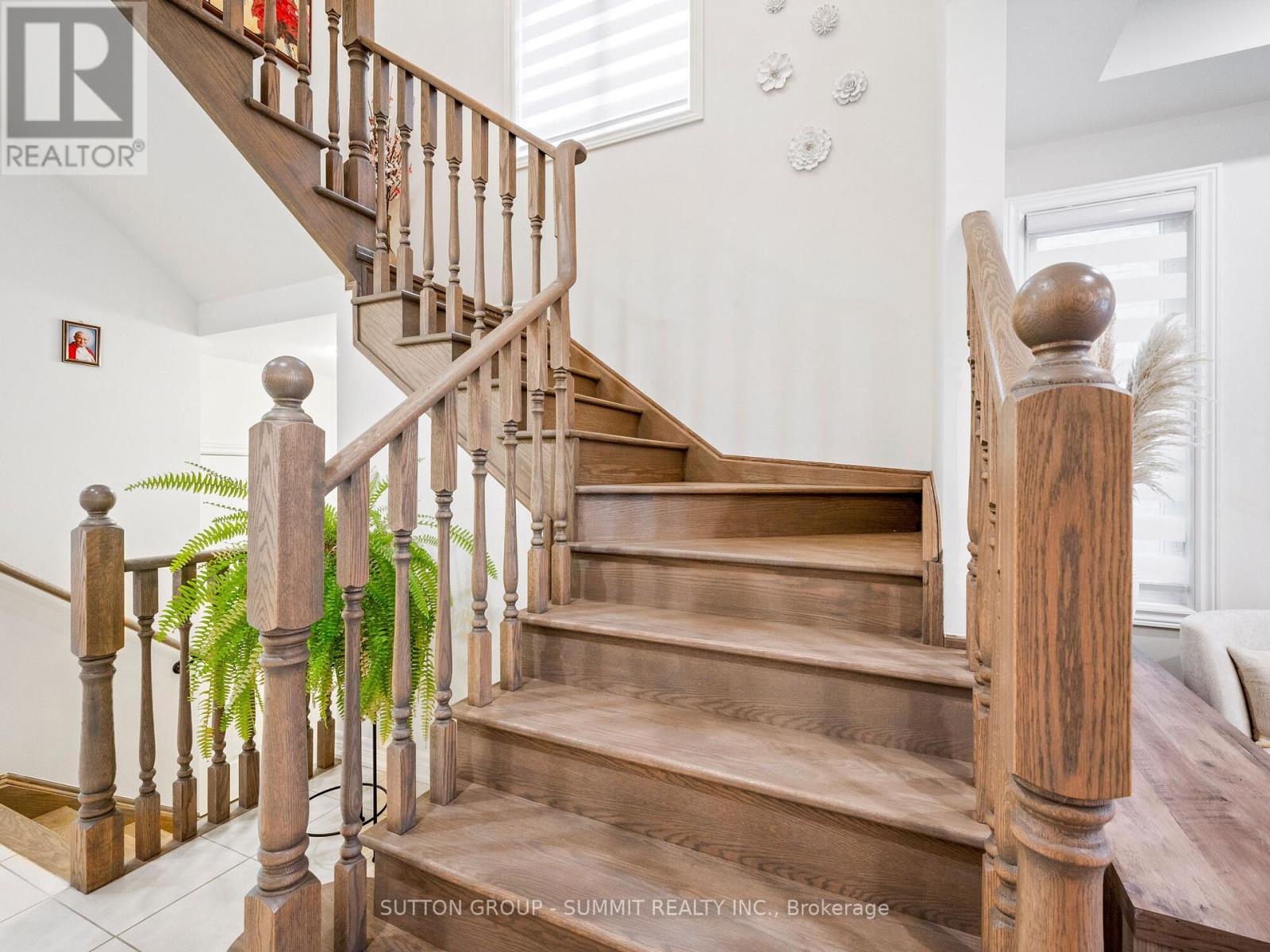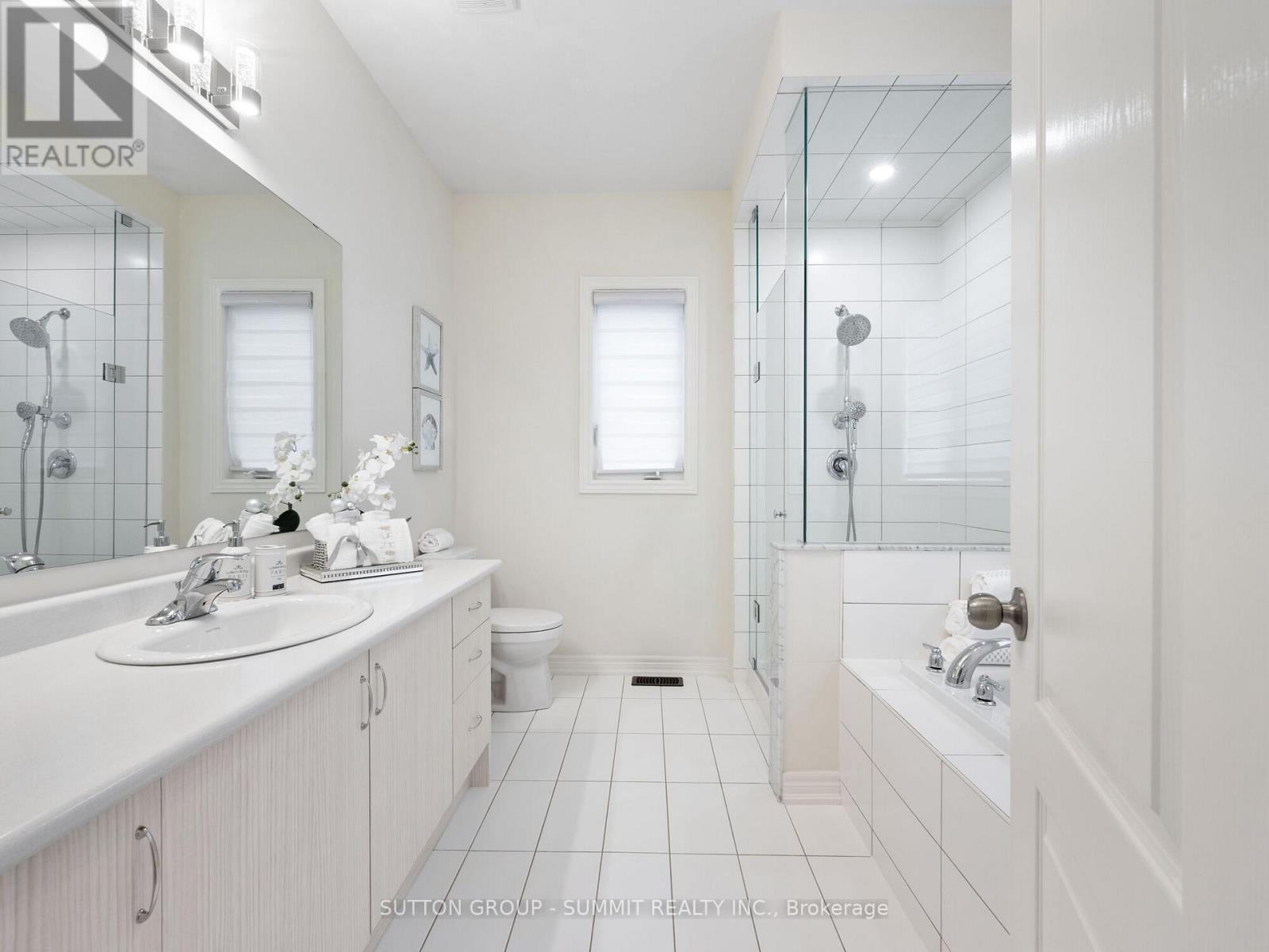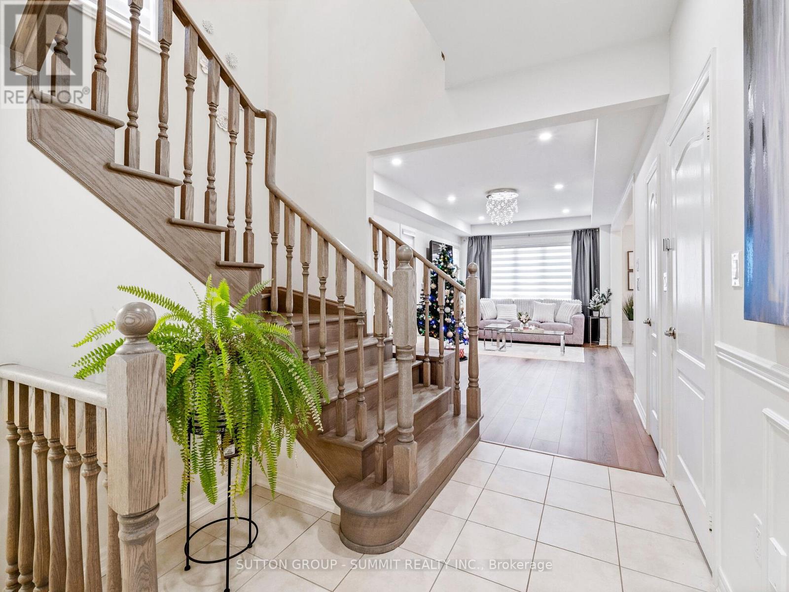 Prepare to be captivated by this remarkable 4 bedroom 3 bath residence, crafted by the Starlane Home!This home features 1975 sq feet of high-quality upgrades that beautifully combine with modern charm. As you step inside, you'll be greeted by impressive 9' ceilings on both levels, a delightful open-concept layout, gorgeous hardwood fl., and an abundance of natural light. It truly creates a cozy and inviting atmosphere that makes you feel right at home! The heart of this home is the impressive upgraded kitchen, featuring a double pantry, a central island with breakfast bar, sleek granite countertops, modern backsplash, and top-of-the-line stainless steel appliances all thoughtfully designed to elevate your culinary adventures. A stunning staircase, perfectly coordinated with the hardwood fl., leads you to the exquisite master retreat. Here, youll find a spacious bedroom overlooking the lush yard, a generous walk-incloset, and a luxurious en-suite bathroom complete with a soothing soaking tub and a separate frameless glass shower. The second bedroom, adorned with a spacious double closet and a charming balcony that offers a lovely view, is perfect for hosting family and friends or serving as a cozy guest retreat. Two additional bright bedrooms, each filled with natural light and potential, are ready for your personal touch, whether you envision children's playroom,home office, or another guest space. Meanwhile, the stylish 4-piece main bathroom, featuring modern fixtures and elegant finishes, provides a refreshing and comfortable experience,completing the second floor's appeal. Experience the convenience of main-floor laundry with direct garage access, a rough-in for central vacuum, cozy gas fireplace, and upgraded potlights throughout the main floor. The impressive curb appeal, highlighted by beautifully landscaped grounds, a large covered porch, and an appealing stone-brick exterior, will fill you with pride every time you come home. Close to Hwys 407, QEW (id:51158)