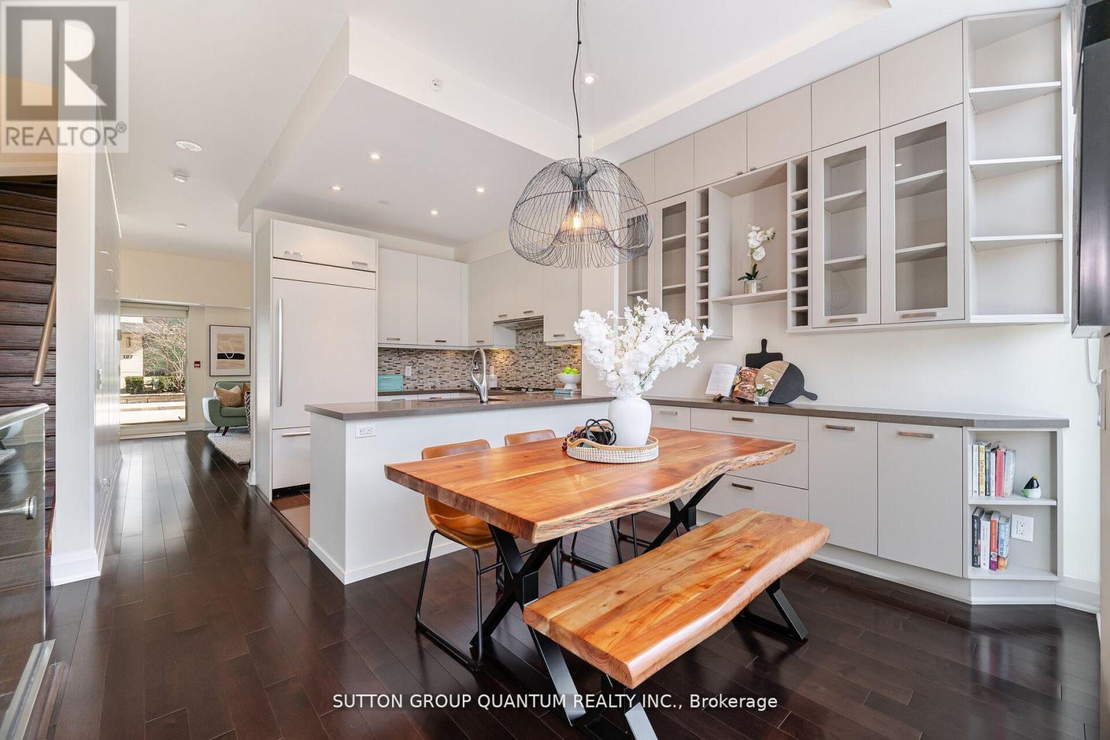 Bronte living at its best!!! Where everything you need is right outside your door. This 3 storey modern executive townhome has is all with each level having bright open rooms - 4 bedrooms, 3 bathrooms , finished basement , walking distance to the waterfront , local markets and neighbourhood cafes. Located in the highly sought after upscale Shores Condominium complex. This executive townhome has it all with 2153 sq ft of interior space. Living room , with 10ft ceilings, hardwood floors, electric fireplace , Oversized windows. Gourmet kitchen with custom cabinets, quartz counters, B/I appliances, Dining area, walkout to a large private fenced backyard. Primary bedroom with 5 piece ensuite, walk in closet, 9ft ceiling, floor to ceiling windows. 3 other large bedrooms with 9ft ceilings, hardwood floors and a spectacular view of the water. Finished basement with a 80 inch TV, 2 piece bathroom , exit to 2 indoor parking spaces steps from your door and with 24/7 concierge service. This is the perfect place to call home optional furnishings in this townhome is the perfect choice if you're ready to simplify without giving up space or comfort. In the heart of Bronte Village, walking steps away to the lake, restaurants, shops, trails, and the harbour. 56 Jones Unit 120 has LOW CONDO FEES! Amenities include: 3 party rooms which can be rented all at once or individually, Theatre room, Billards room, Wine Tasting area, Guest suites, Rooftop Pool & Spa, Fitness facilities , BBQ patio ,Car wash, Doggy spa, 24/7 concierge, Visitor Parking and much more. Maintenance includes leaf blowing, snow removal, window cleaning, landscaping, general services. Downsizing has never felt so inviting. (id:51158)