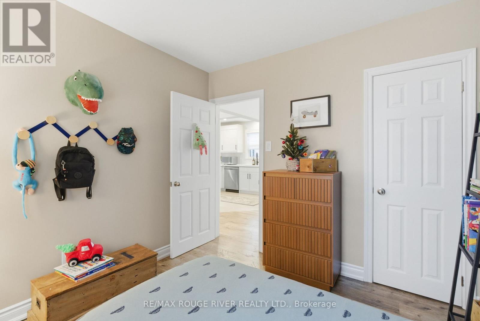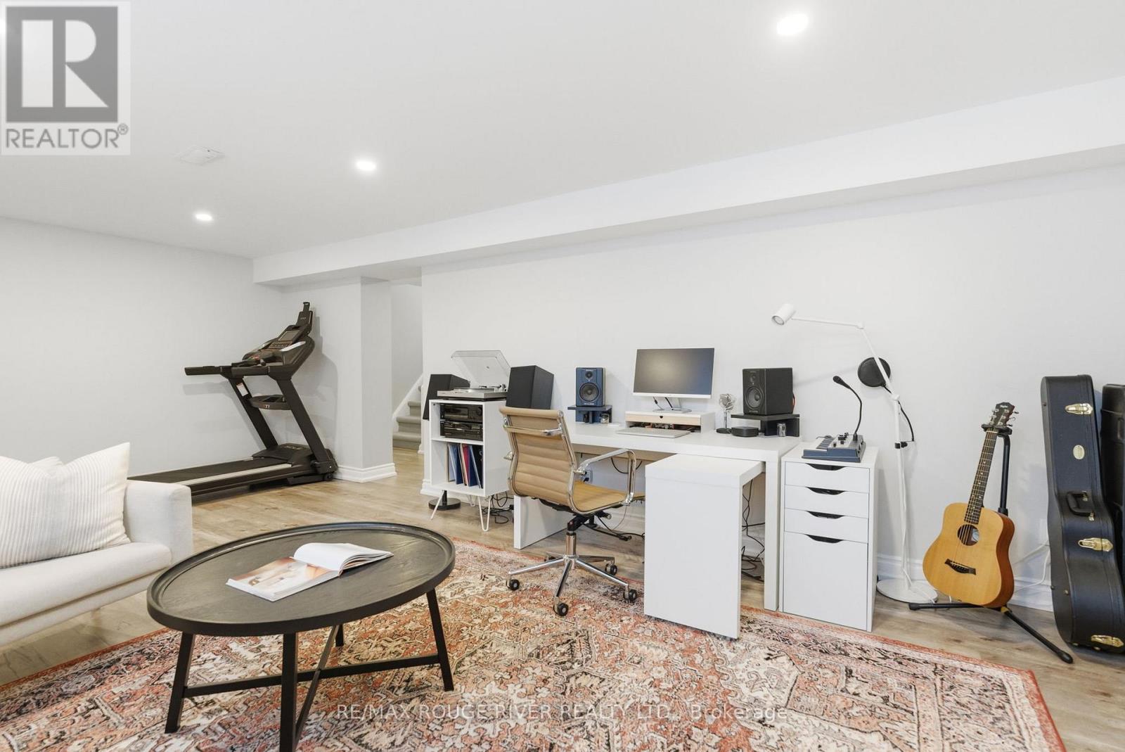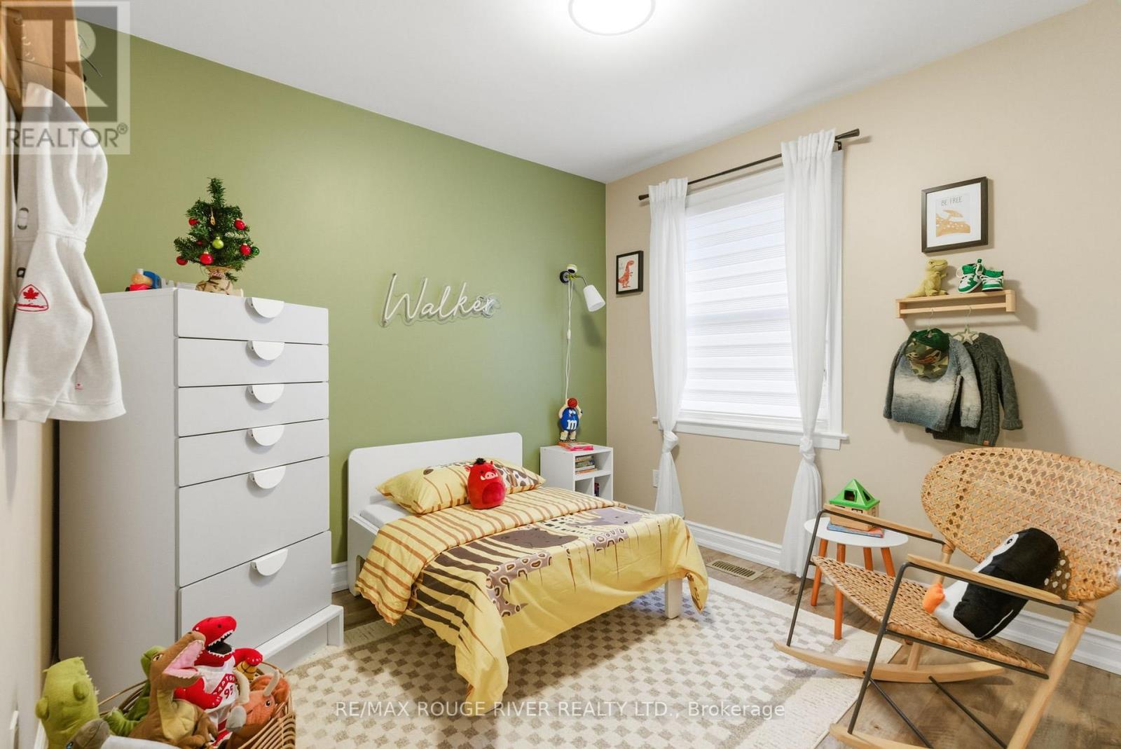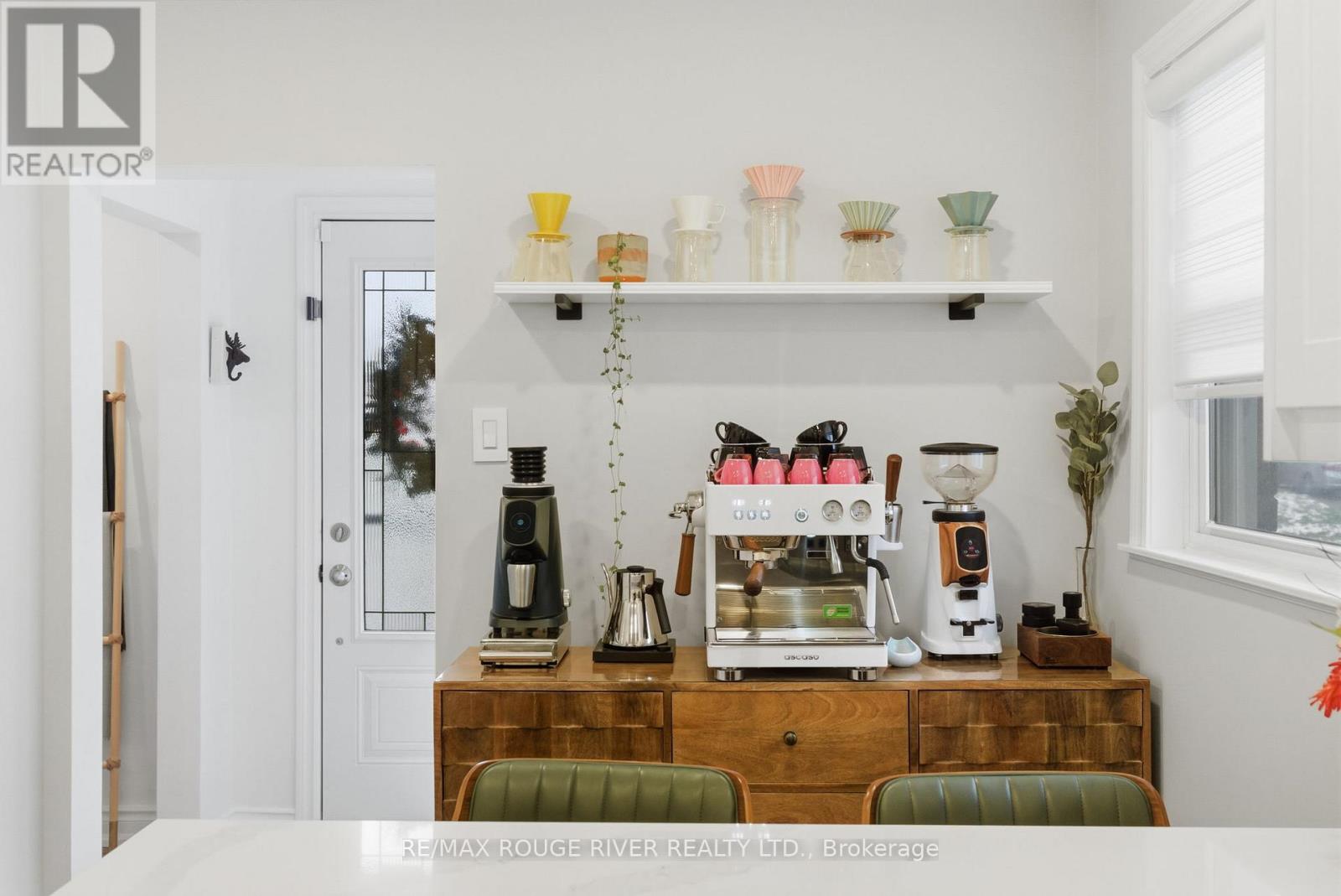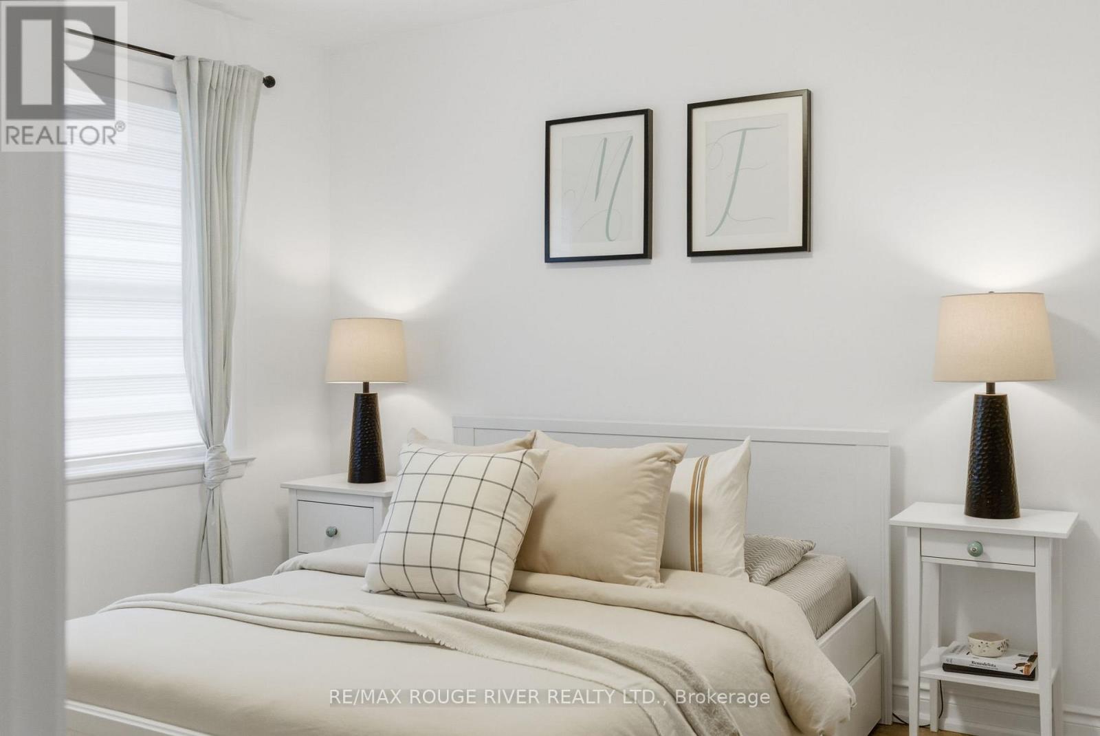 Stunning 3-bedroom bungalow in sought-after Blue Grass Meadows! Welcome to this beautifully updated bungalow perfectly situated on a large 50-foot lot in one of Whitby's most desirable neighbourhoods. Bathed in natural light from expansive windows, the inviting living room showcases elegant laminate flooring that flows seamlessly throughout the home. A stunning picture window provides a beautiful backdrop for everyday living and holiday celebrations alike. The open-concept dining area offers the ideal space for entertaining, enhanced by a striking statement light fixture with dimming capabilities to set the perfect mood. The gorgeous chef-inspired kitchen features custom quartz countertops, a full-height backsplash, sleek stainless steel appliances, and modern white cabinetry accented with black hardware. A convenient bar seating area and cozy nook for a coffee or wine station complete this elegant space. All three bedrooms are located on the main floor, each featuring warm laminate flooring and abundant natural light. The finished basement offers incredible versatility with a spacious family room, pot lights, a large front room ideal as an office or gym, a 3-piece bath, and a separate entrance-perfect for extended family or guests. Step outside to your private backyard oasis. Professionally landscaped, this outdoor haven features lush sod, dual gated fencing, an expansive patio ideal for entertaining, a cozy fire pit seating area, and a practical storage shed. Mature tree removal has opened the space beautifully, allowing sunlight to flood your yard all day long. With a single-car garage, spacious driveway, and an unbeatable location close to parks, schools, and amenities, this exceptional home blends comfort, style, and convenience in one perfect package. (id:51158)