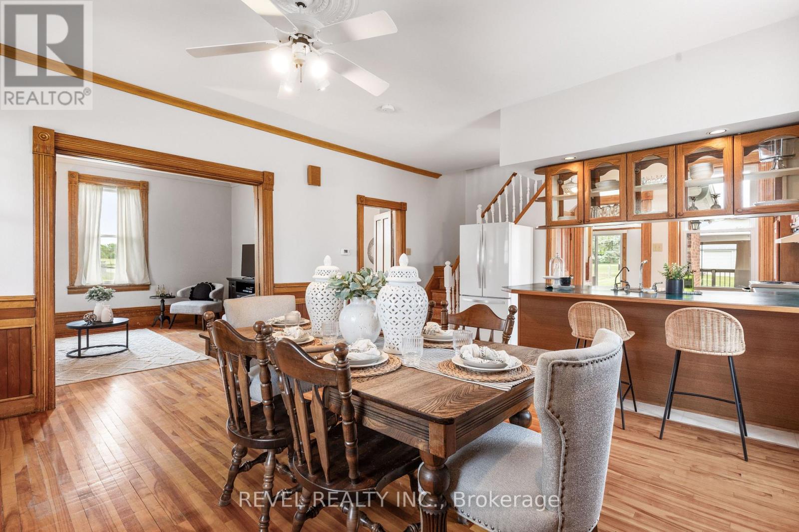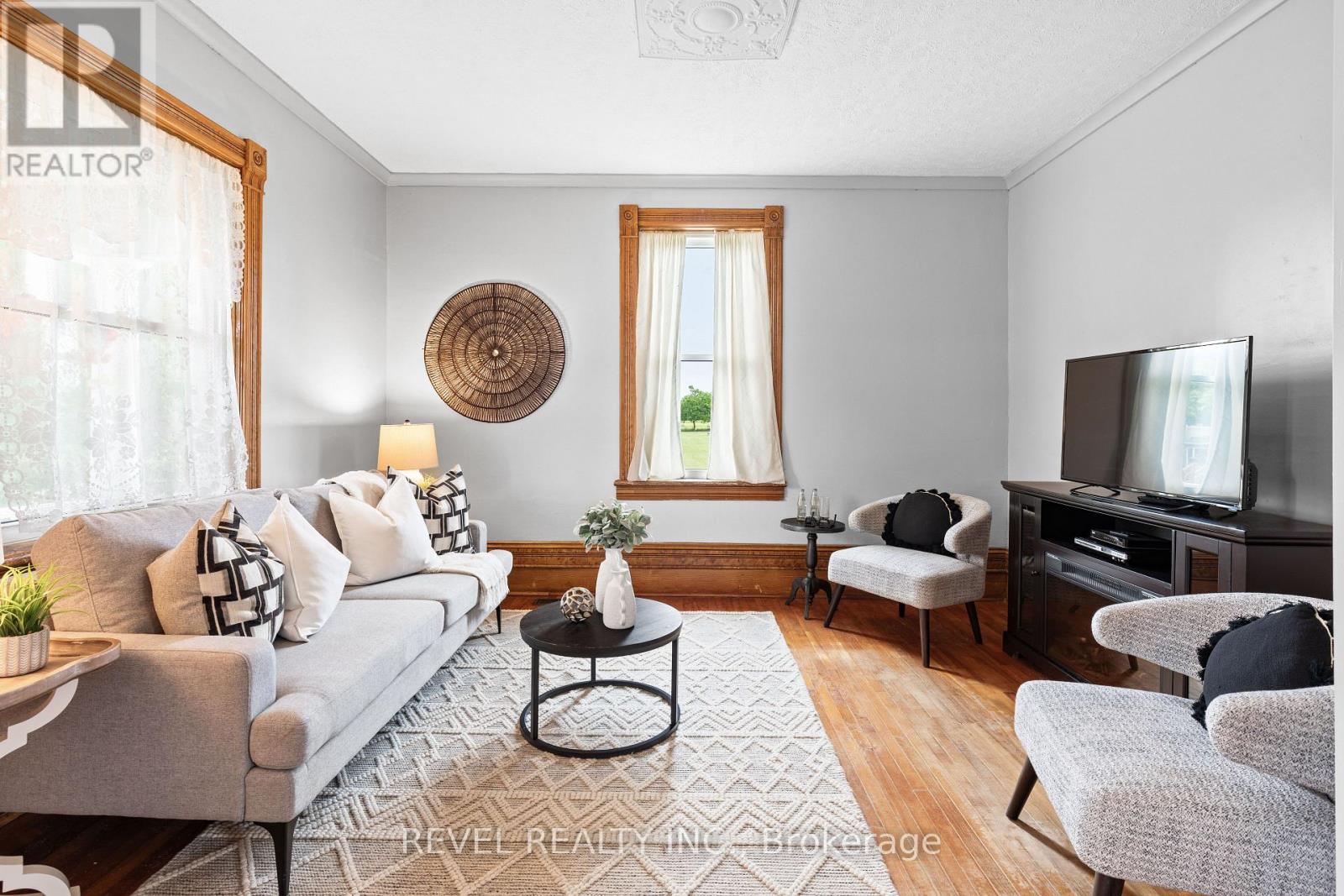 Step into timeless charm with this beautifully Maintained 2-story farmhouse, located in the peaceful village of Valentia. Built in 1907, this 4-bedroom, 1.5-bath home is rich with original character and thoughtful updates perfect for those who appreciate craftsmanship and small-town living. Inside, you'll find beautiful wood trim throughout, including original pocket doors that add warmth and authenticity to the home's inviting spaces. Large Mud room, Main floor Laundry, and 4th bedroom located on the main level and can easily serve as a home office, guest room or den, offering flexibility to suit your lifestyle. Large principal rooms, high ceilings, and natural light give the home an open and welcoming feel. The property also features a 2 1/2 car heated workshop with a finished loft ideal for a studio, home office, or additional living space. A durable metal roof ensures long-term peace of mind. Located right beside the park and ball field and just steps from the Valentia General Store, this home offers the perfect balance of rural tranquility and everyday convenience. (id:51158)